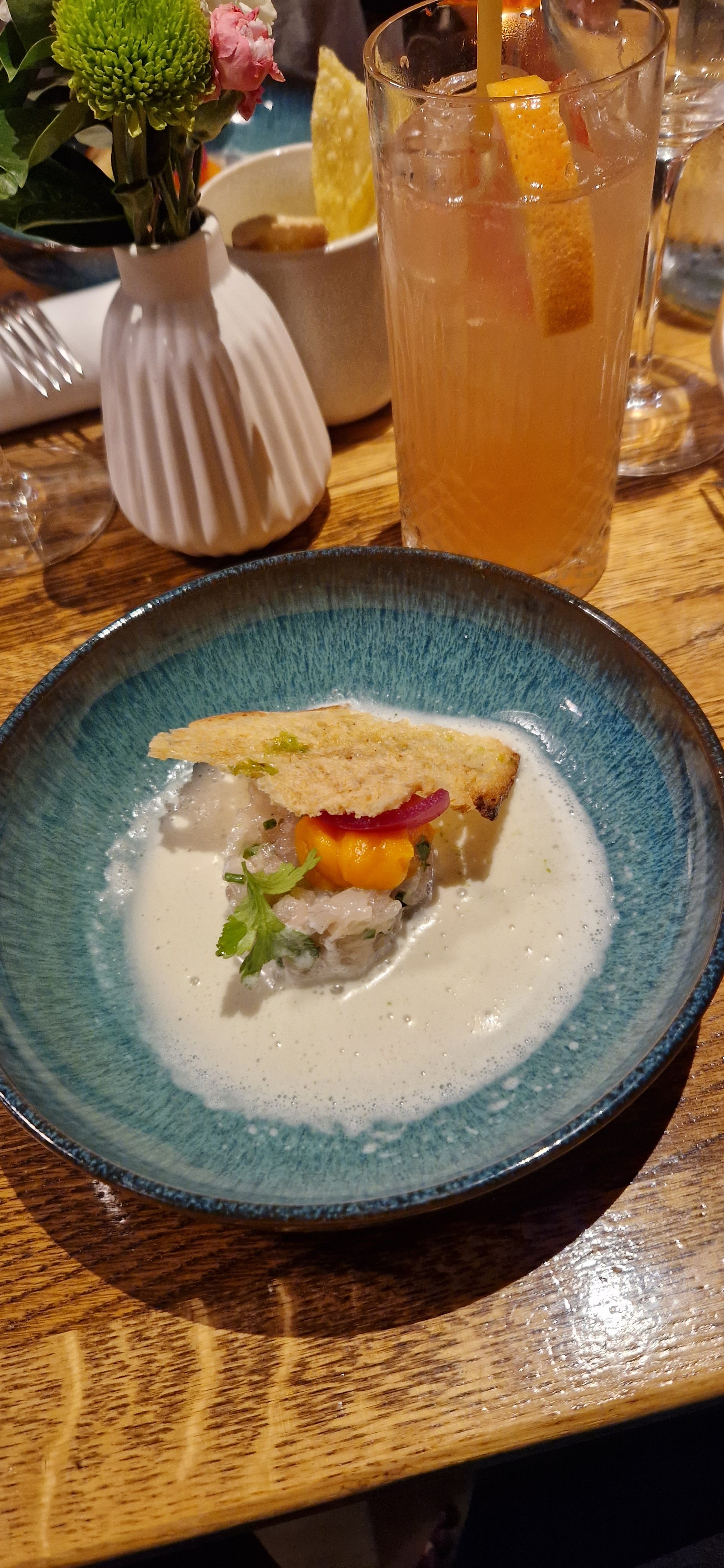Superbe, Carte courte et de saison, les produits sont hyper bien travaillés et très bon assaisonnement. Ras, j’ai pris un mocktail trop délicieux. Hummm je recommande +++ Prix correct