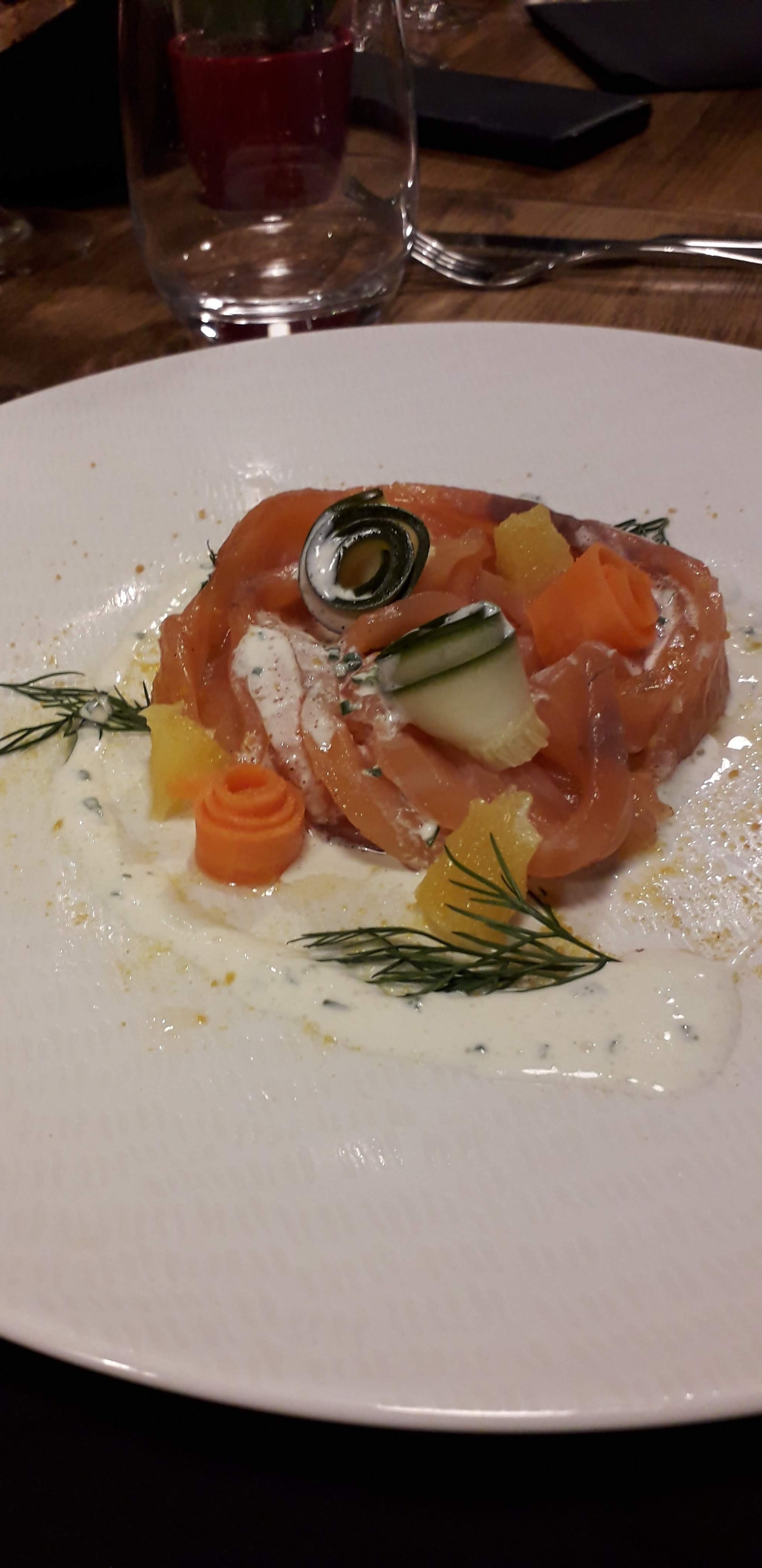 Jolie salle. Service sympathique (mais lent). Dans l'assiette, c'est plus compliqué. Le tartare de thon (que j'ai eu du mal à digérer par ailleurs) manquait d'acidité, de peps. La raviole ouverte lagoustines et écrevisses et fricassée de poisson , fade, était en fait dominée par le saumon, avec une sauce sans finesse. Ma compagne avait pris un risotto à la courge, bien meilleur. Globalement, je suis sorti très déçu, au regard du rapport qualité/prix.