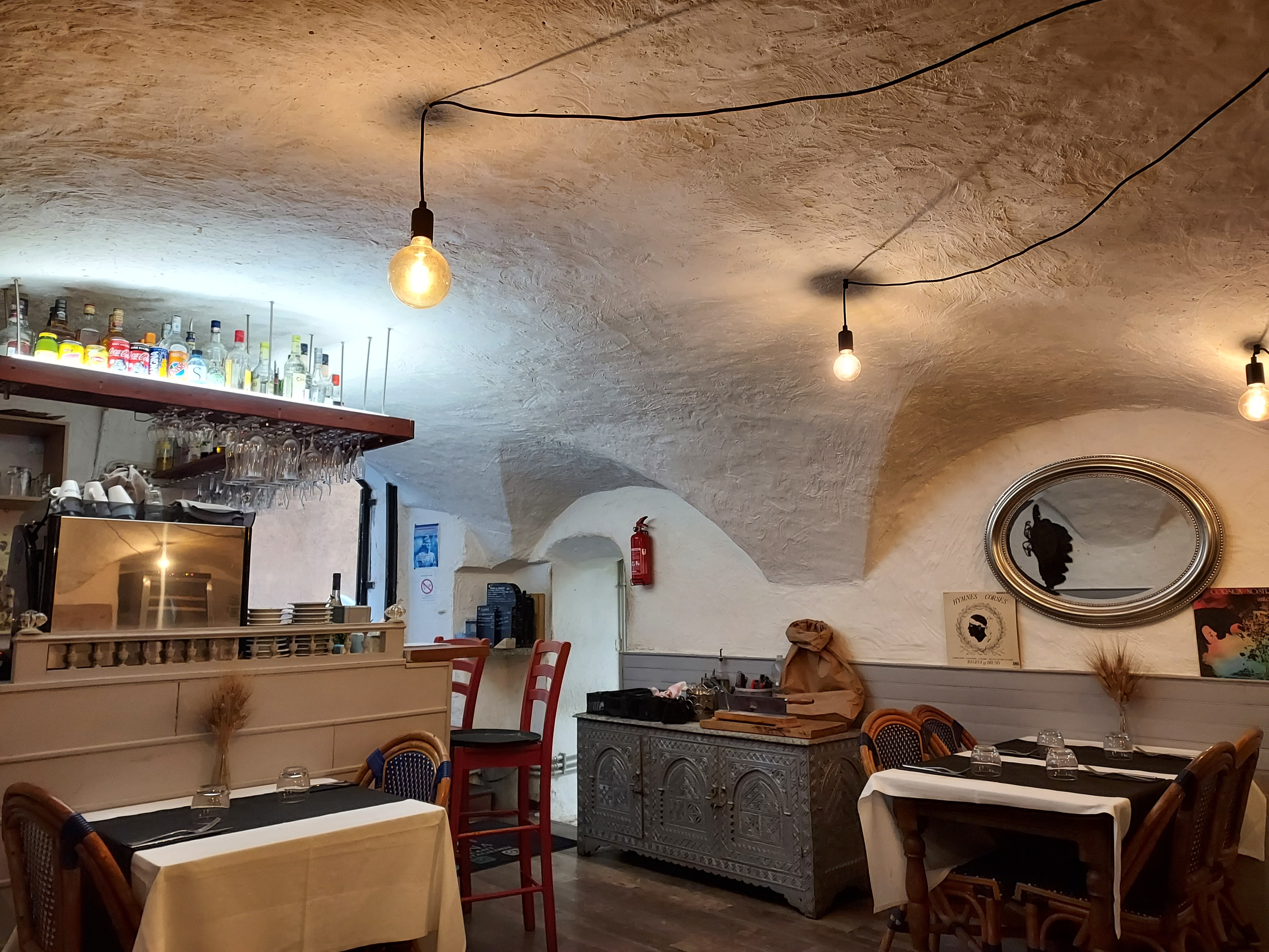 A proximité du marché et du quai des martyrs de la ville de Bastia. Petit restaurant dans une sorte de cave avec des voûtes blanches. Composés de deux salles et une petite terrasse dans une ruelle. Nourriture a dominance italienne mais pas que, très correcte avec des sauces à base d' alcool pour certains condiments. Suggestions diverses et carte. Portion correcte . Tarif adapté.