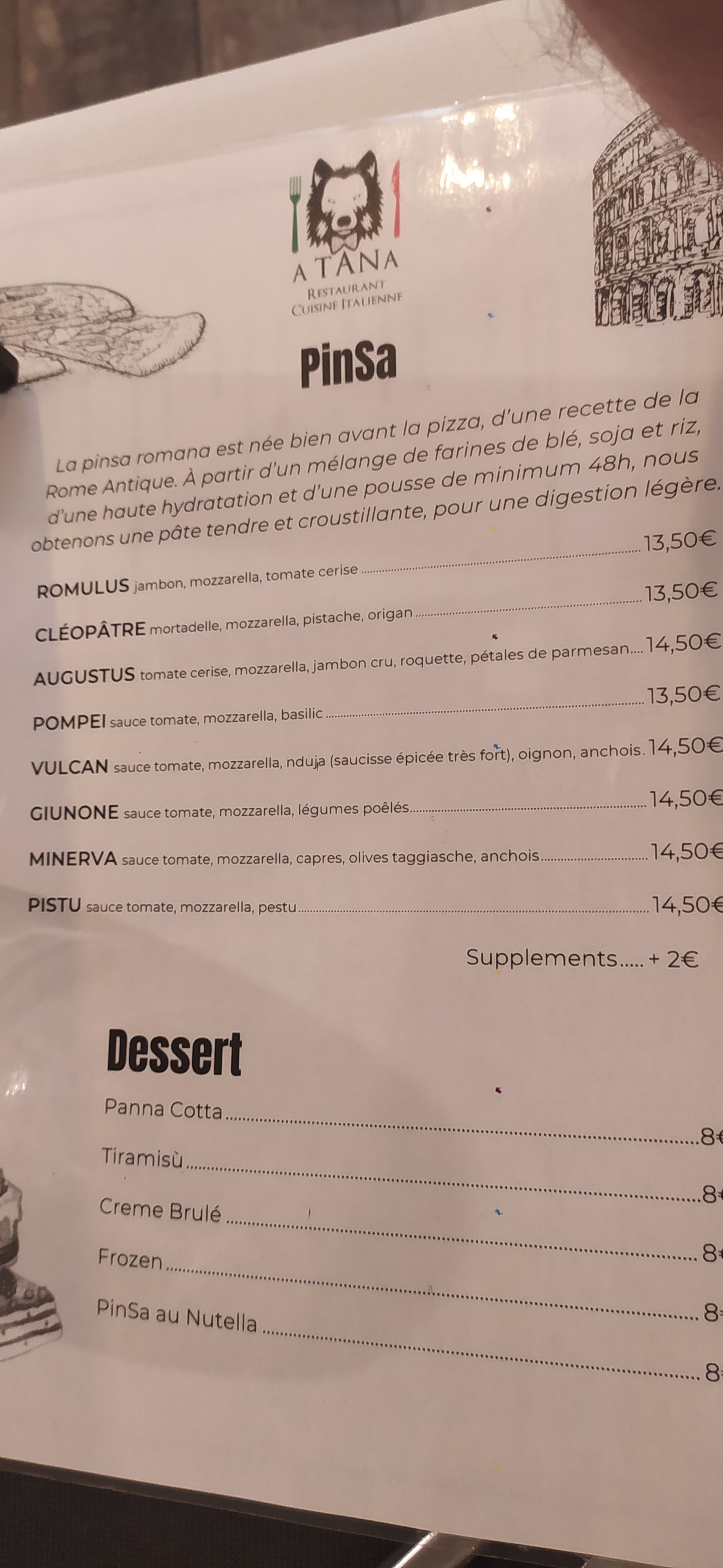 Amatrice de pizza, j'ai découvert une nouveauté. La pinsa, spécialité Romaine avec une pâte succulente, hors du commun. L'accueil est très chaleureux également. Lieu typique avec l'accent Italien ..que du bonheur... QUE