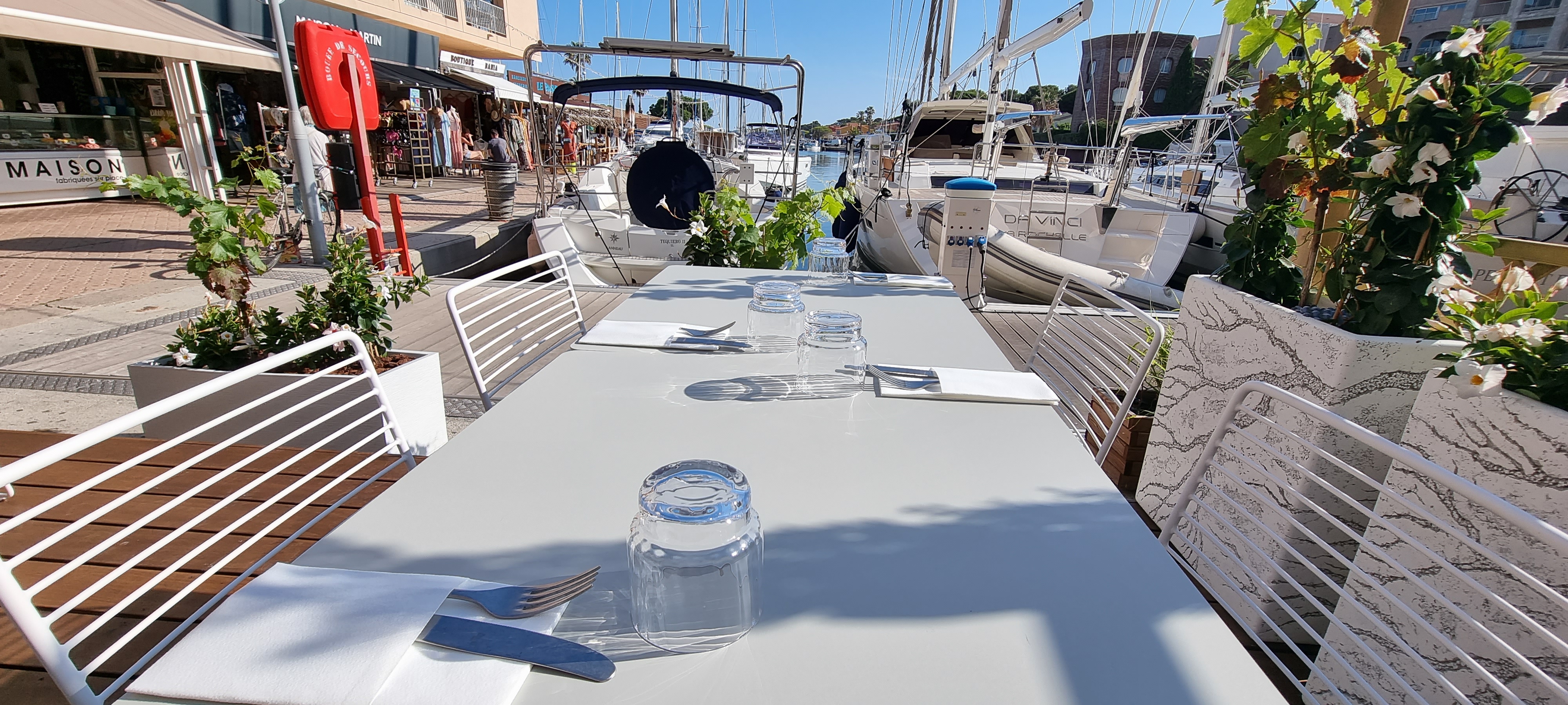 Accueil chaleureux dans un décor très floral !Service agréable et soigné ! Cuisine fraîche qui régale nos papilles. A côté des voiliers c est merveilleux...