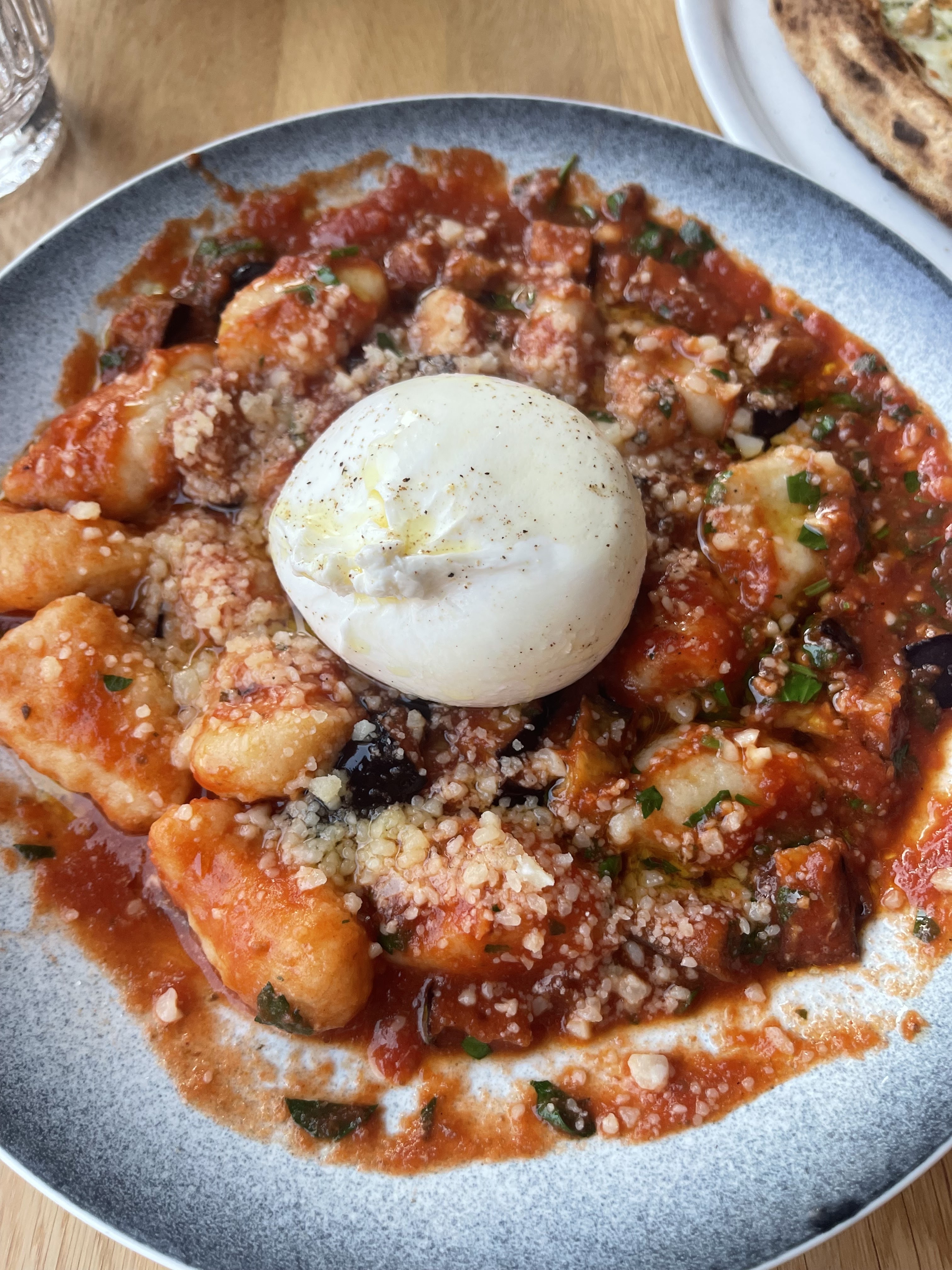Malheureusement j'avais choisi deux antipasti vraiment exécrables : vitello tonnato, tranches de veau nerveux avec une sauce horrible faite avec de l’eau (?!!) plus un peu de thon et du parmesan. Gros arancini remplis de riz gluant couleur marron et morceaux noirs, apparemment de l’aubergine ! Pire repas de toute ma vie dans un restaurant triste avec tables et coussins sales, chaises en terrasse inconfortables. En positif ? Personnel très agréable et gnocchi passables commandés par d'autres convives. Salle intérieure bien décorée et propre sauf coussins et divans très tachés également. Conclusion : style catastrophe en cuisine.
