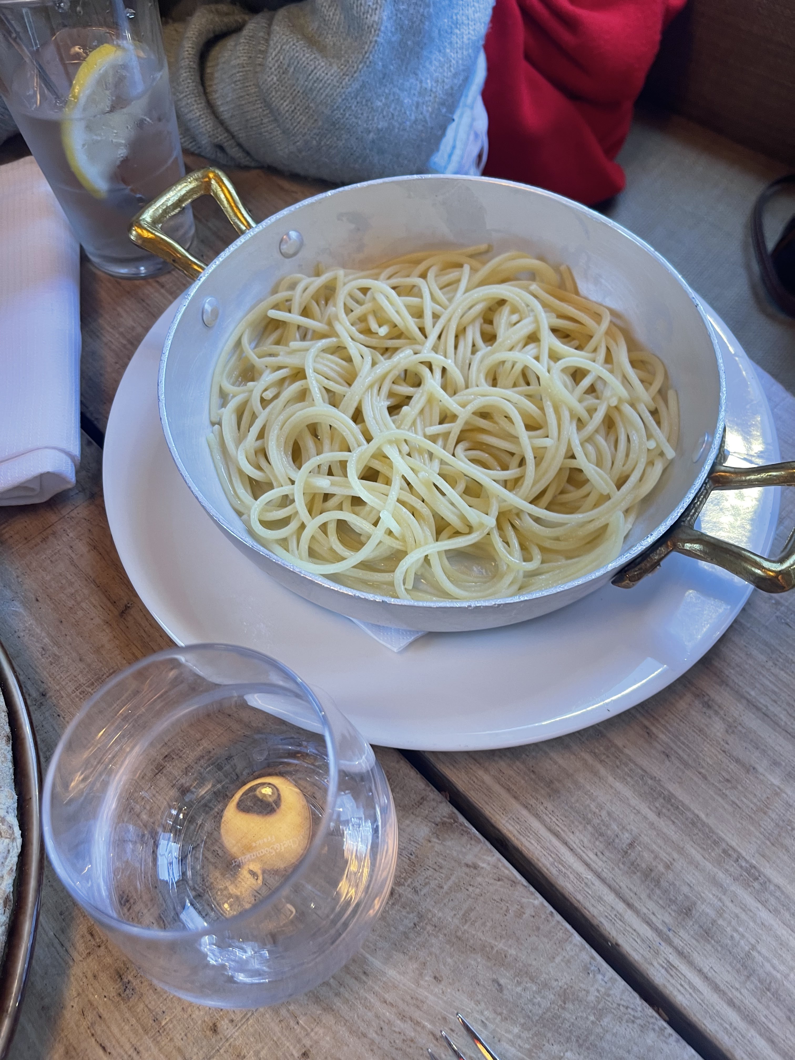 Déjà le chemin d’accès depuis l’escalier est une catastrophe. Du verglas dangereux ... un accident est vite arrivé. Le service agréable, par contre, il faut renvoyer les cuisiniers en Italie pour apprendre la cuisine italienne. Le risotto trop cuit... les pici cacio e pepe plein de crème, aucun goût de fromage et le poivre il fallait le mettre soi-même, le tout servi d’une façon ridicule dans une meule avec l’effet que les pâtes étaient à peine tiède. De plus des prix exorbitants. A éviter....