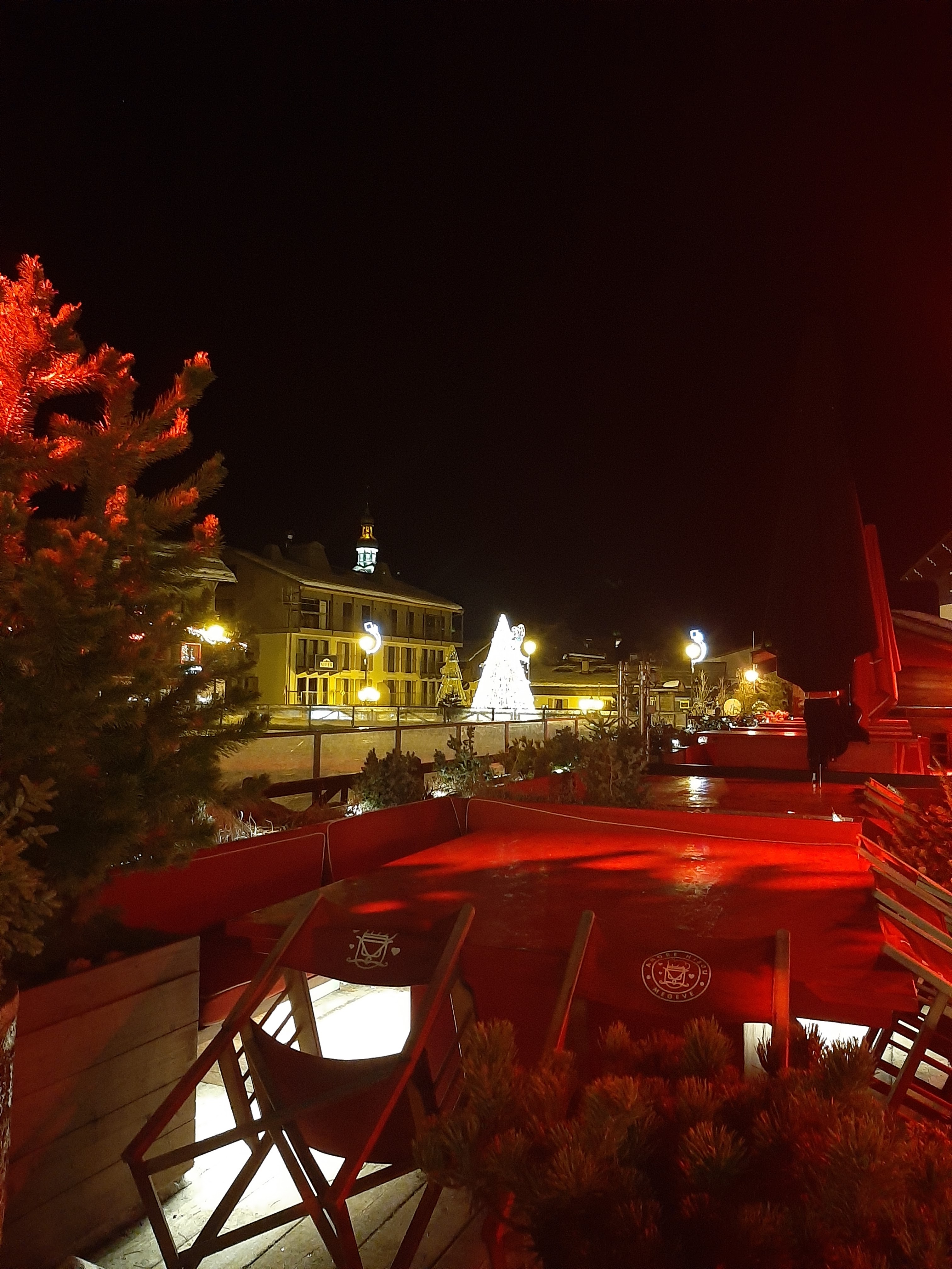 De passage à Megeve, je cherche à clôturer ma balade avec un café. Je tombe sur un endroit en extérieur avec un DJ. Je suis bien accueillie et bien servie, un vrai moment de pause dans une bonne ambiance et avec le must : un chouette coucher de soleil!