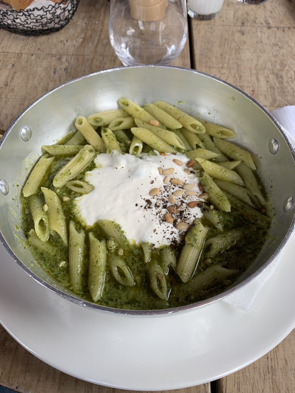 Un déjeuner simple et avec une bonne assiette de pâtes et un bon dessert, cependant attention au tarif des desserts.