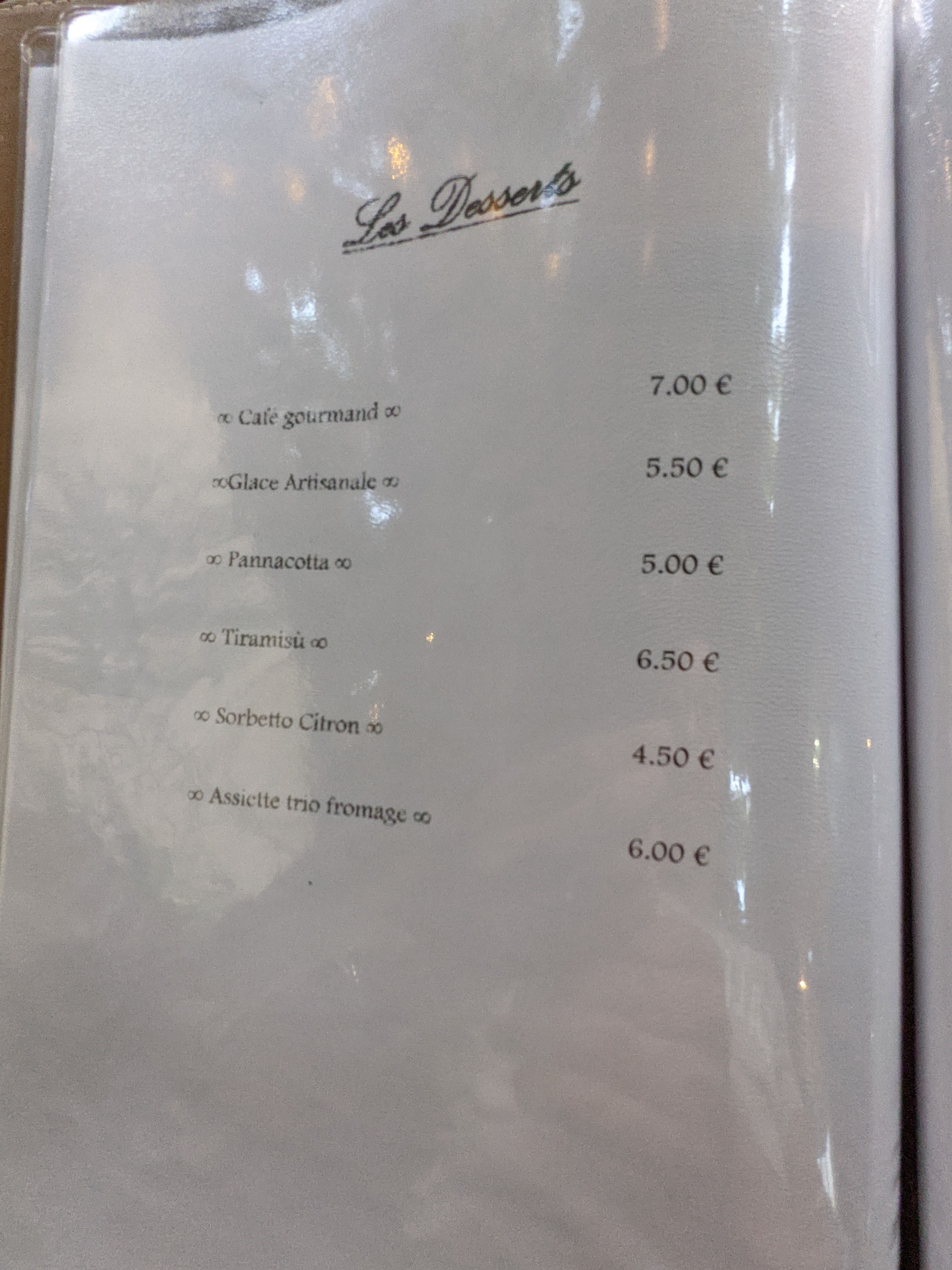 The food is simple but good. Too expensive for what it is ... Thus pour value. P.S : the chef will dump the pasta in your hors d'oeuvre plate ... You see at 18 euros for the buffet, they wont give you a clean plate. Cuisine simple mais bonne, chère par contre : rapport qualité prix médiocre. L'accueil pourrait être amélioré. P.S : normalement on change d'assiette entre les services du buffet... Et on ne sert surtout pas les pâtes dans la même assiette que les entrées ...