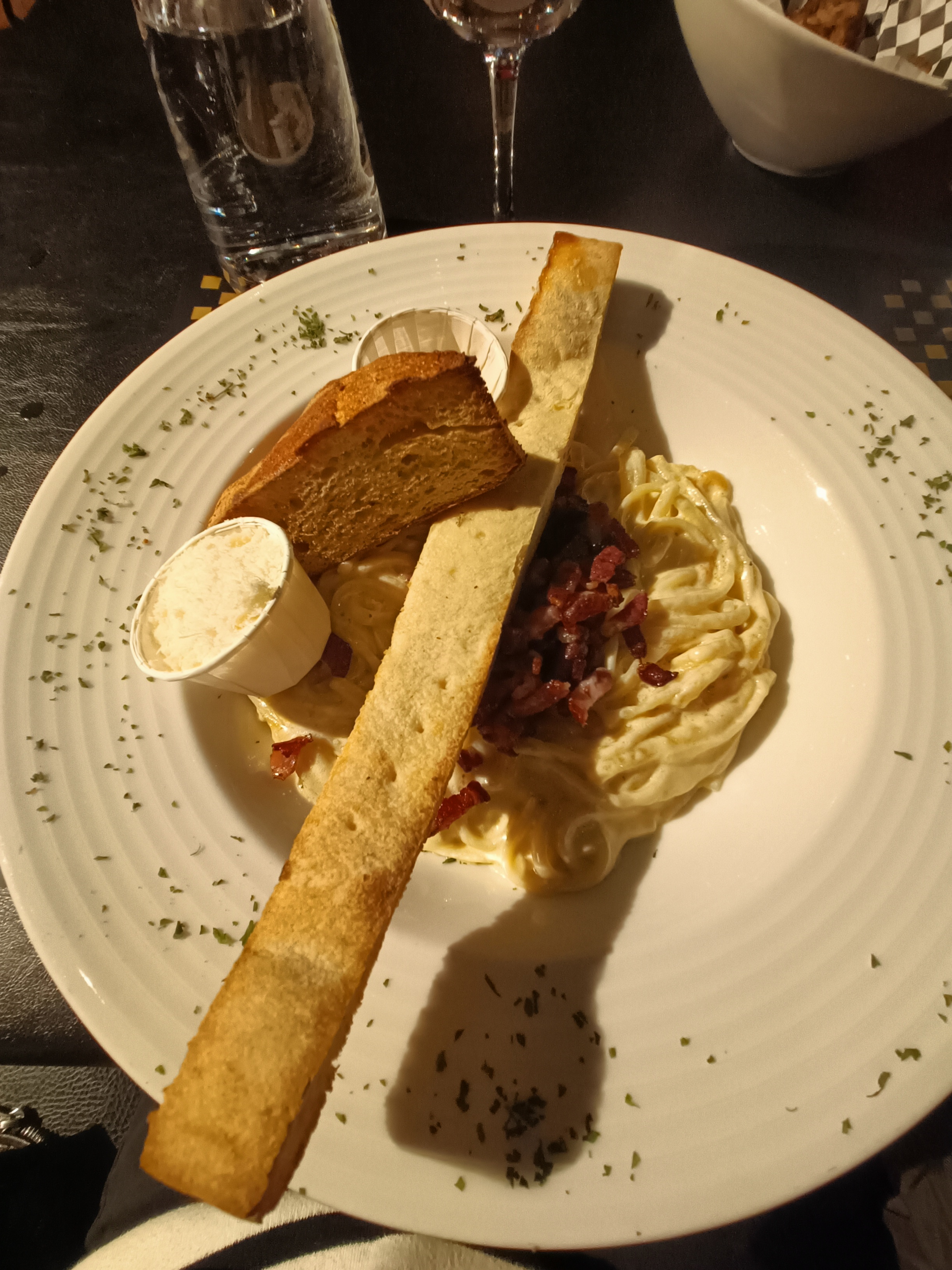 Bon, que dire , après notre arrivée nous avons attendu au moins 45 mn avant d'être servis, pourtant il n'y avait pas foule. Et encore, j'ai dû rappeler à la serveuse que nous attendions... Gnocchis à la carbonara : lardons bien trop cuits et deux énormes morceaux de pain, que font-ils là ? J'ai cru étouffer... J'ai oublié : un Schweppes agrumes en apéro mais la capsule n'a pas été décapsulée... Pour le dessert j'ai pris les devants , trop peur d'attendre 30 mn de plus, il va être 15 heures, on est arrivés a 12 h 15 quand même... Bon, je ne comprends pas les 4.4 sur 5 sur Google, on marche sur la tête.