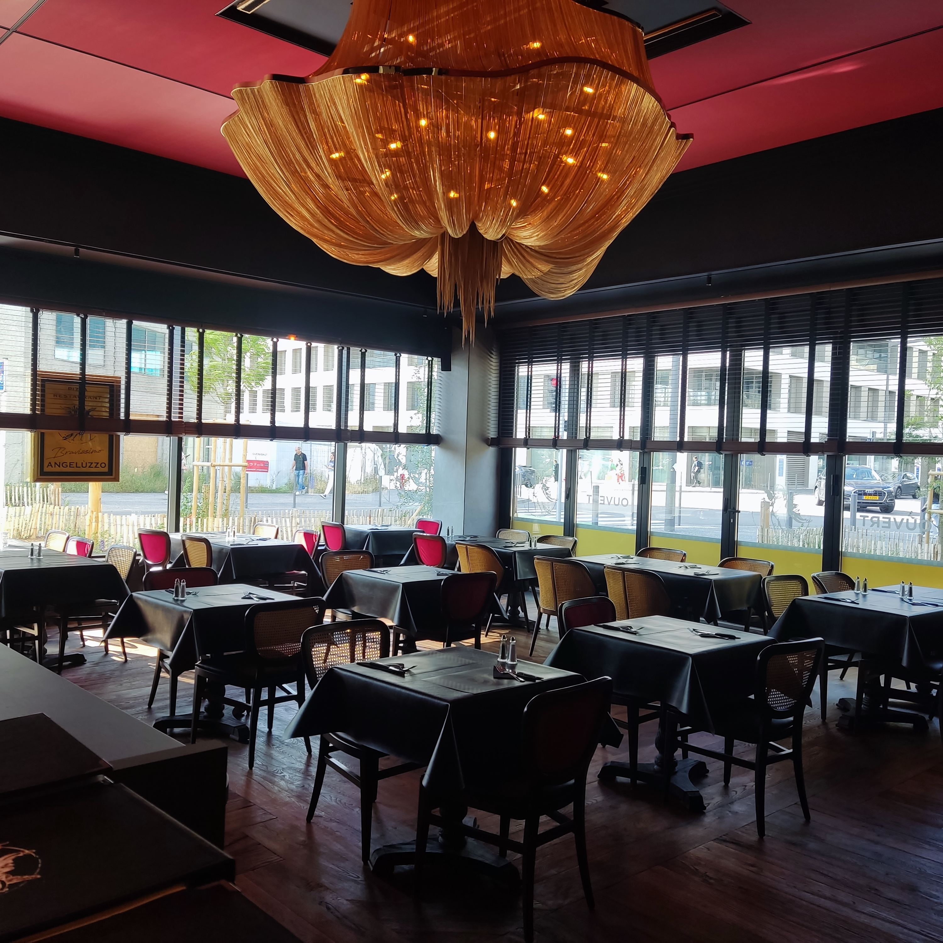 Habituée des Angeluzzo j'ai pu profiter d'un bon repas dans celui-ci et tout était parfait ! Le service était rapide, le personnel extrêmement aimable (nous n'avons pas eu le nom du monsieur à lunettes mais merci à lui pour sa bonne humeur et son professionnalisme), le décor est très beau et ça se voit qu'il est neuf ! De plus il est vraiment collé au cinéma, ce qui est extrêmement pratique. A noter qu'il est possible de demander au service d'accélérer votre commande quand vous avez un film juste après, nos desserts sont arrivés extrêmement vite, encore merci 😊