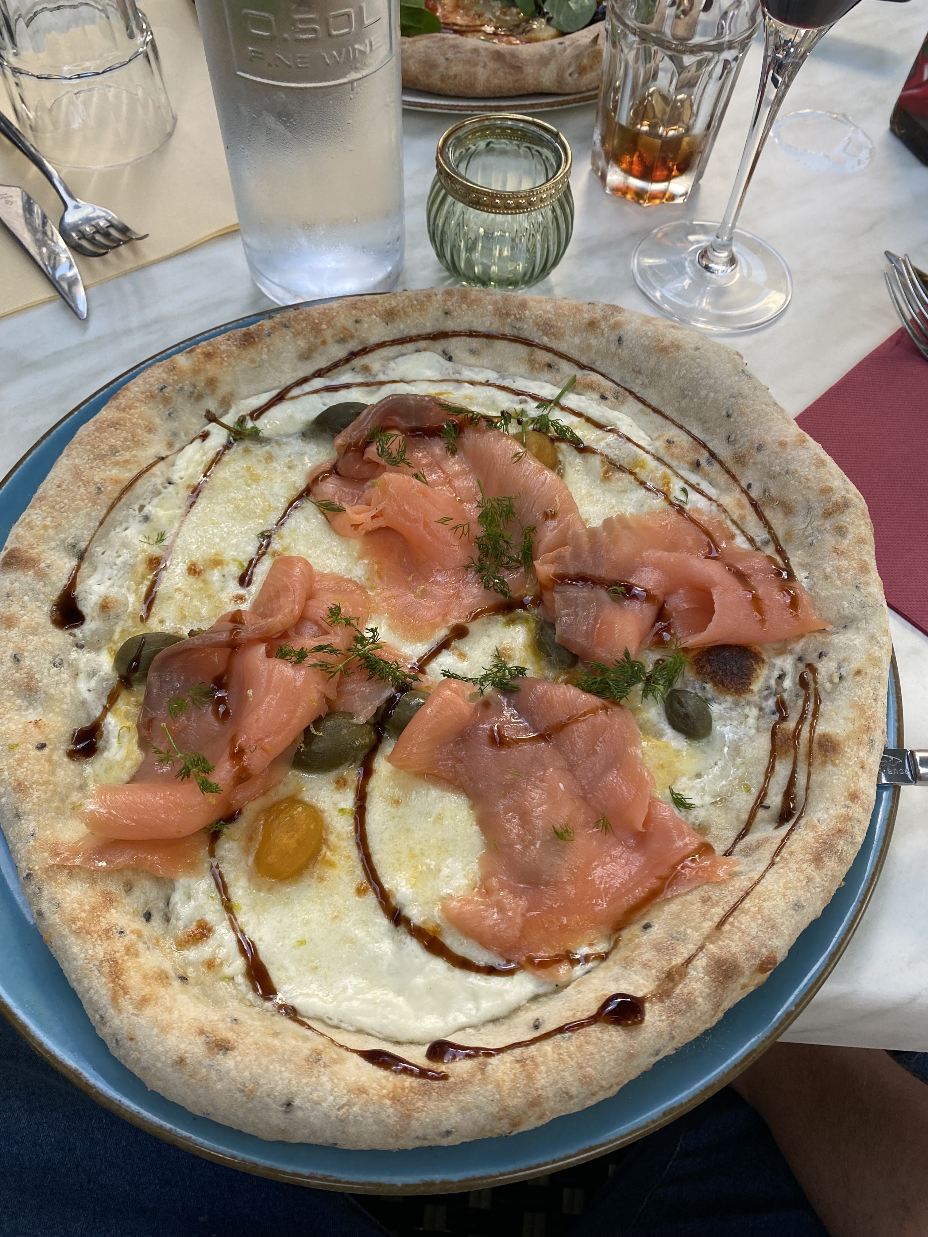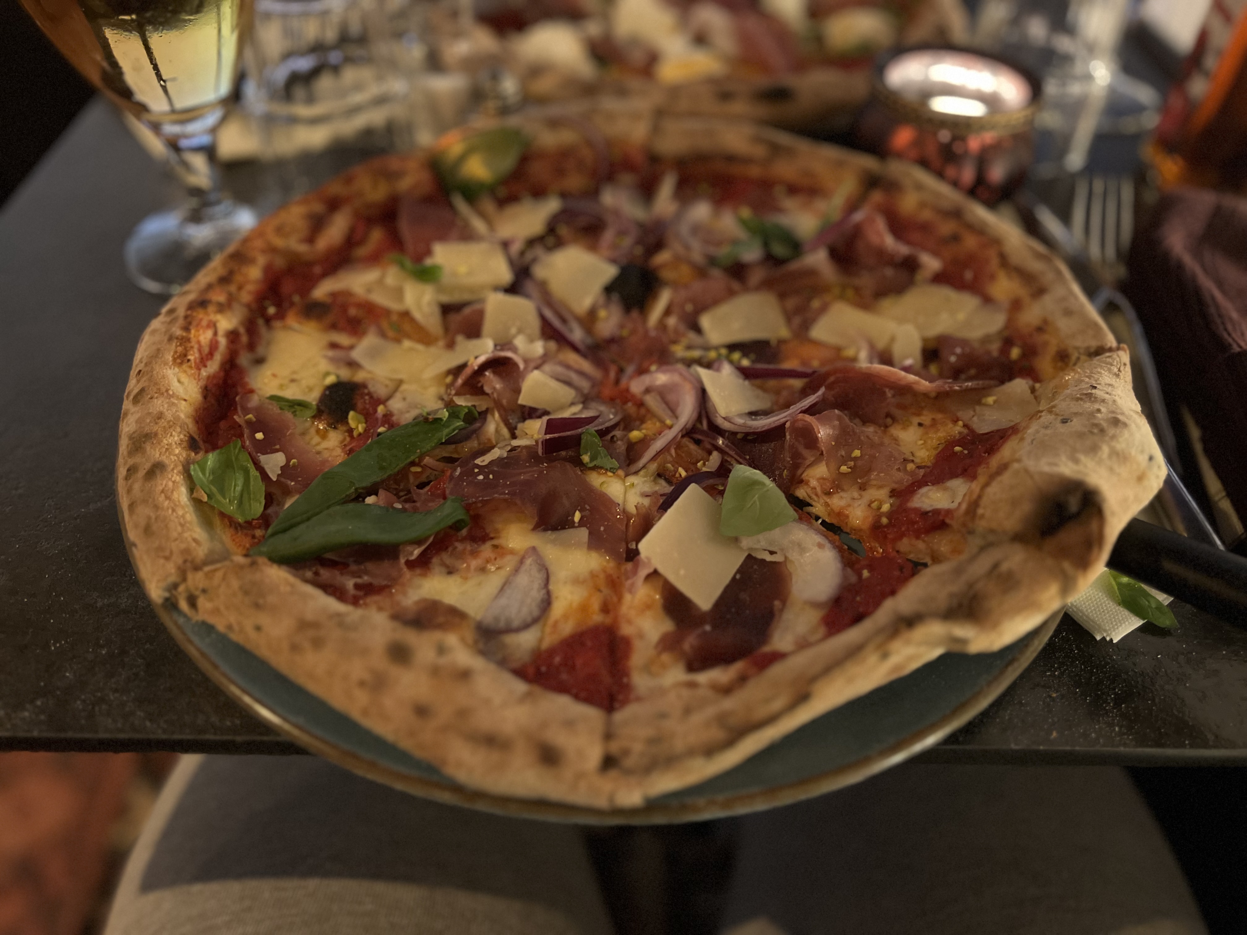 1ère visite et 1ère pizza rosana ! Rouge Montepulciano un souvenir de mes vacances en Abruzzes ! Un bon moment dans un beau lieu et un service de qualité... Nous reviendrons...