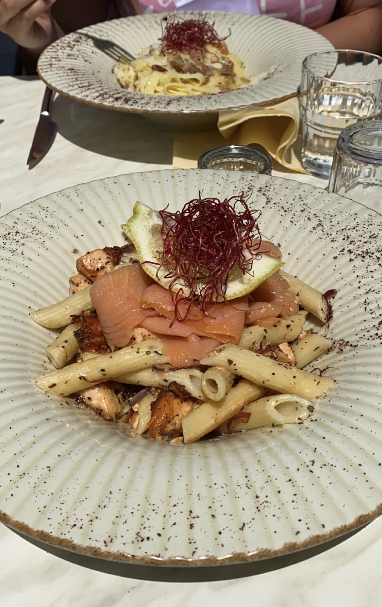 Excellent ! Plusieurs fois qu’on vient manger et on est jamais déçu ! Les pâtes délicieuses. Les serveurs sont très sympathiques. La déco intérieure et la terrasse extérieure sont magnifiques 😍