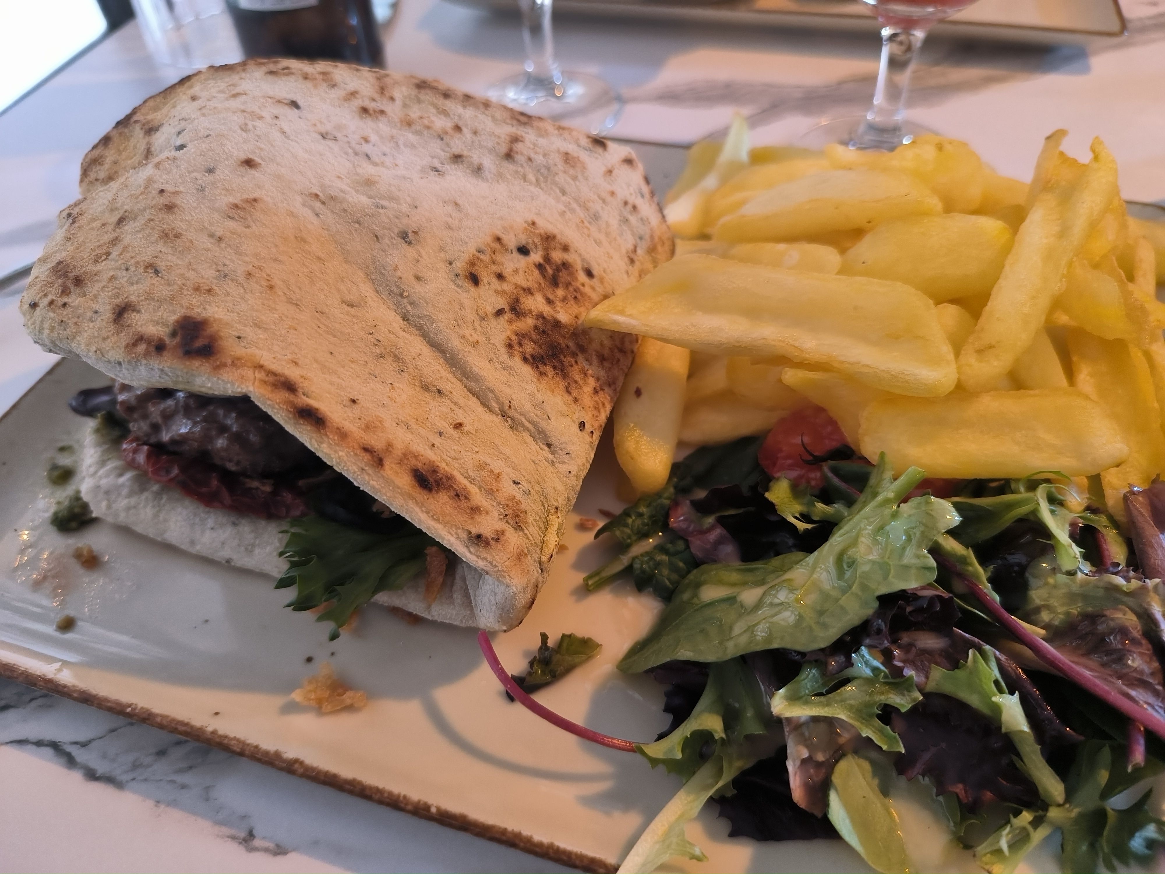 Excellent moment passé en famille . Arrivé à 5 avec presque 30 min d’avance . Le gérant a réussi à nous trouver une table rapidement . Aussi , nous avons appréciés le cadre qui est ravissant . Le menu est très réfléchi , et je vous conseille vivement le Focaccia Burger qui a tout pour devenir leur plat signature . Le menu enfant est super . Merci pour ce bon moment .