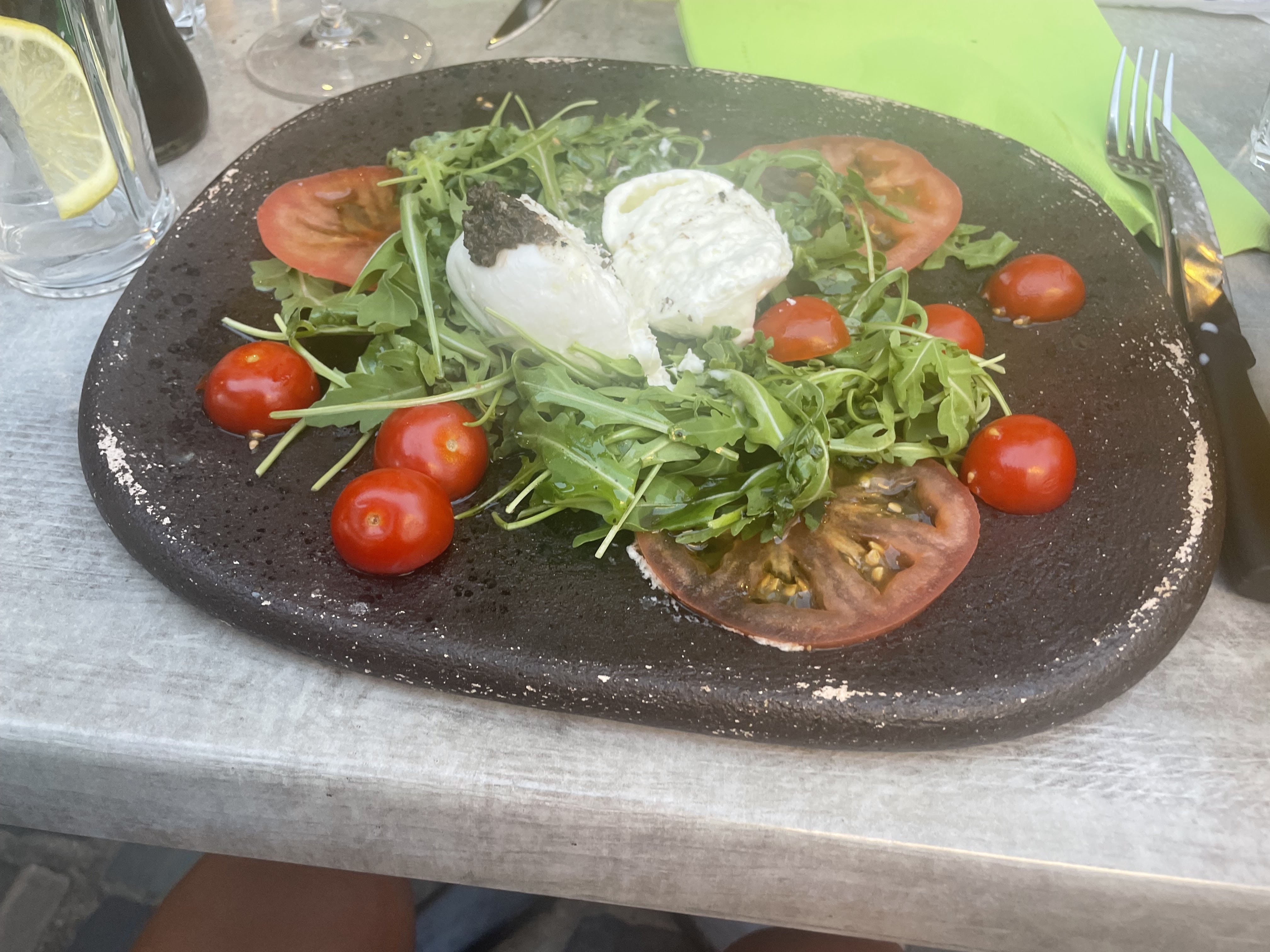 Cannelloni avec stracciatela cde citrons confit gambas et parmesan super bon..serveur gentil.. mais le cadre tres moyen.. rue piétonne moche, les futurs clients et les serveurs vous surveillent en face.. prêts à vous faire déguerpir au plus vite pour assurer un second service. .. On nous a apporté les plats à peine l'apéritif servi donc ne pas en prendre ..et après le plat il a fallu réclamer pour la carte desserts. Puis on nous apporte les desserts et l'addition d'office .. sans même nous laisser le choix d'un café ensuite..au final s'ils préfèrent vendre 3 pizzas plutôt qu'un repas, qu'ils ouvrent une boîte à pizza!! Pas envie de revenir..de l'abattage pour touristes..la cantine