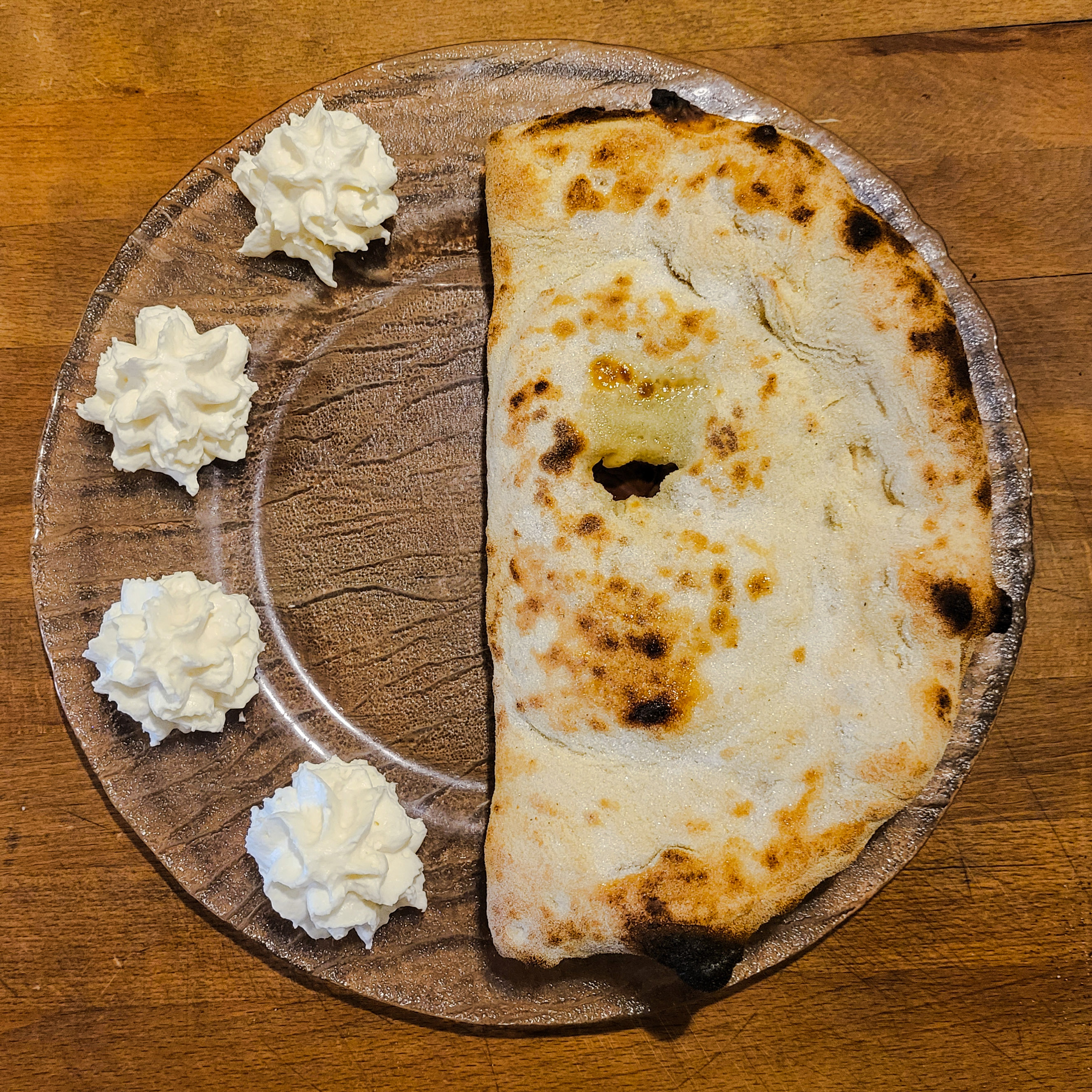 Un soir d'orage, terrasse bondée, mais pizzas excellentes et bonne humeur des gérants qui sont au four et au moulin en même temps. J'ai goûté la Pocahontas ... dessert tiramisu à l'abricot, un régal