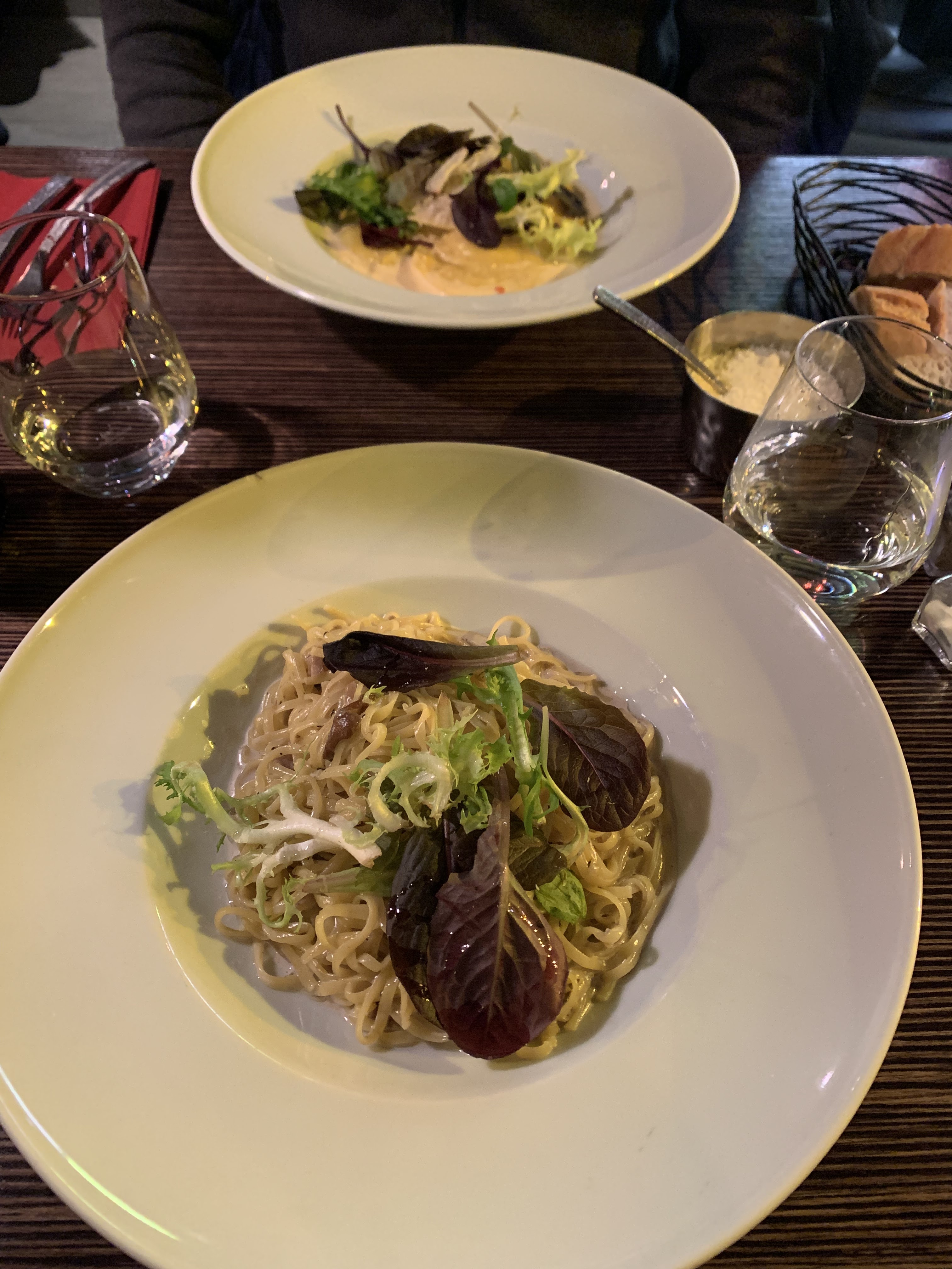 Un bon petit resto italien avec des pâtes délicieuses, et une assiette de fromage à goûter! Réservation non prise en compte, ce qui nous a valu d'attendre 20min qu'une table se libère, mais un geste apprécié avec le vin qui a été offert. Personnel très sympa