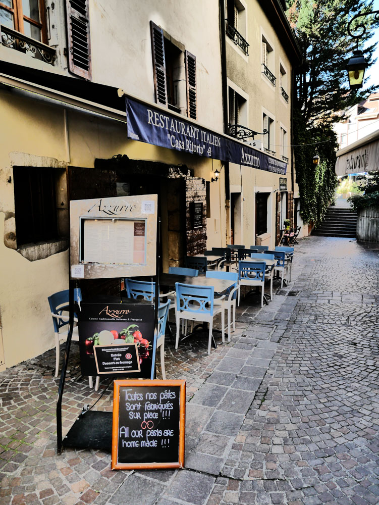 Une petite rue parallèle au flot de touristes, avec un courant d’air rafraîchissant en été (ou glacial quand c’est l’automne en été): le décor est planté! Ici pas de pizzas, on vient pour les pâtes faites maison! Et c’est très bon! Alors certes c’est peut être un peu cher par rapport aux autres restaurants à proximité mais j’ai trouvé que la qualité et la quantité (sauf pour les entrées) sont là (je ne comprends pas les commentaires « cher et peu en quantité et qualité). A noter : 3€ le Ricard je n’ai pas trouvé moins cher durant mon séjour sur Annecy ;)
