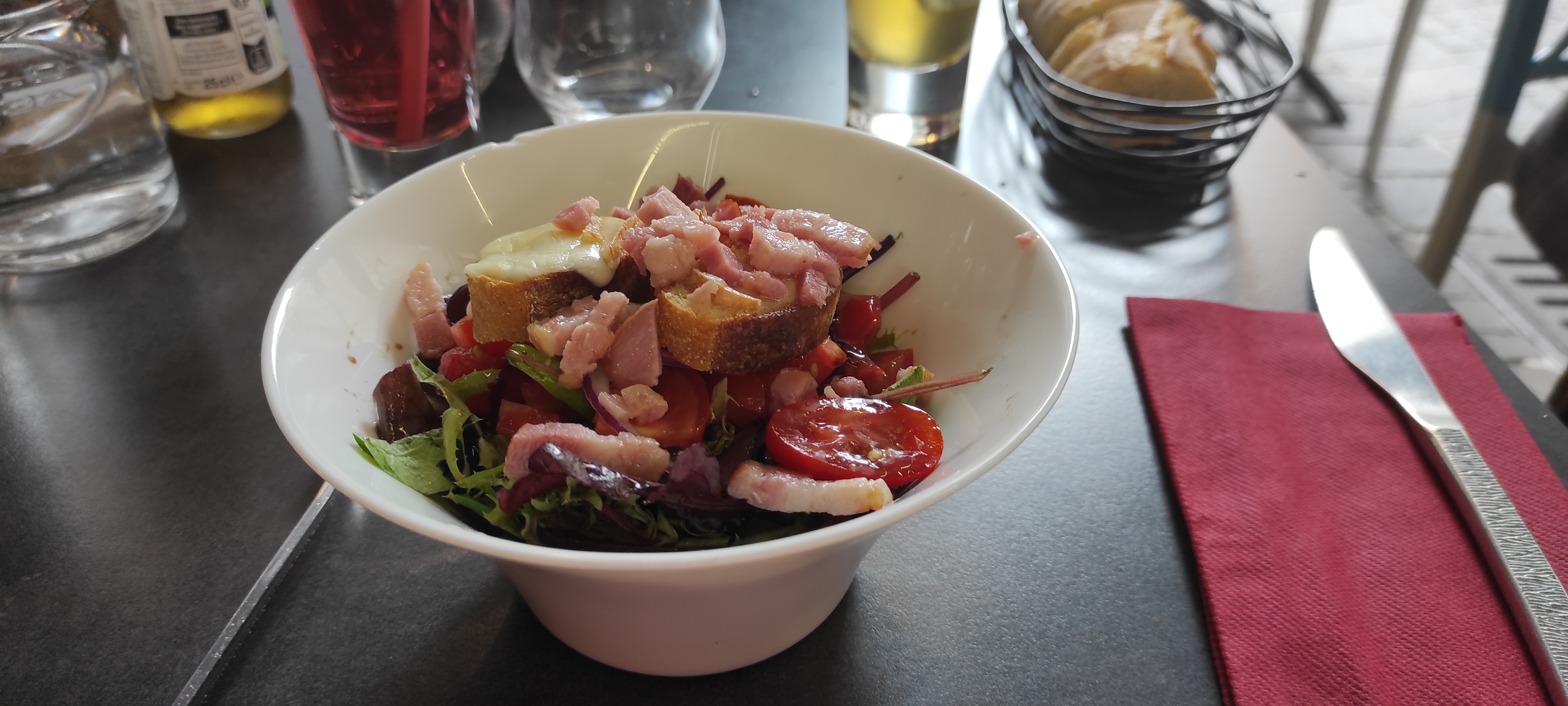 Placé dans une petite ruelle; proche de tous commerces et notamment du marché ; l'ambiance est chaleureuse avec l'accueil du patron très agréable. Quelques tables en terrasse. 2 chefs en cuisine; une jeune serveuse pleine d'entrain où les assiettes sont copieuses et splendides! Service du midi complet. Tarifs corrects pour la qualité. Je recommande vivement.