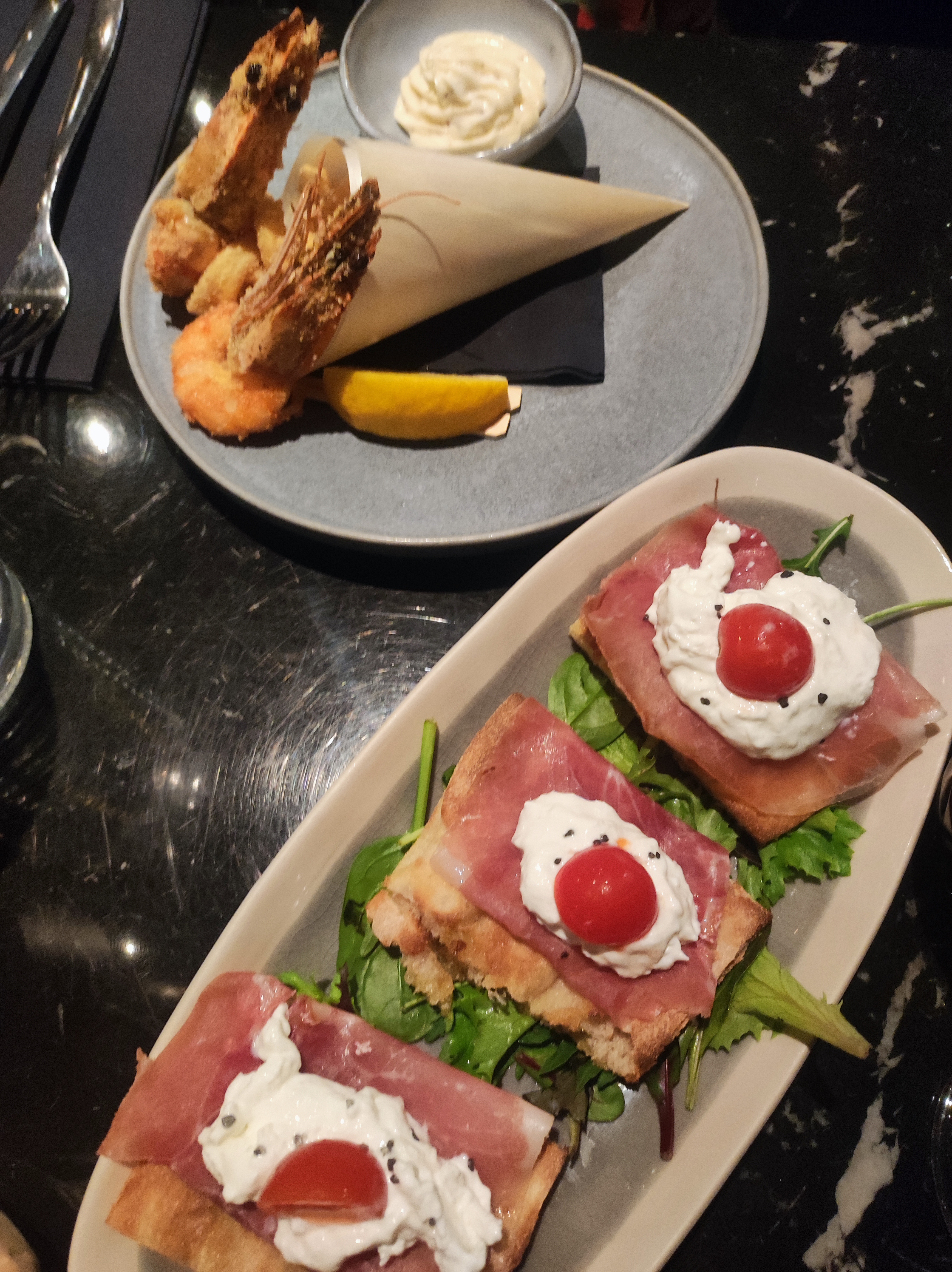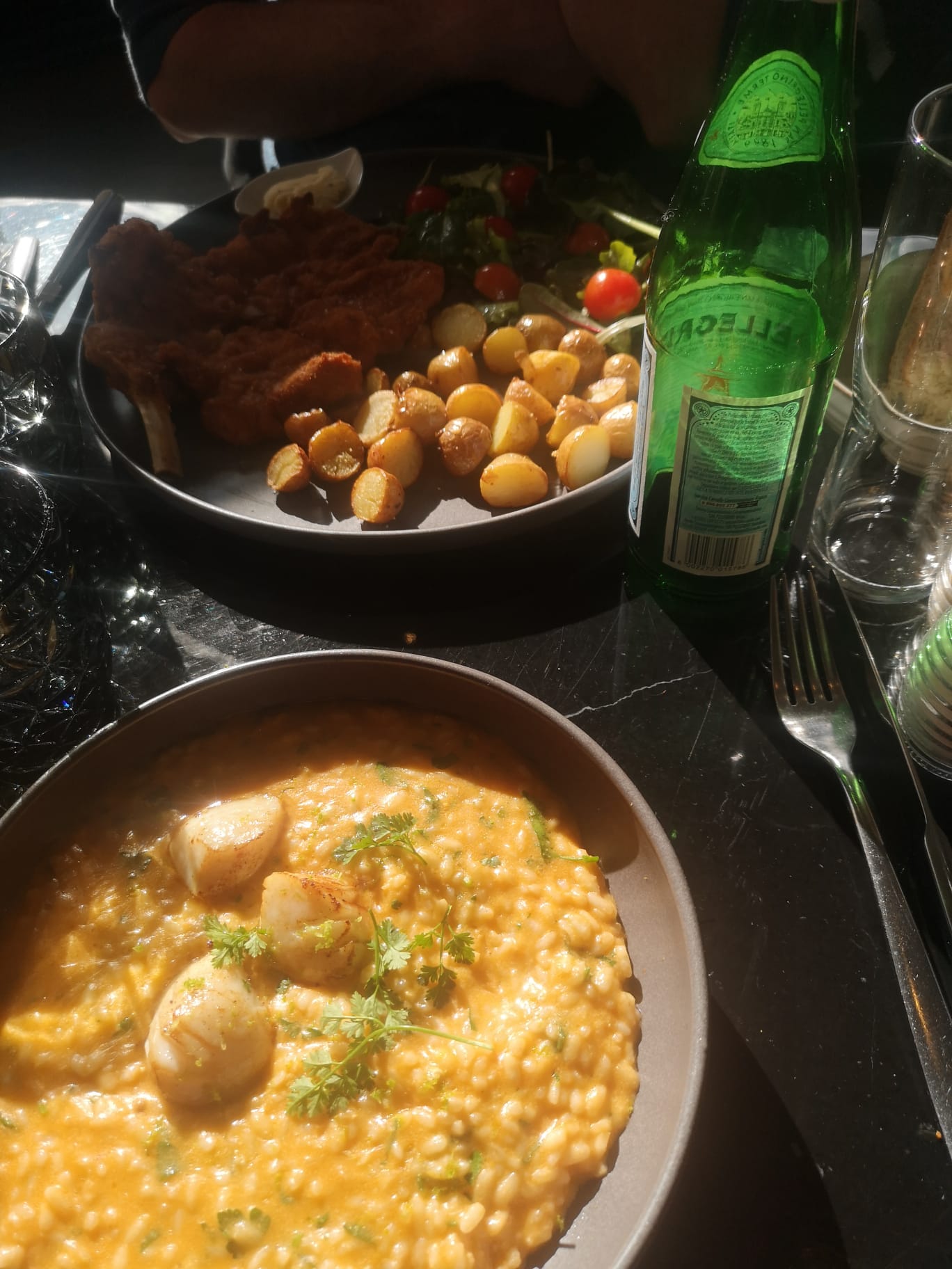 Déco soignée pour ce restaurant dans lequel nous avons dîné à deux. Les entrées étaient vraiment bonnes et consistantes (stracciatella et jambon), les plats un tout petit peu moins. Les pâtes caccio et pépé n'étaient pas vraiment cuites (moins que al dente) et manquaient de poivre (mais c'est une histoire de prix). Et la côte de veau était bonne mais nous avons trouvé que la proportion de frites par rapport à la viande était trop importante (ce qui ne sera pas un problème pour les amateurs de frites, mais je reconnais que je n'allais pas dans un restaurant italien pour en manger...). Le tiramisu en dessert était délicieux! Enfin, nous avons été très bien servi ! Et c'est important ! Donc nous recommandons, et nous pensons essayer l'autre restaurant car il paraît qu'ils font des pizzas 😋
