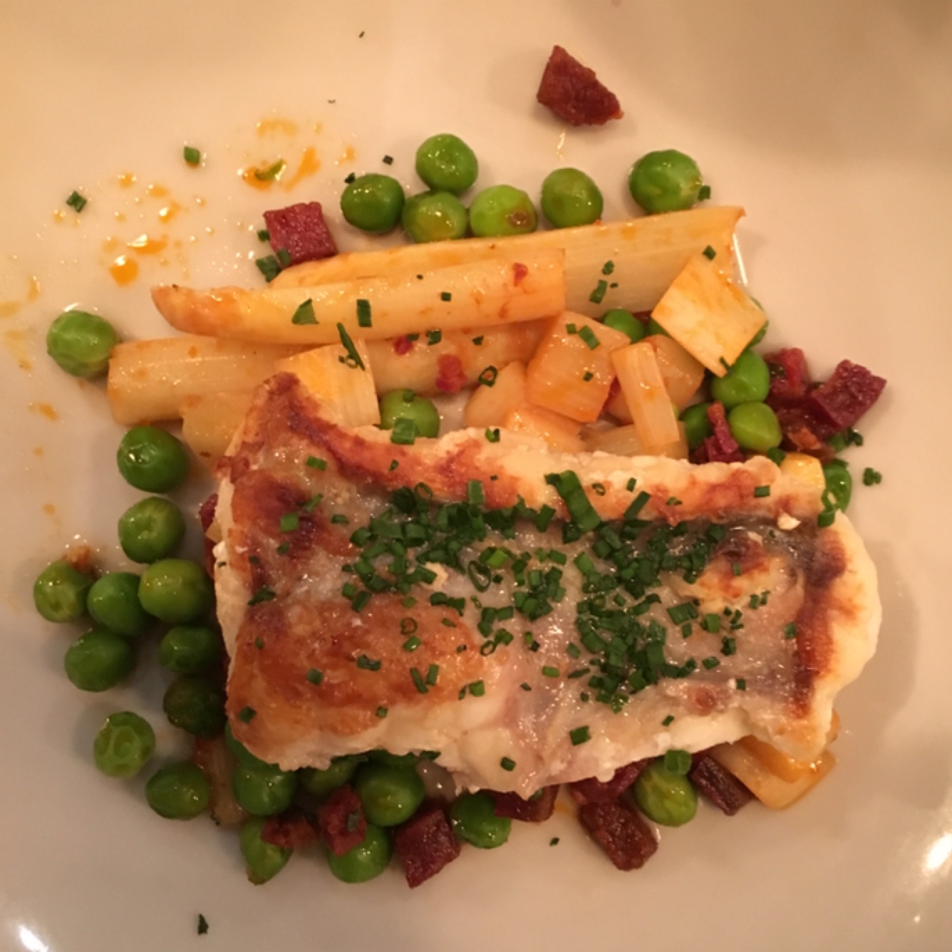 Accueil agréable. L'endroit est propre et bien espacé. Petit avant bouche, une sauce au champignon, on a adoré. Entrées : - Caparccio aux tomates anciennes au pesto, mon père a beaucoup apprécié. - Asperges avec du jambon crue, plutôt mitigé. Nous ne savions pas que c'était des vertes. - Gravelax de saumon, hum, j'ai eu un peu de mal à finir, mais sympa. Plats : - Selle d'agneau avec des pommes de terres - Selle d'agneau accompagné de poivrons en morceau et une sauce au poivron délicieuse. J'ai adoré la suave aux poivrons, par contre les poivrons en petit morceaux piquaient pour moi - Cabillaud entouré d'une fine tranche de jambon accompagné d'une sauce à l'epinard, c'était super bon !