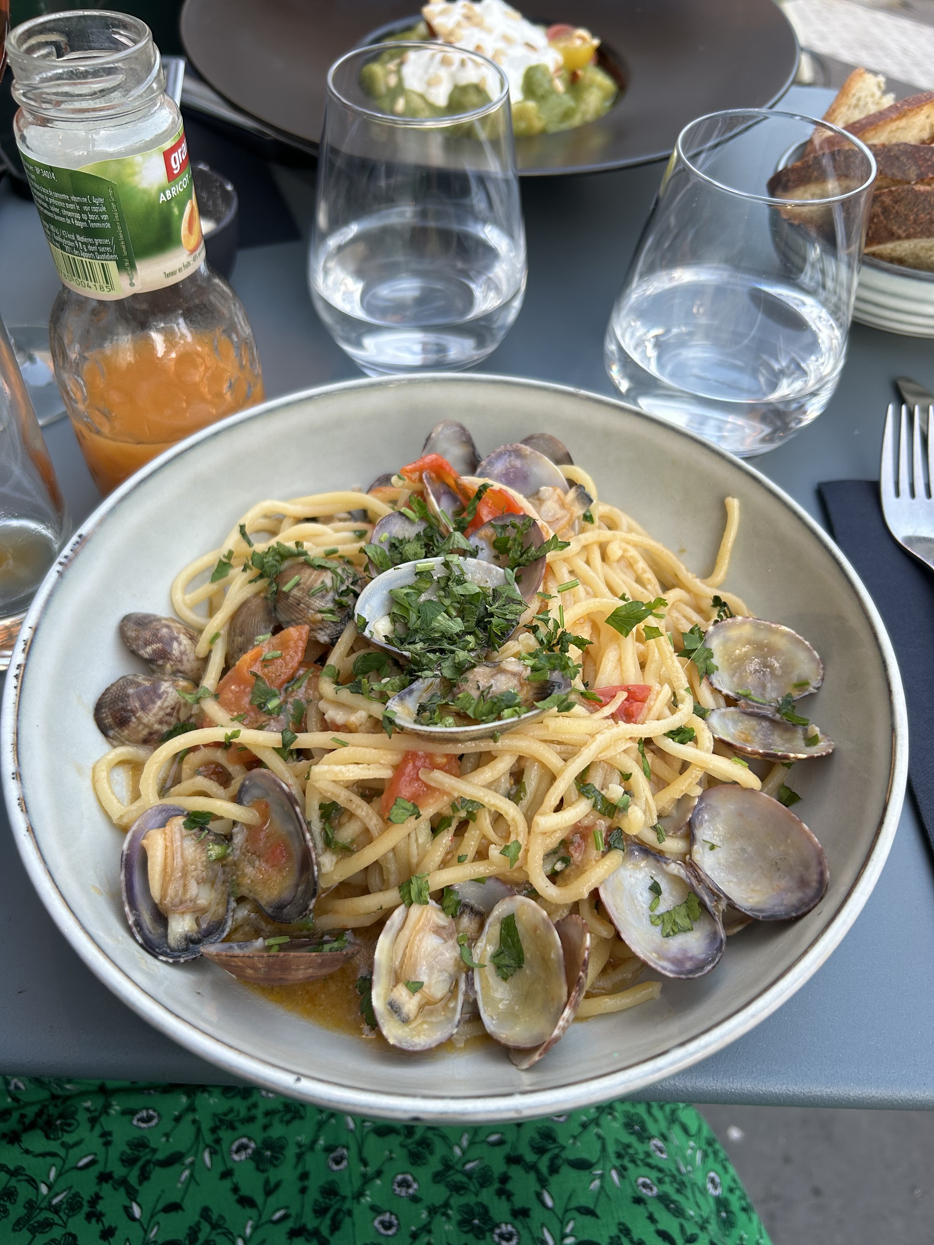 Ils font des pattes à la vongole avec un petit ingrédient en plus que le miennes ! Du sable ! Et non, ce n’est pas qlq chose qui doit arriver. A 26€ les pattes aux coques, il faut qu’elles soient parfaites. Ce n’était pas le cas... Généralement assez cher pour ce que c’est même si tout est fait maison. Heureusement qu’on est à Asnières et qu’ils ne souffrent pas de la concurrence...