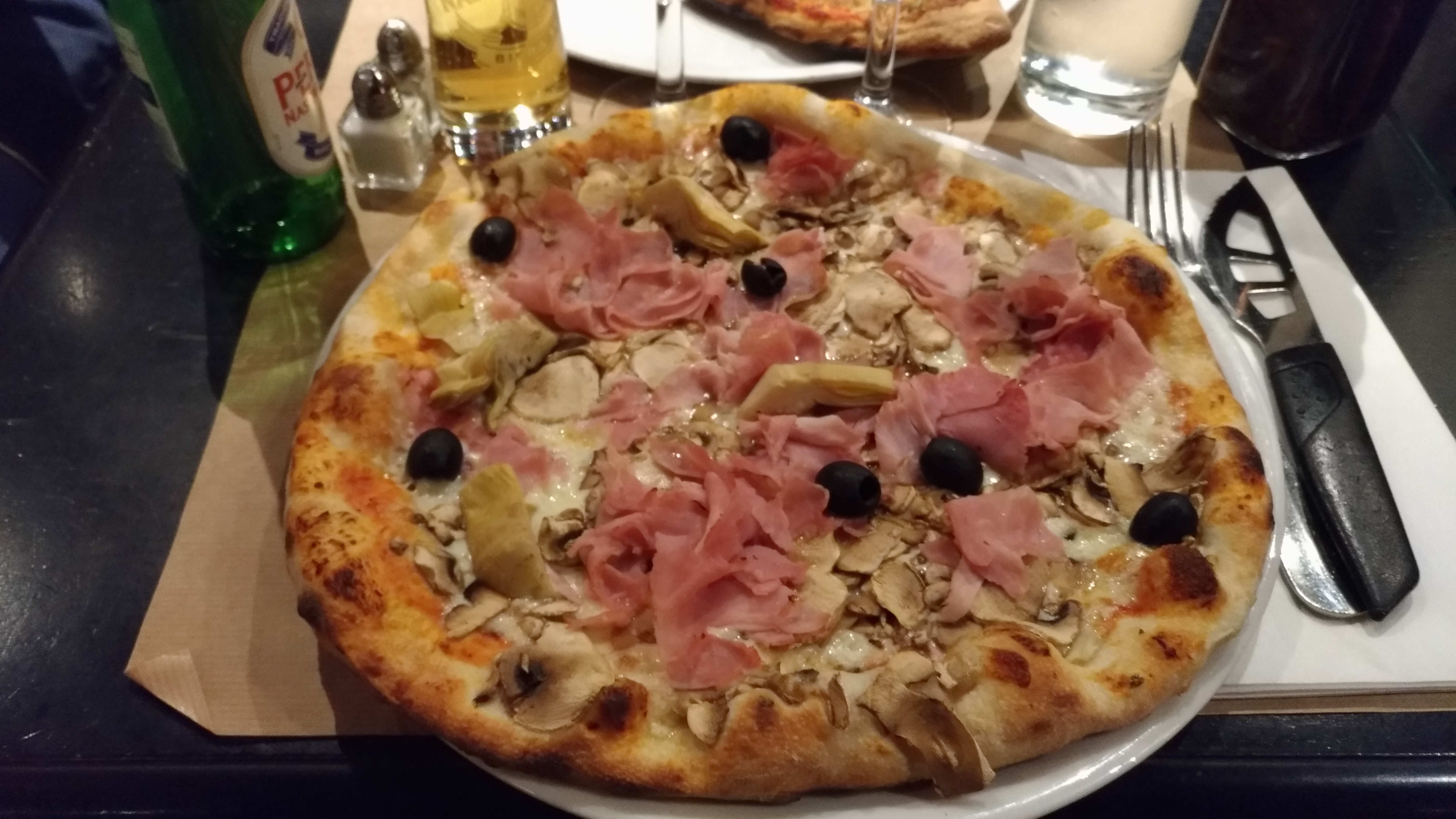 Pizzas très moyennes et chères (jambon quelconque, pâte énorme et peu intéressante, sauce tomates bof), accueil moyen, erreur de commande, escalope de veau trempant dans une sauce lourde (citron, ça aurait dû être léger) carpaccio où il faut chercher les morceaux de bœuf quasi inexistants au milieu de la salade, le tout aux prix max... seul le lambrusco était à la hauteur... très grand baisse de qualité et d'accueil, rapport qualité prix mauvais.