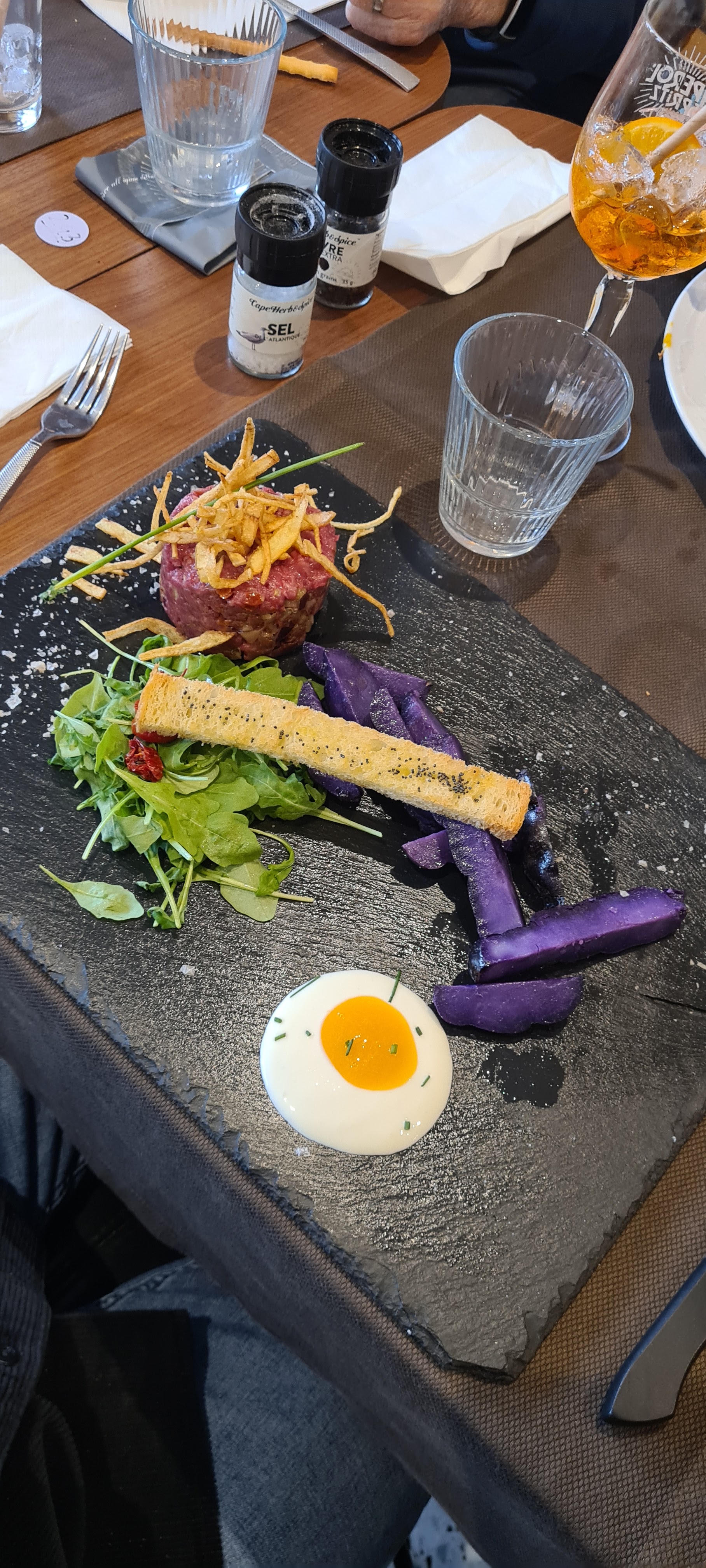 De passage et un peu pressés nous nous sommes arrêtés manger, pas d'apéro nous avons tout de suite commandé une entrée et les plats. C'était bon. Du coup juste dommage de pas recevoir leur petit apéritif à manger sous prétexte qu'on ne commande rien à boire...