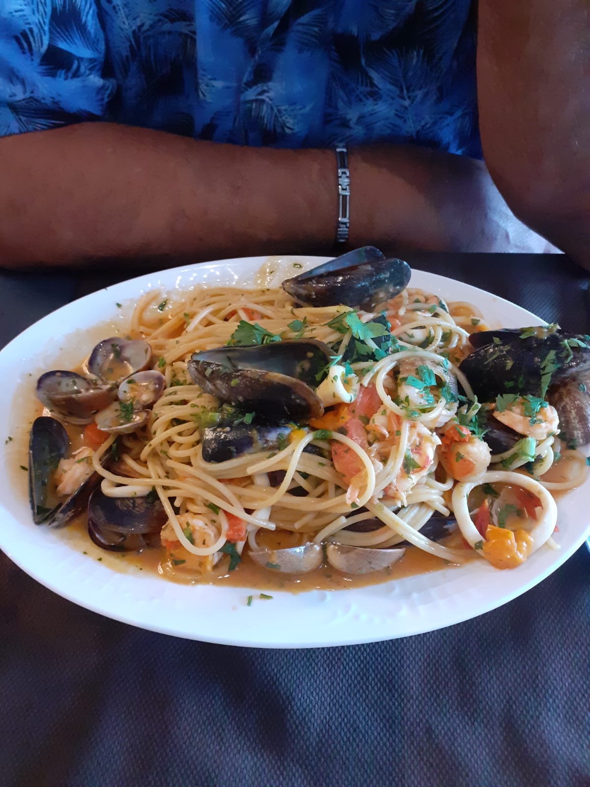 Excellente assiette de pâtes aux fruits de mer ! Non seulement ils sont généreux avec la garniture, mais en plus c'est très bon 😜 mise à jour de l'avis, 11 2022, toujours bon repas...avec quelques photos !