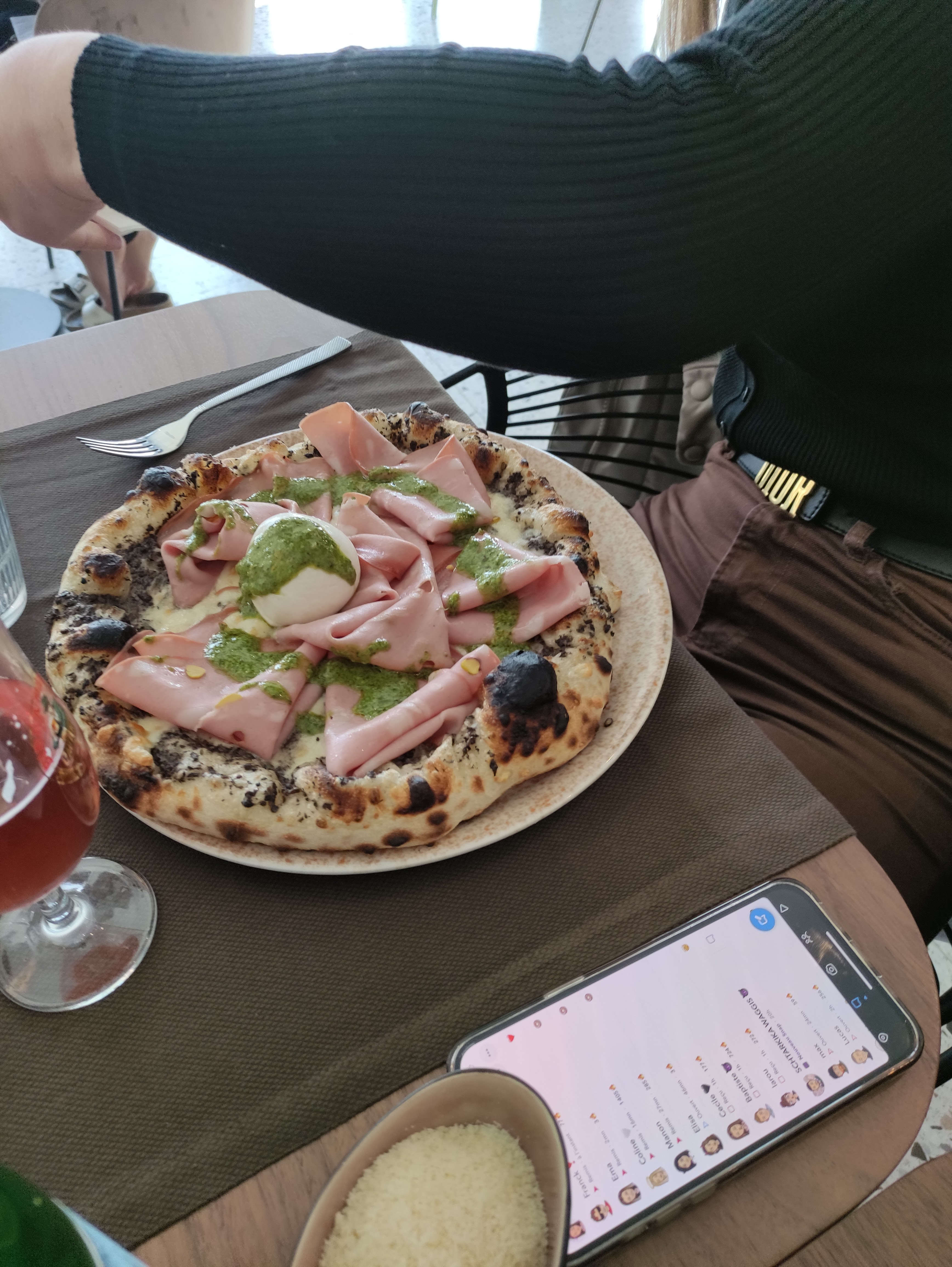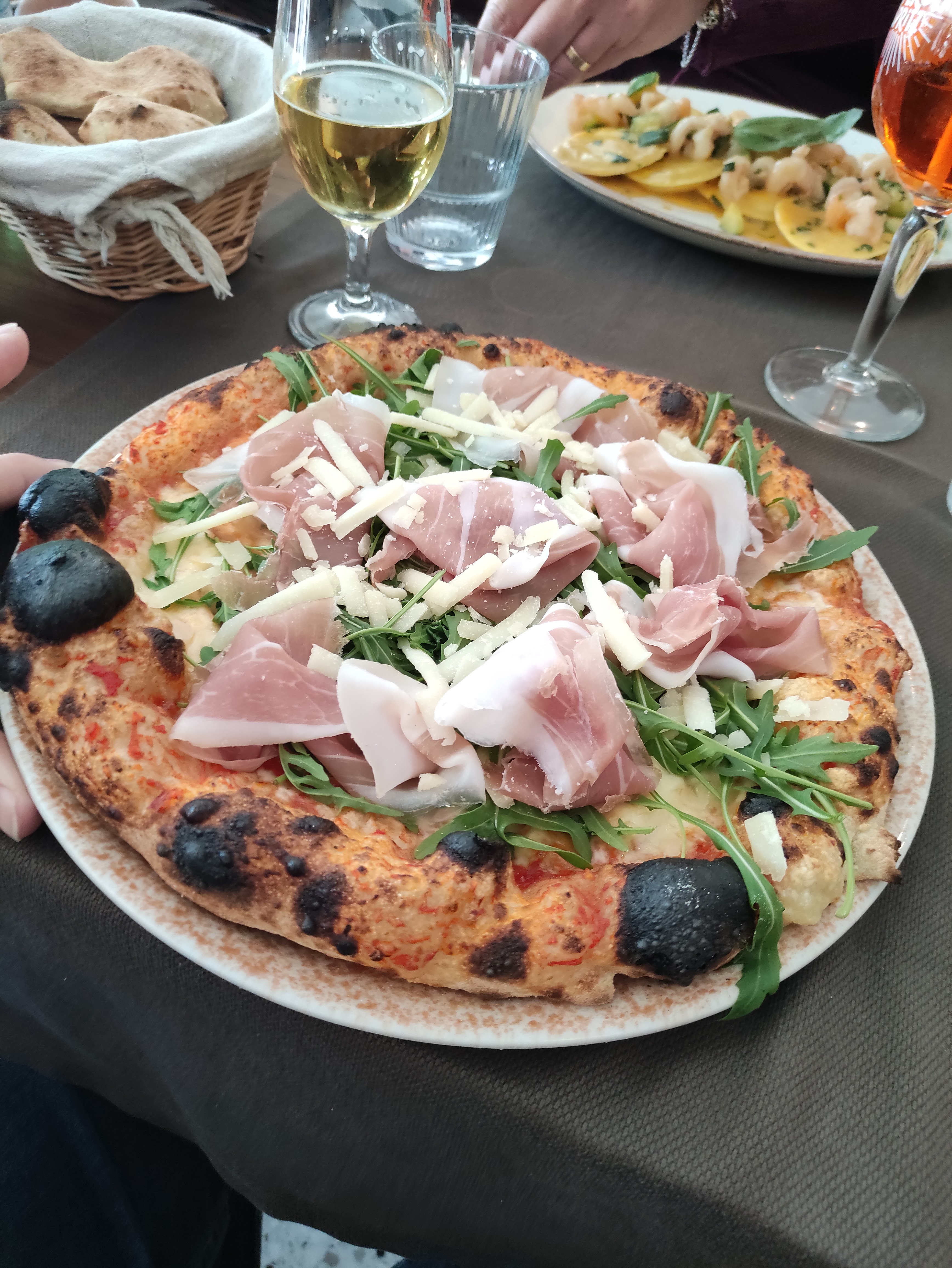 Merci à mon beau-père pour ce très bon repas d'un dimanche midi en famille. Les pizzas sont délicieuses, cependant si tous les clients commandent chacun une pizza, attendez-vous à patienter très longtemps pour recevoir la votre ! À quatre adultes et donc quatre pizzas, 45 minutes d'attente après la planche d'apéritif. Si vous avez faim et que vous souhaitez déjeuner immédiatement le dimanche, préférez les pâtes, les risottos ou autres pièces de viandes que vous propose ce restaurant. Serveur un peu trop familier avec la clientèle mais sympathique et bonne pizzeria dans son l'ensemble.