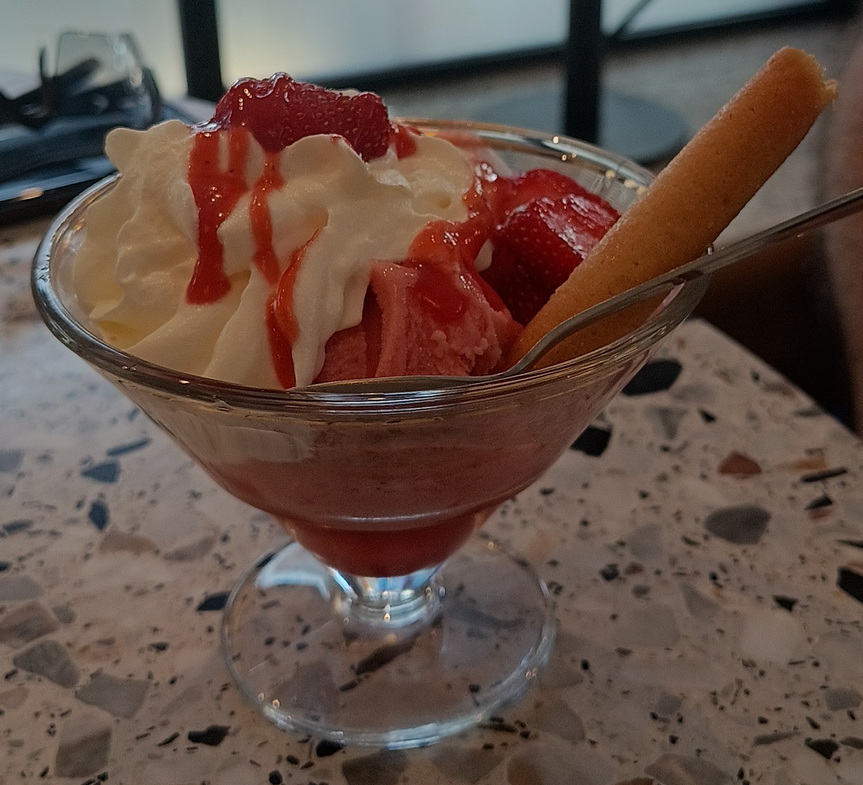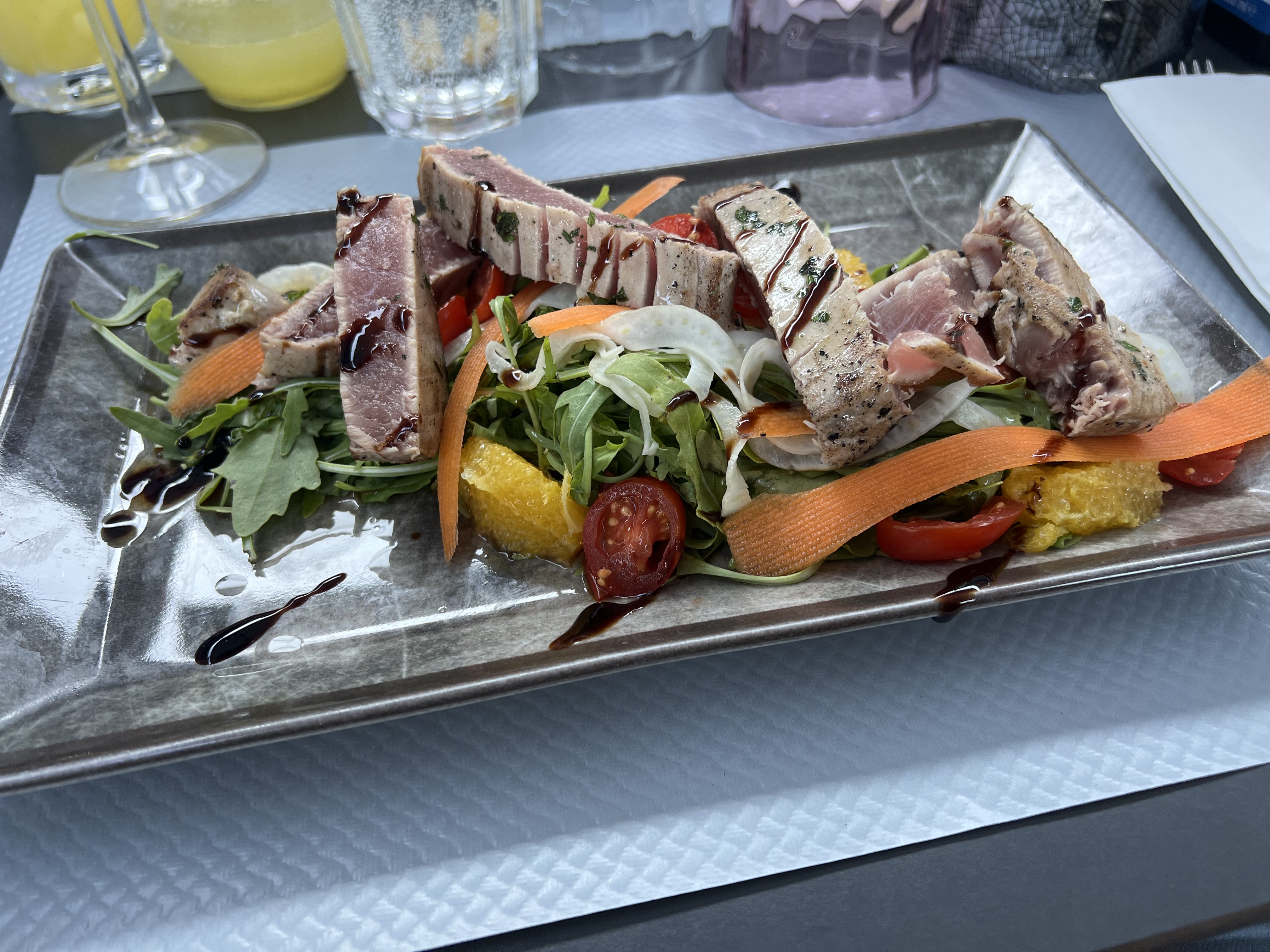 J'avais pris une salade, les ingrédients devaient être passés vu le goût 🤢 Un verre de vin qui arrive limite au dessert...... Manque je communication je pense. Responsable très professionnelle heureusement. Déçu pour une première fois.