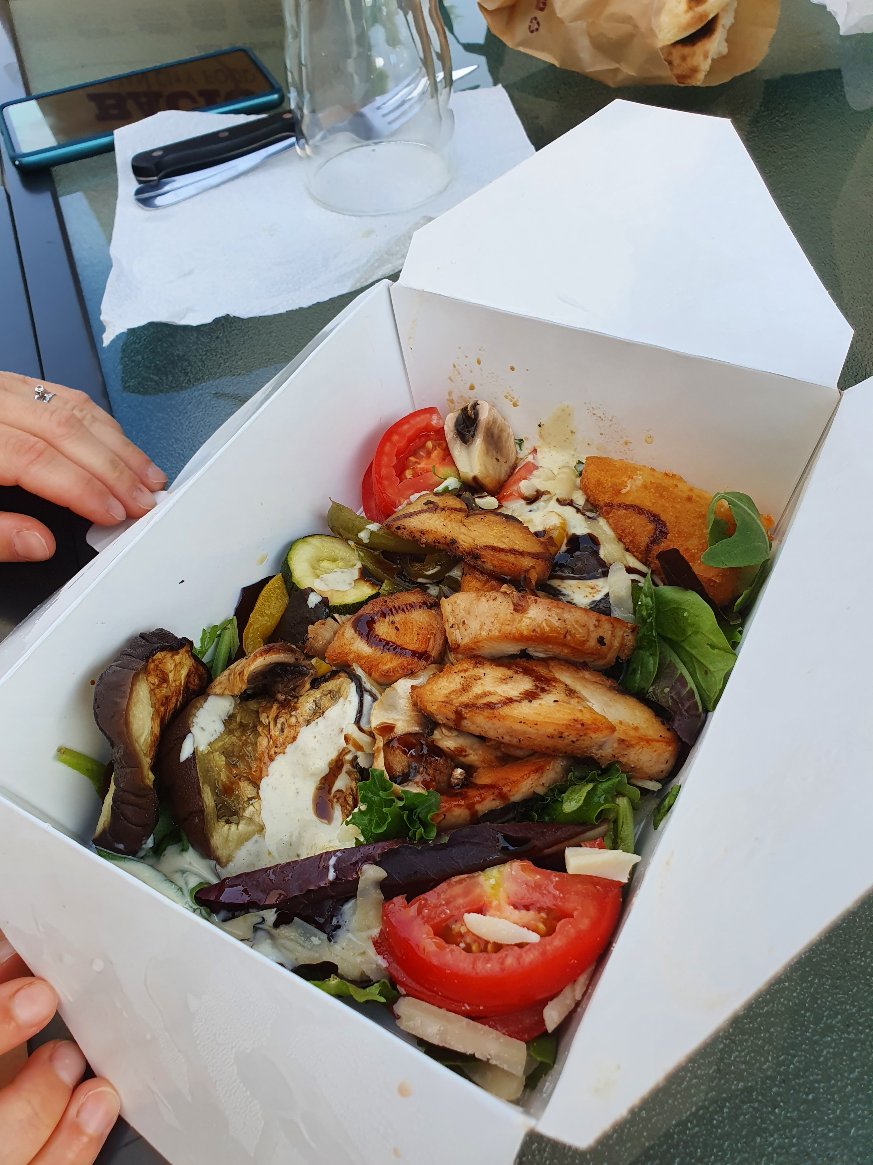 Très déçue. J'ai commandé à emporter une salade César (14 e quand même). Pour ce prix on s'attend quand même à avoir suffisamment manger. Hors dans la barquette en carton il y a à peine le fond qui est remplit... c'est vraiment lamentable, un prix supérieur à une pizza pour quelques feuilles de salades et 3 morceaux de poulet... honteux. Nous ne reviendrons pas