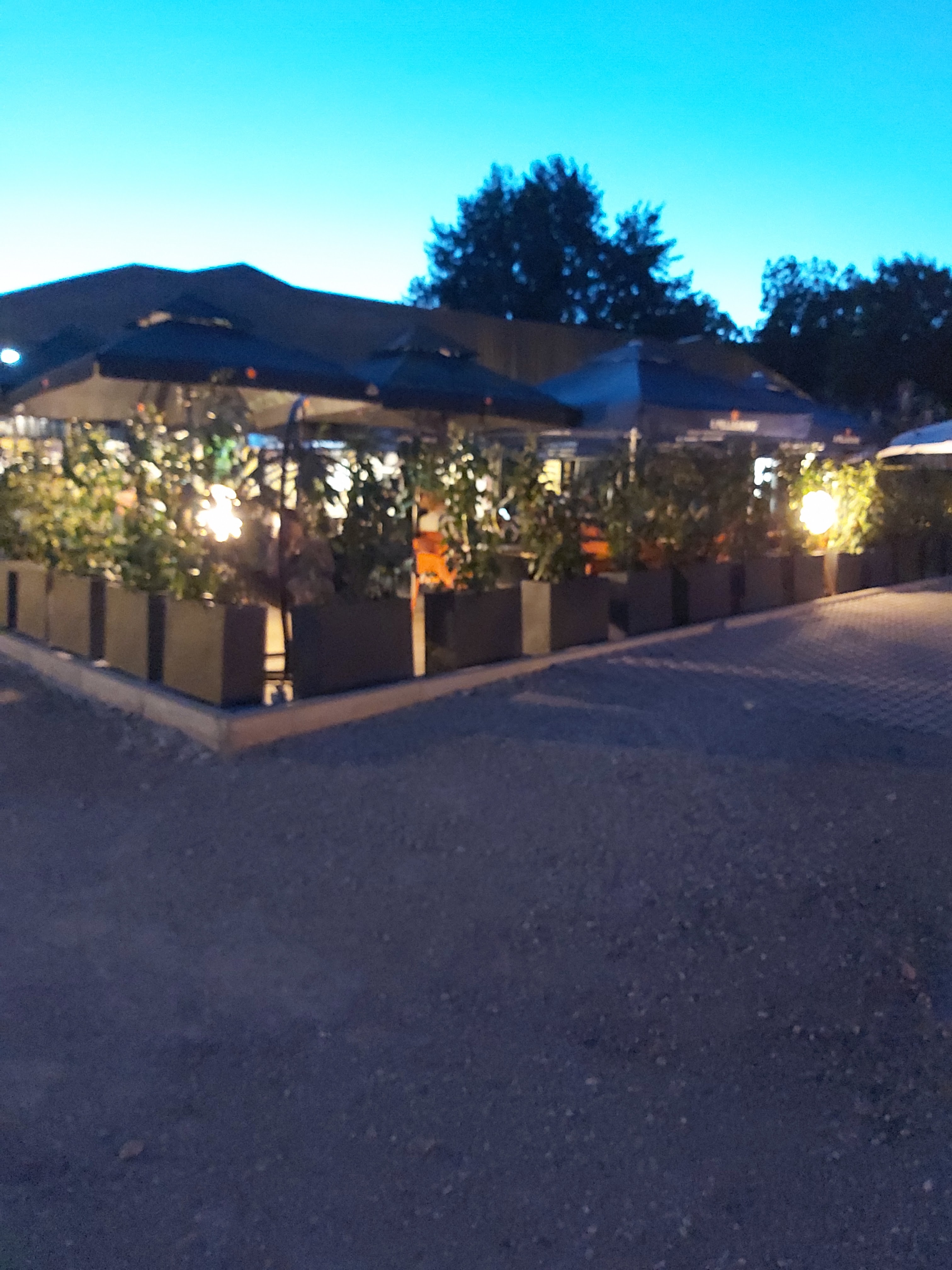 J'y suis allée avec 5 amis samedi soir. Points positifs : *bel accueil, *repas pris en terrasse. *pizza bonne. Points négatifs : *repas pas servi en même temps, les pâtes ont été servi 15 minutes après les 5 pizzas. *Pas assez d'éclairage sur la terrasse le soir, A REVOIR * poubelles trop près de la terrasse,ce qui génère des odeurs, * service confus des serveurs, et pas très organisé, Beaucoup de fautes.... Je n'ai pas pu voir la fin de mon repas par manque de luminosité. Les serveur ont commencé à débarrasser notre table avant la fin de notre repas. Dommage.