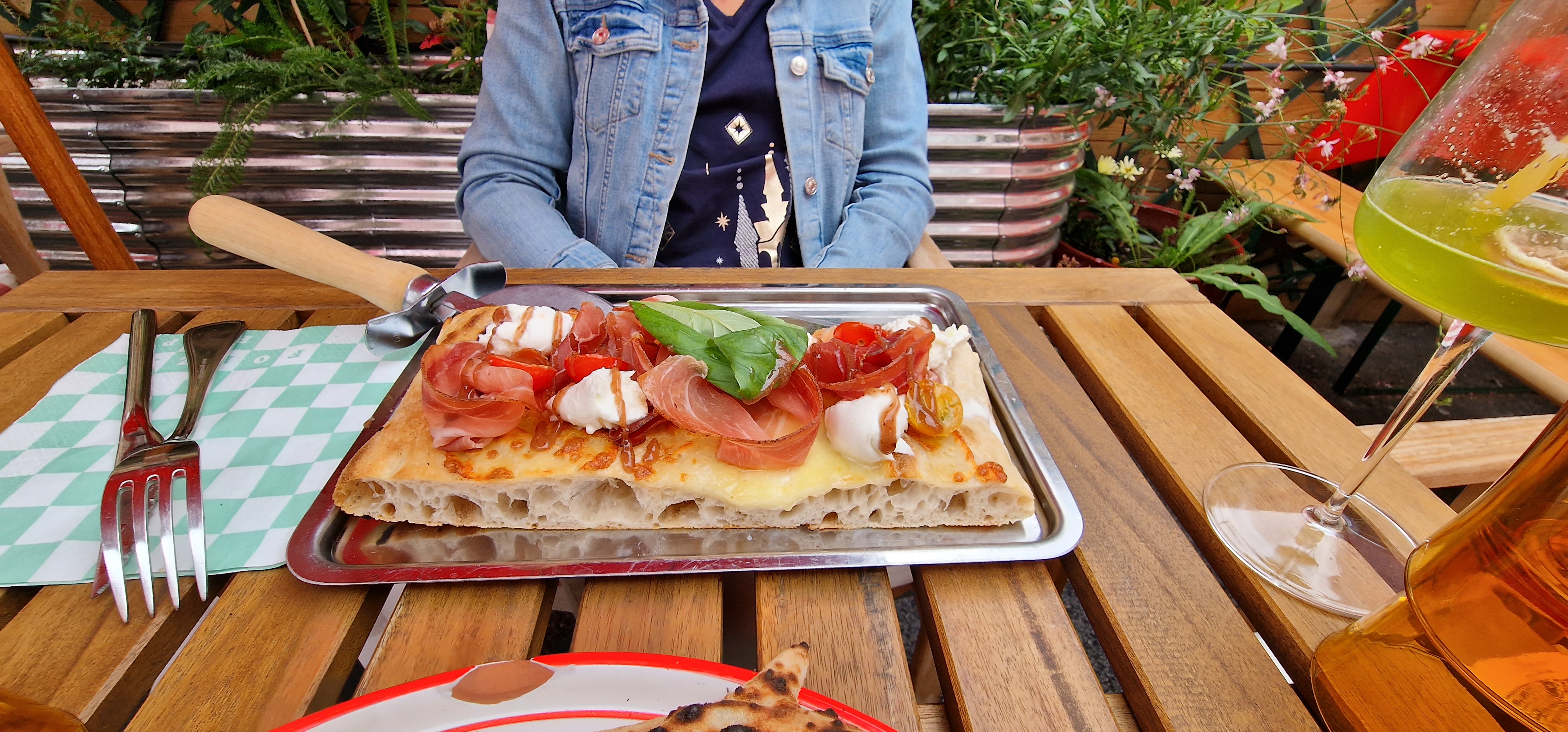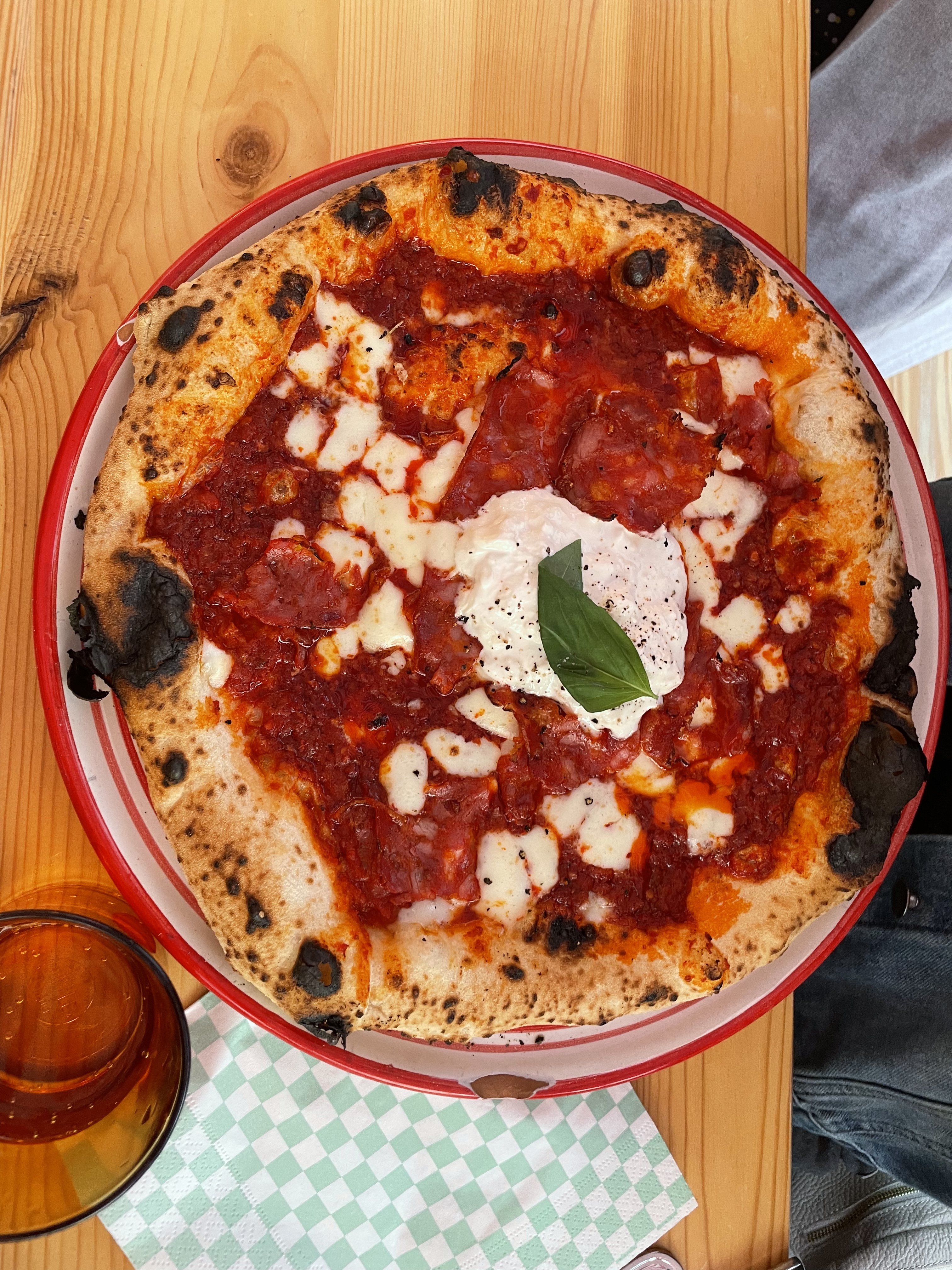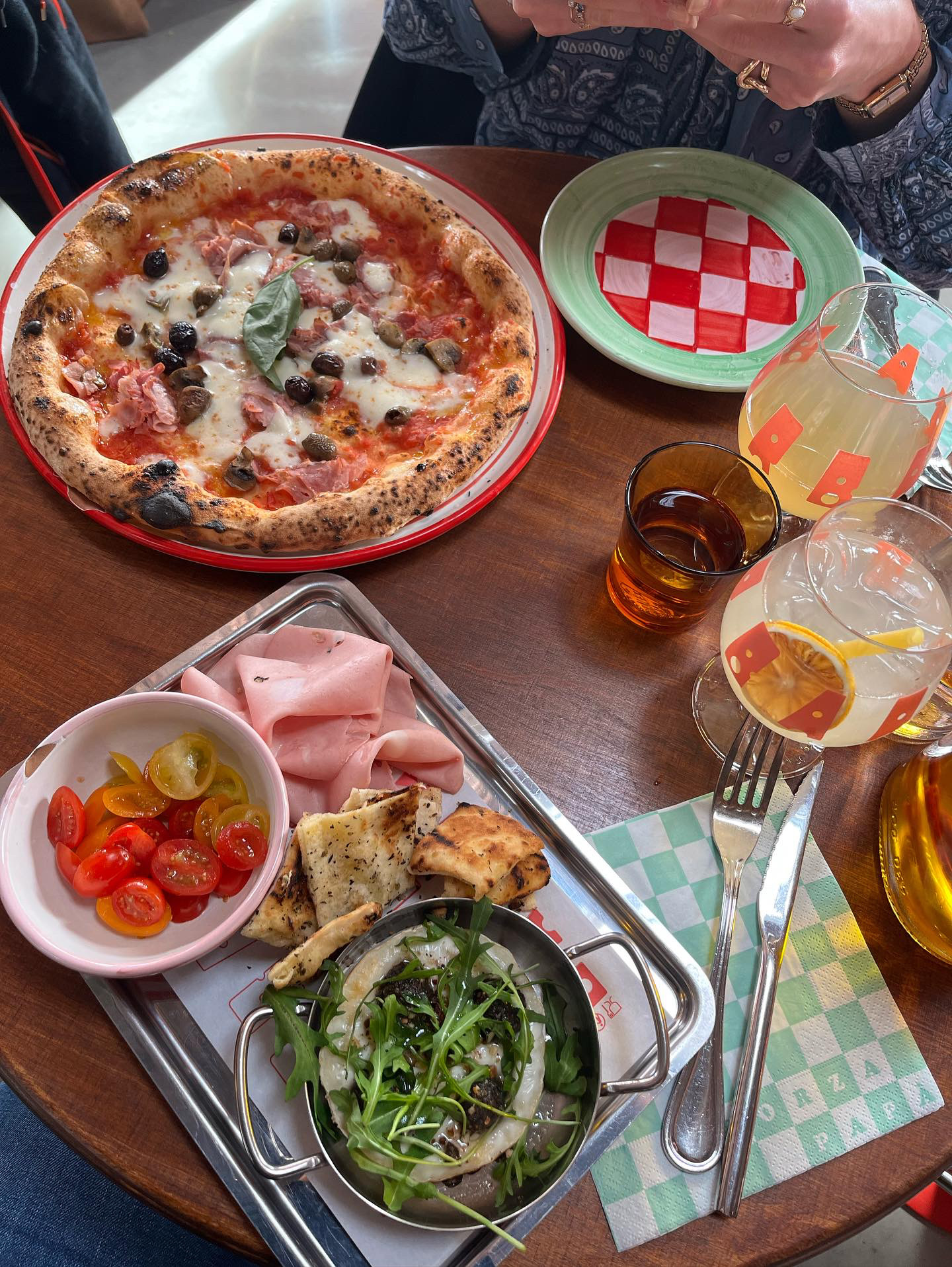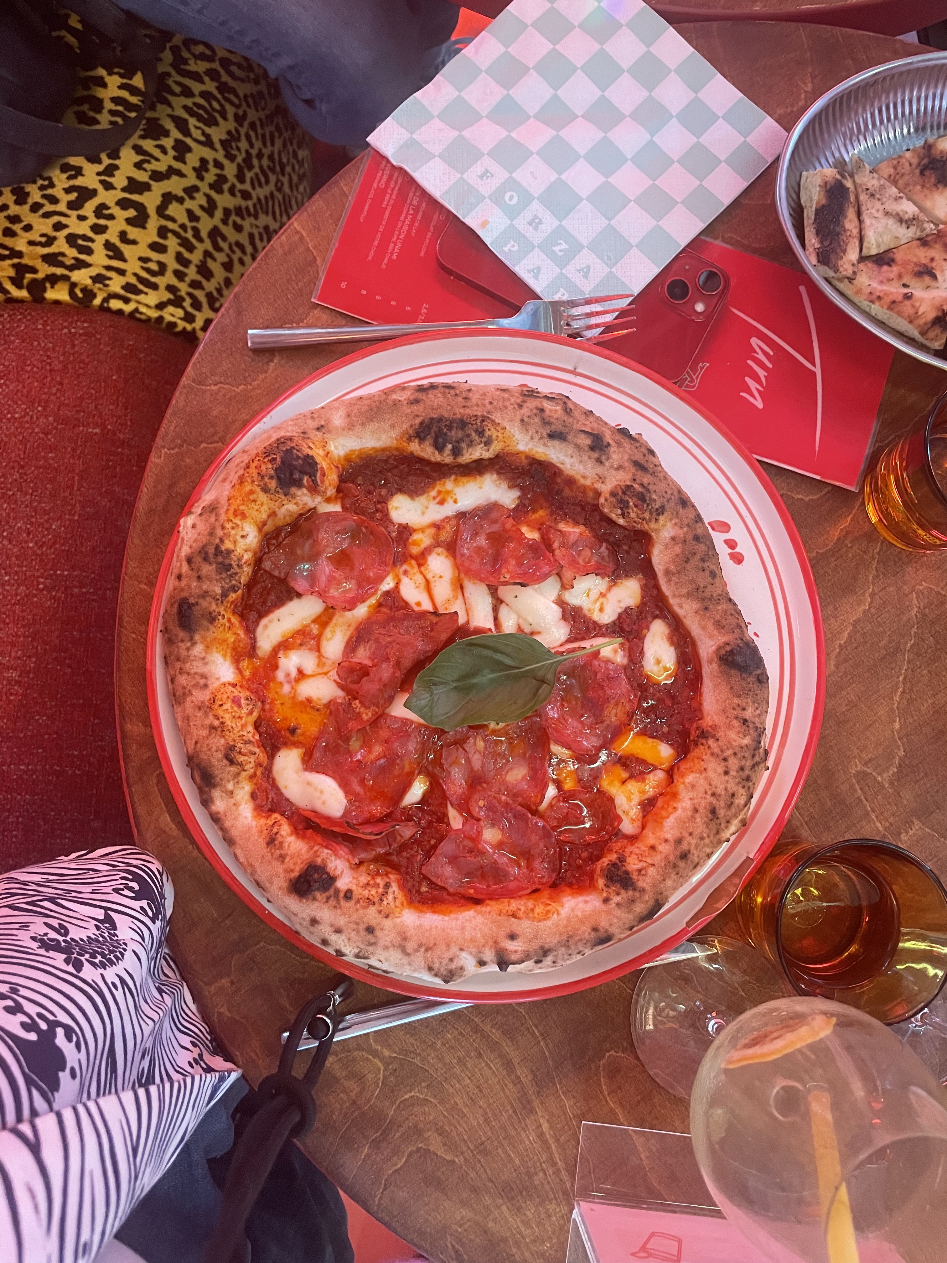Première réaction: la surprise de voir que nous mangions sur une grande table avec d’autres clients (presque collés) mais nous nous y sommes très vite fait et cela a permis de discuter avec ces autres clients. N’ayant jamais testé les fameuses pizza papa Raffael je ne savais pas à quoi m’attendre, nous avons pris une burrata pistachio très fraîche et une pizza regina tout aussi bonne ! Néanmoins je mets 3 étoiles pour l’atmosphère car malgré le lieu super original et joyeux, il reste bruyant.