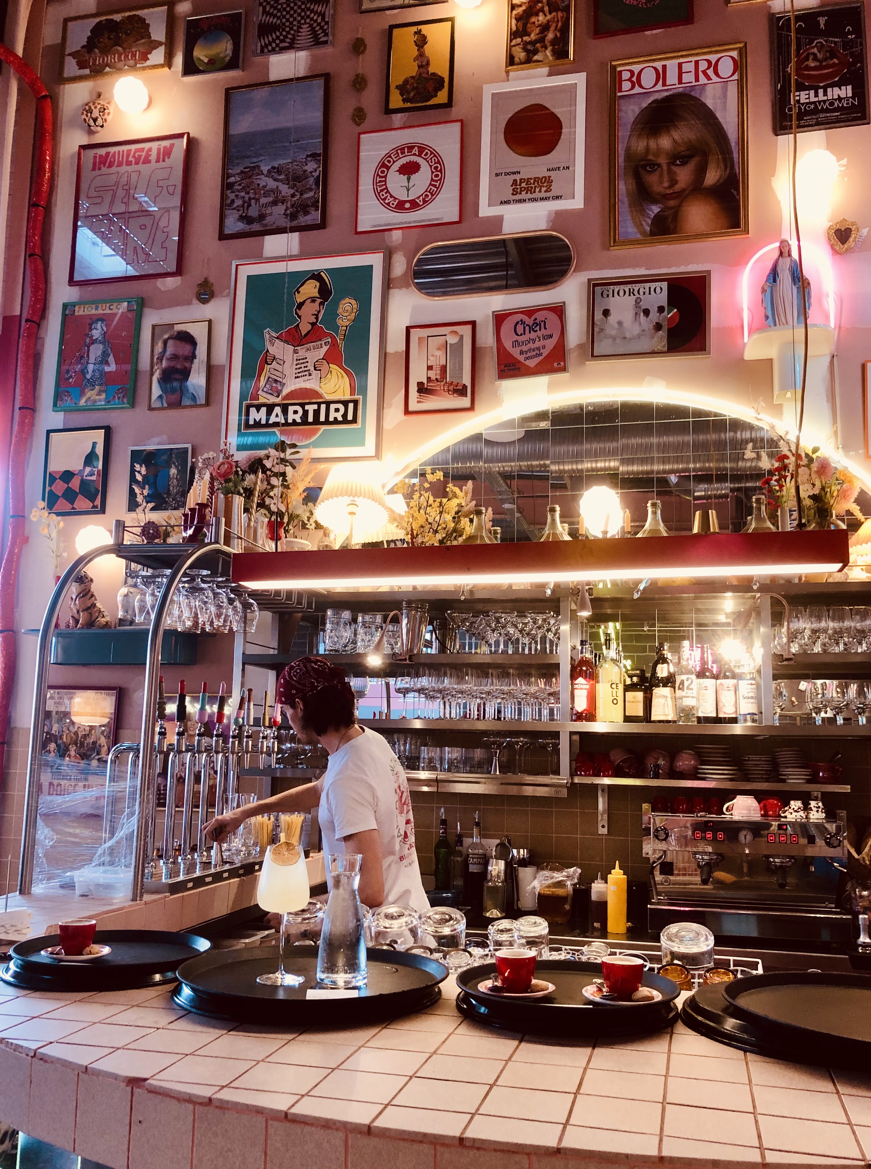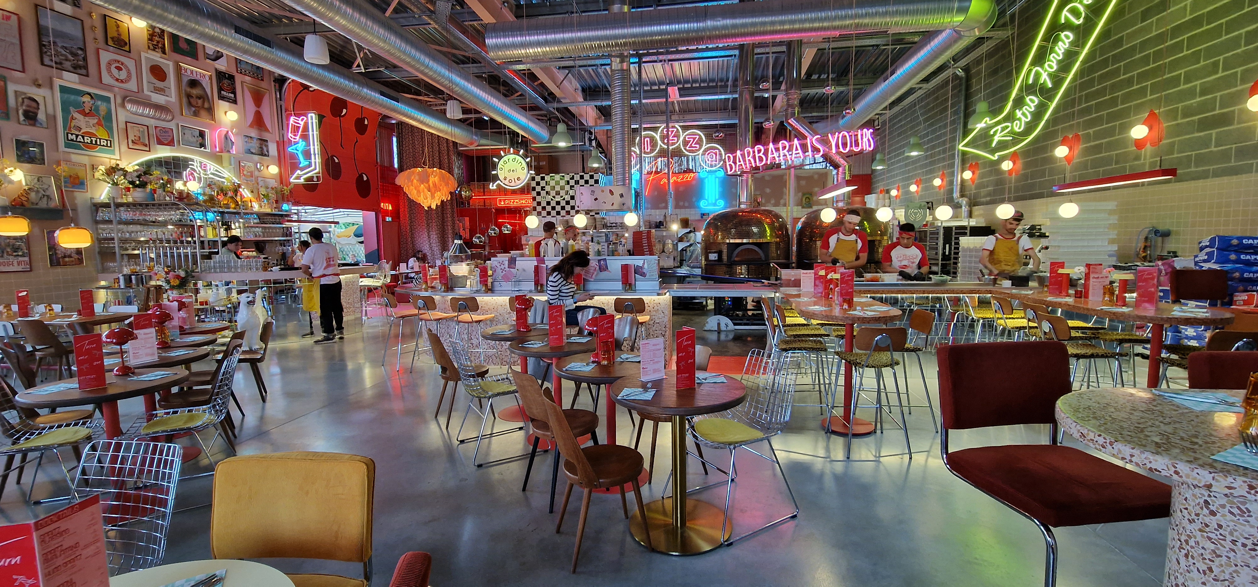 lieu insolite mix annees 70 italie personnel jeune super sympa qui vient te voir tous les 5mn pour te demander si tu veux consommer 😁 ne pas hesiter a leur dire que tout va bien les produits sont de qualité les pizzas sont bonnes par contre c'est bruyant donc ne pas y aller pour un repas aux chandelles avec ton ou ta chérie .