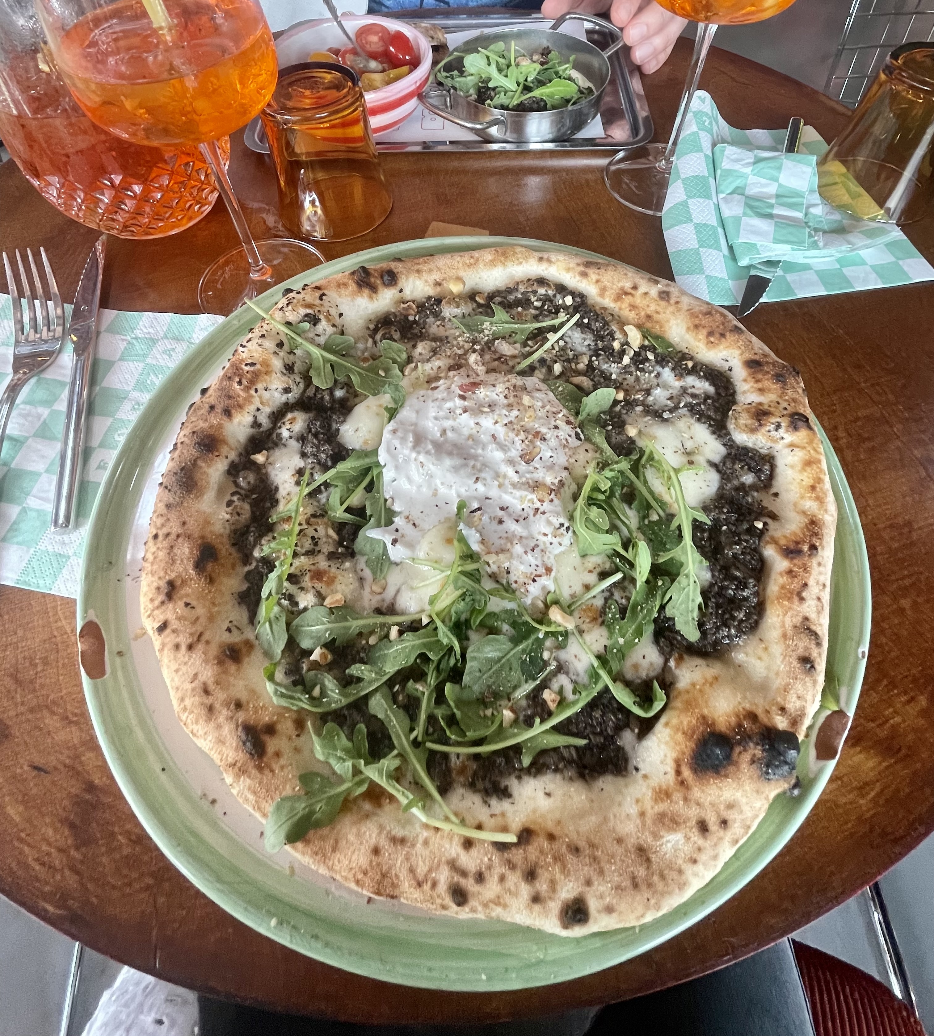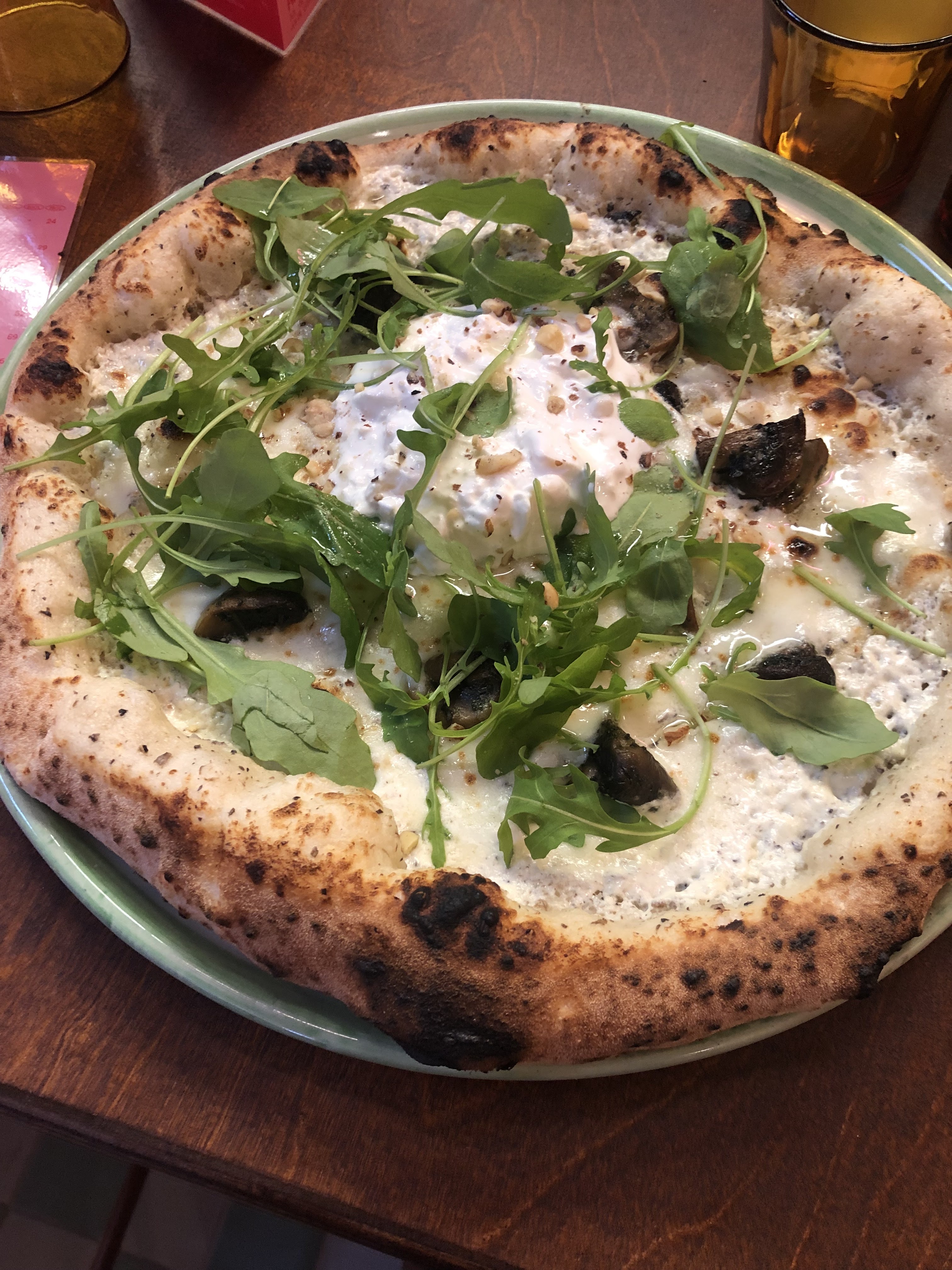 Super restaurant de spécialités italiennes. Le cadre est détonnant dans un style rétro/disco, sorte de cabinet de curiosité mais se trouvant dans un hangar avec peu de séparations donc bruyant. A notre visite, les tables étaient collées sans trop d’intimité pour les couples. Le service est décontracté, bien exécuté mais un peu « speed ». La burrata est une bonne mise en bouche. Suivie d’excellentes pizzas à croûtes épaisses et copieuses. Bon rapport qualité/prix.