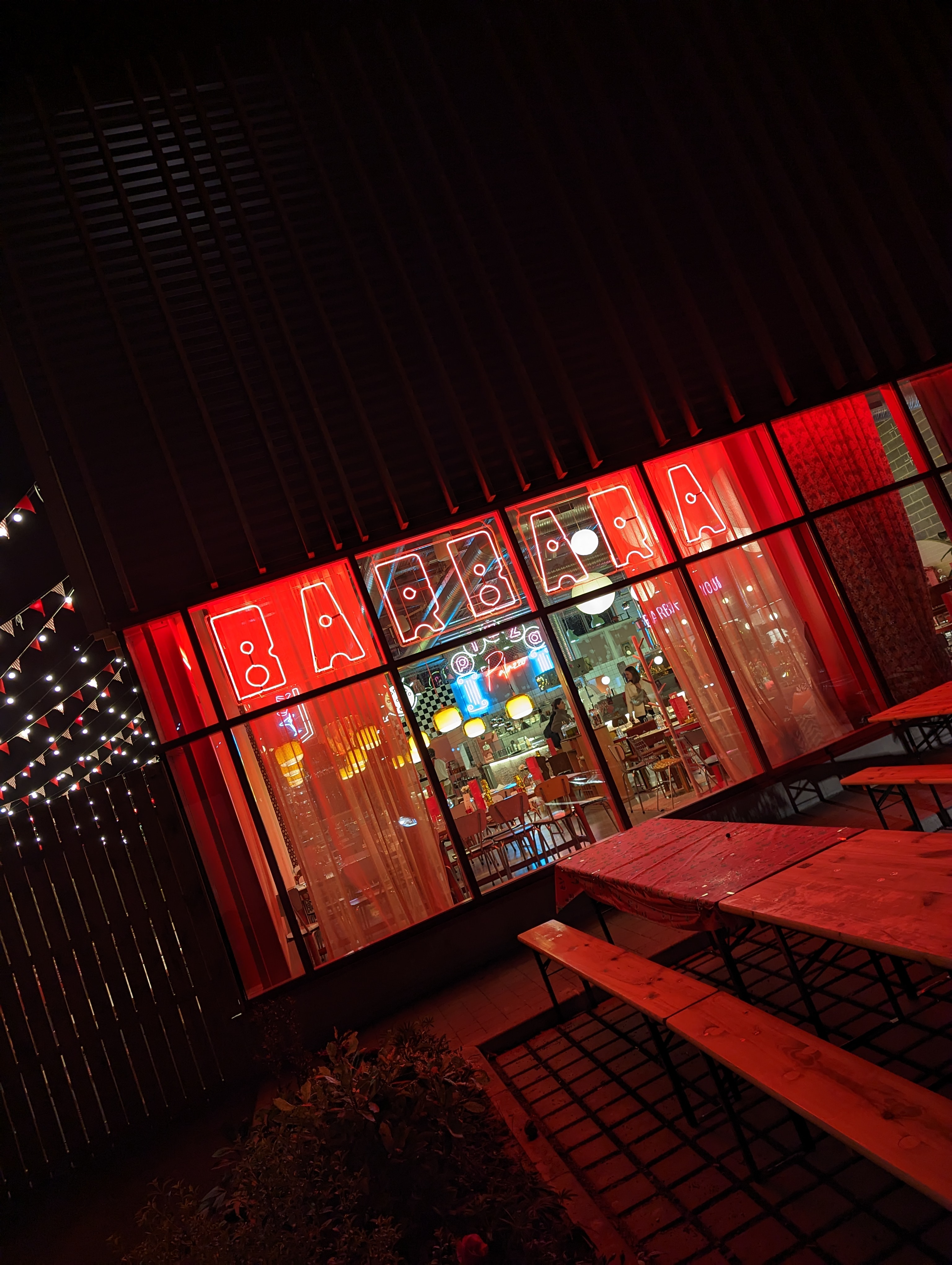 Première expérience chez Barbara et la dernière !!! Déco sympa dans un hangar où chaque cm2 est optimisé ! Aucune intimité dans un brouhaha innommable, sans compter les hurlements des serveurs à chaque fois que des clients paient la facture !!! Nous avions une petite table ronde, glissée au milieu de grandes tablées, sur laquelle nos 3 assiettes avaient du mal à trouver leur place. Accueil et service sans considération après une attente de plus d 1 heure pour enfin être servis ! Pizzas sans saveur avec une garniture à peine perceptible !! Et le comble si vous demandez du parmesan il vous est facturé 2 € !! du jamais vu !! J ai demandé de l huile pimentée... Cadeau !!!! Ouf !! La bière Barbara plate, sans mousse, insipide facturé 5 € !!! Non vraiment moment raté et 50 € pour 3 personnes jetés par la fenêtre !!! Grand regret, un moment très désagréable.