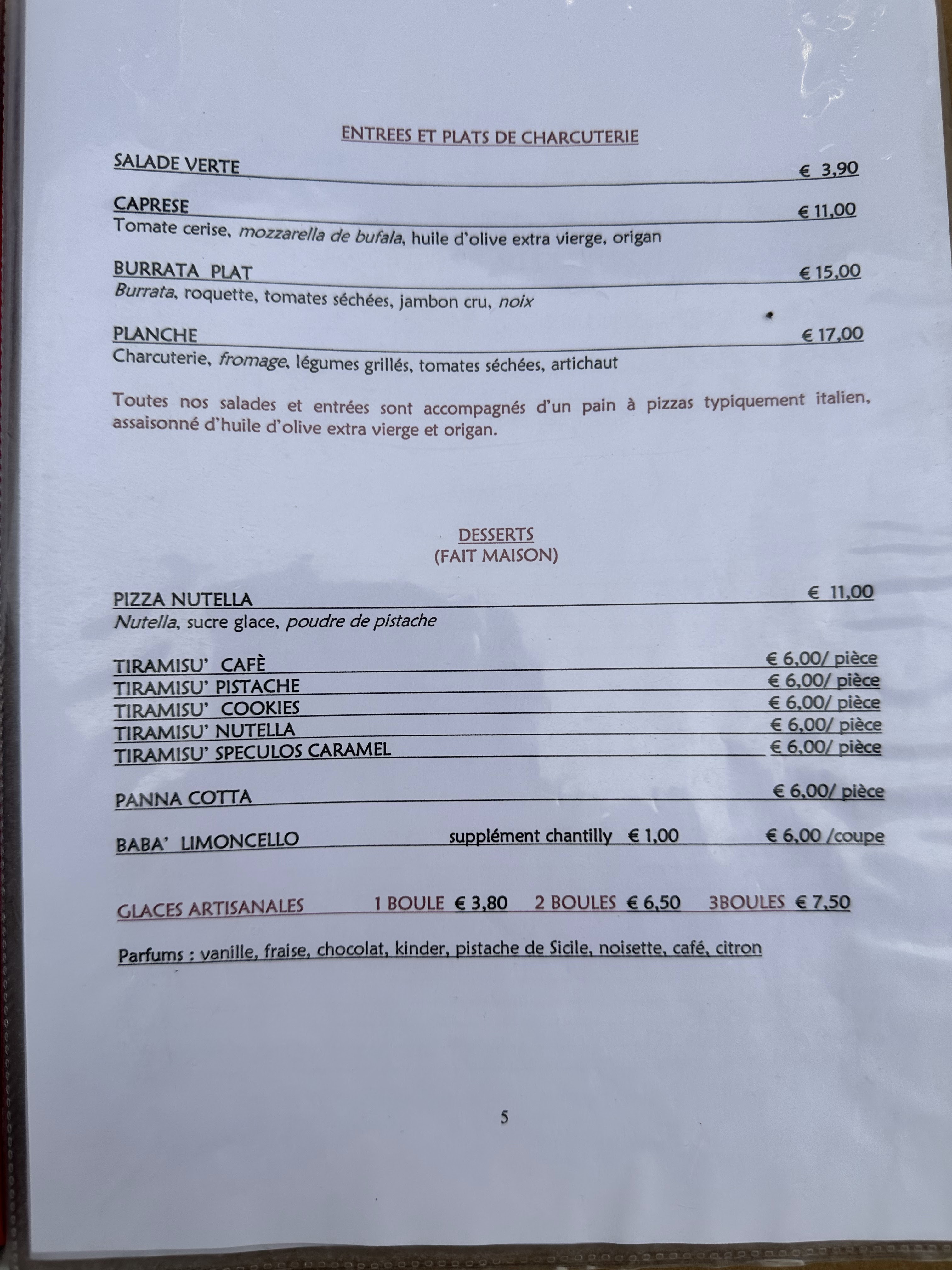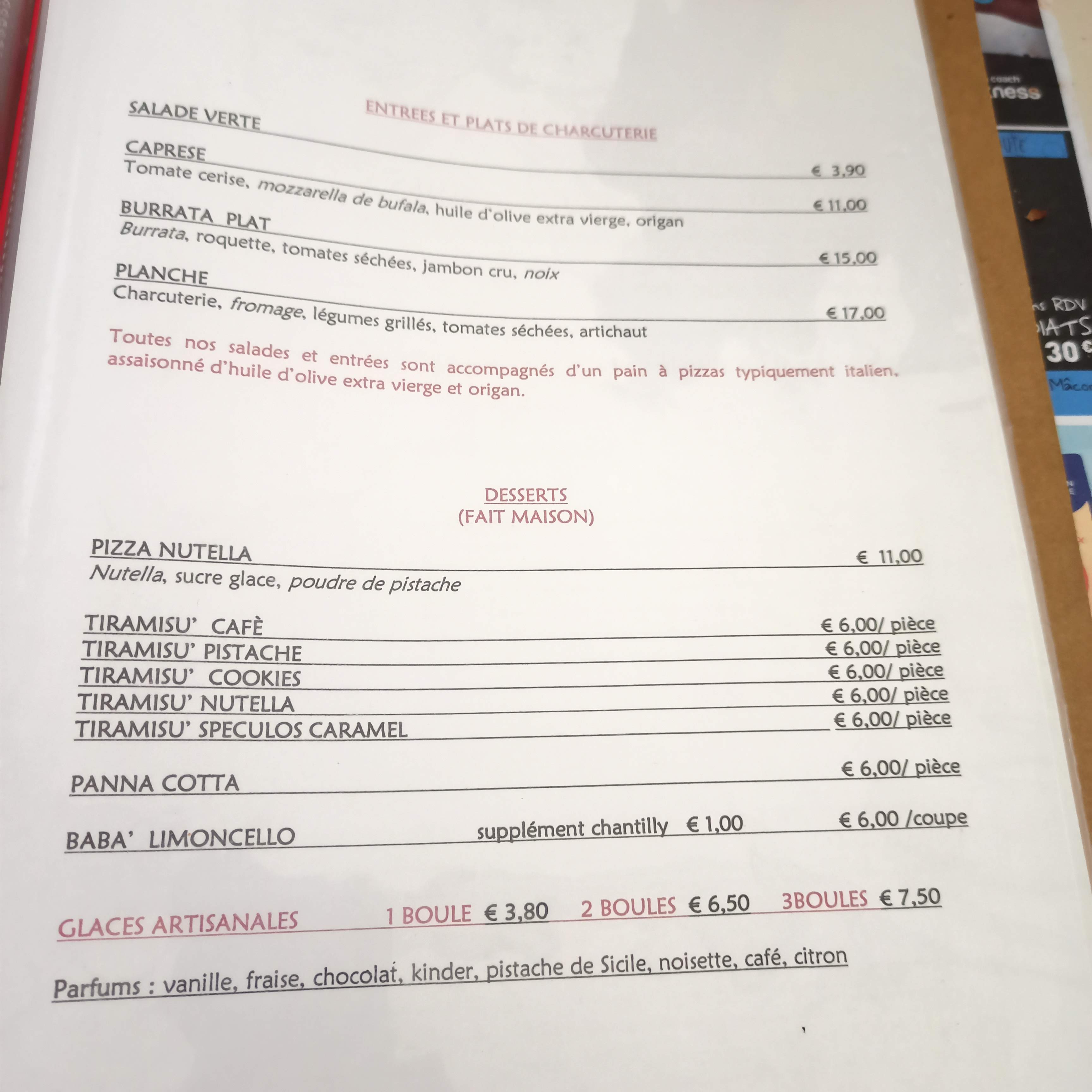 Cadre simple en pleine rue mais plutot calme avec un interieur tres sympathique. La langue parlée est le francais avec une belle intonation italienne. Le repas avec les differentes pizzas a ete tres sympathique. Les saveurs des produits frais etant au rendez vous avec notre palais Il est a noter que le service un peu desorganisé a fait en sorte que nous prennions pas de desserts car pas le temps sur le coup