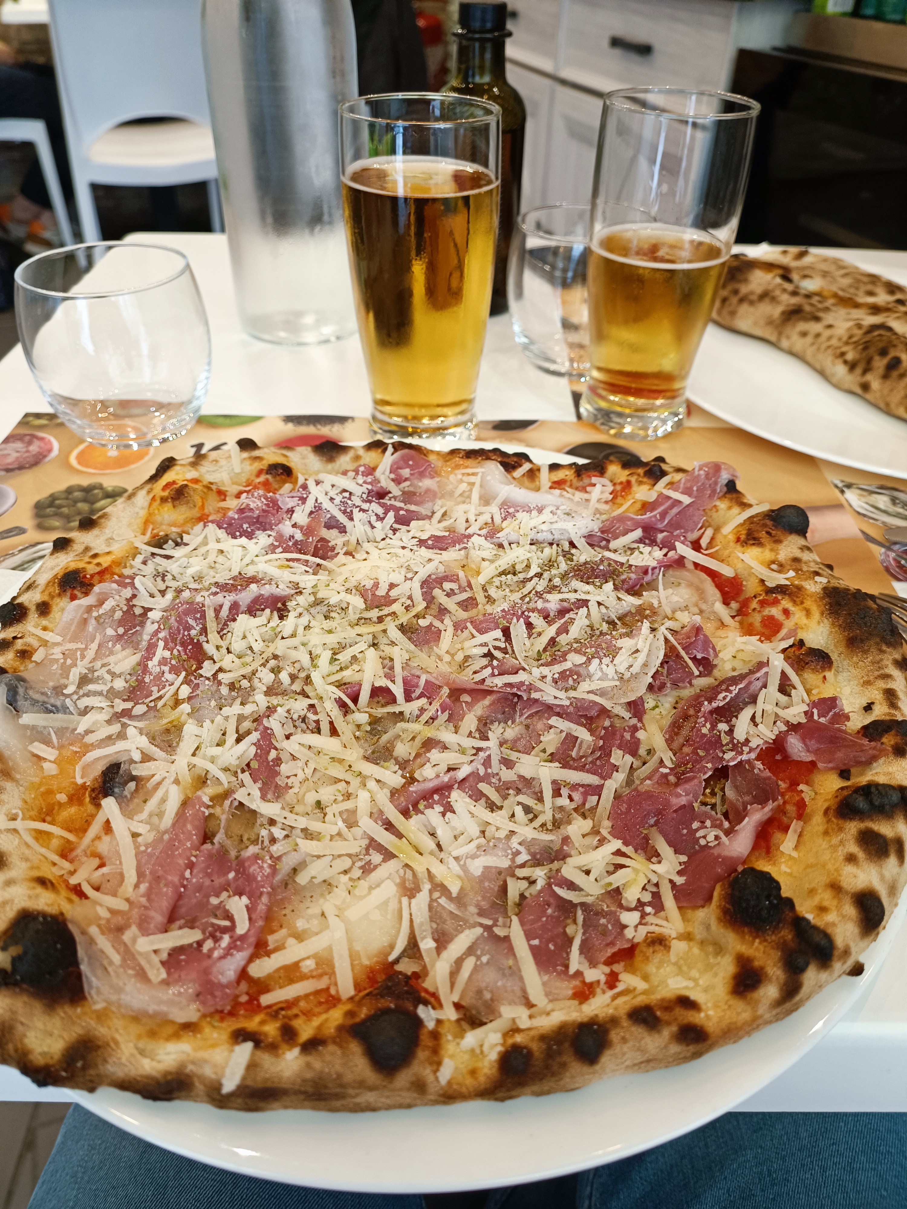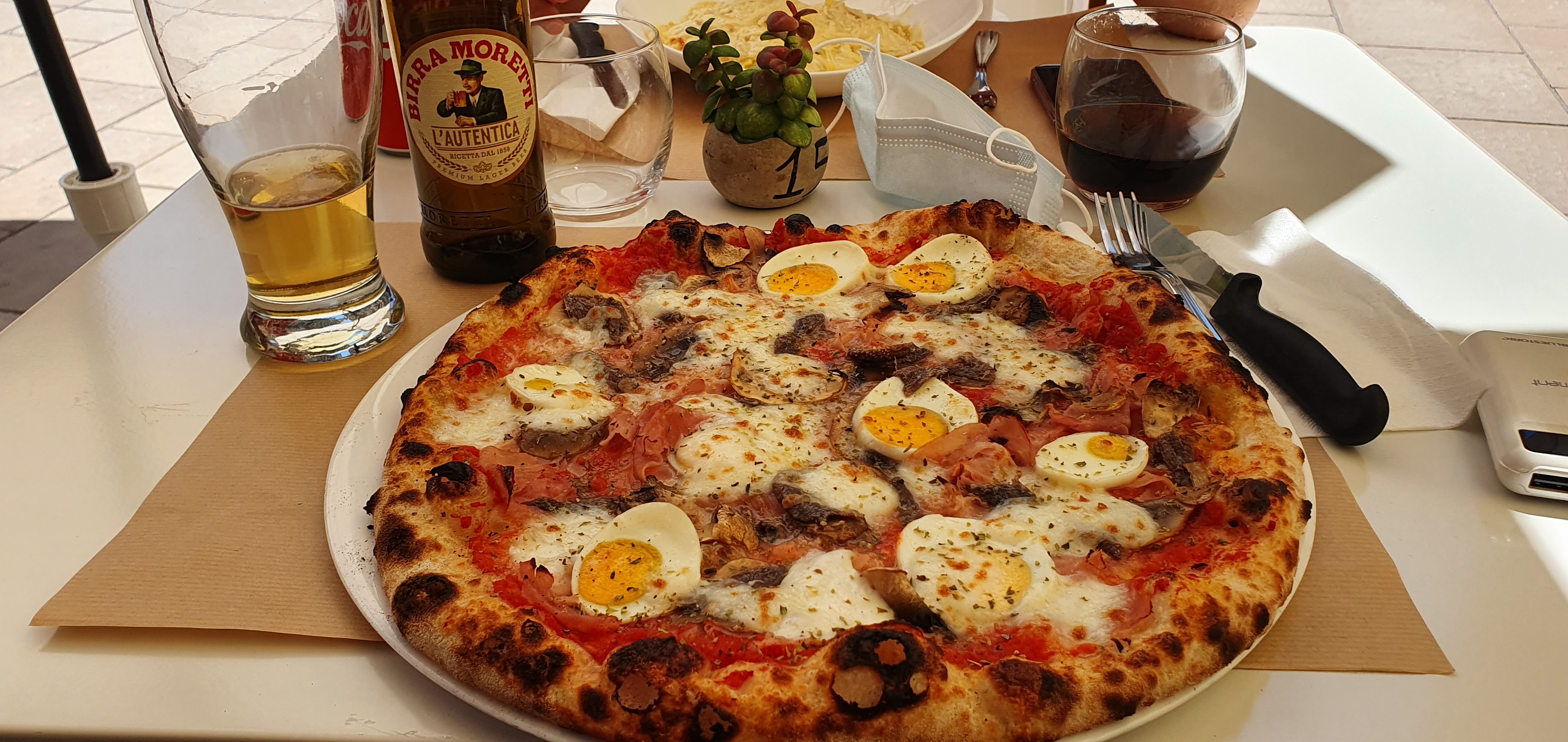 Produits authentiques, pizzas excellentes avec une croûte succulente, Moscato d asti super un petit bémol a l'intérieur l'espace est réduit
