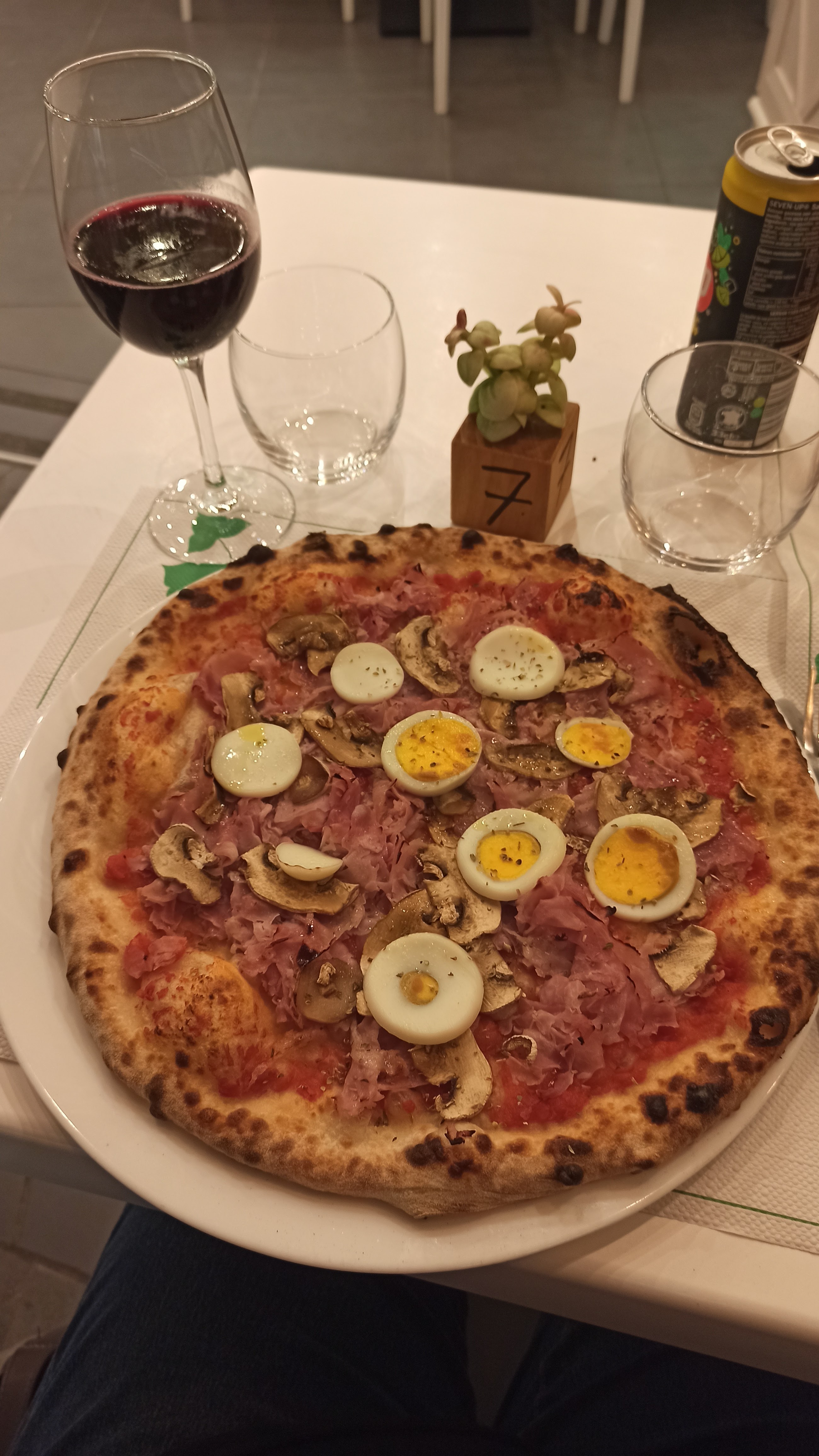 Pizza un peu réduite par rapport à l assiette, pourrait proposer l huile piquante... service expéditif...dessert, café et hop au suivant...dommage car les pizzas sont très bonnes!