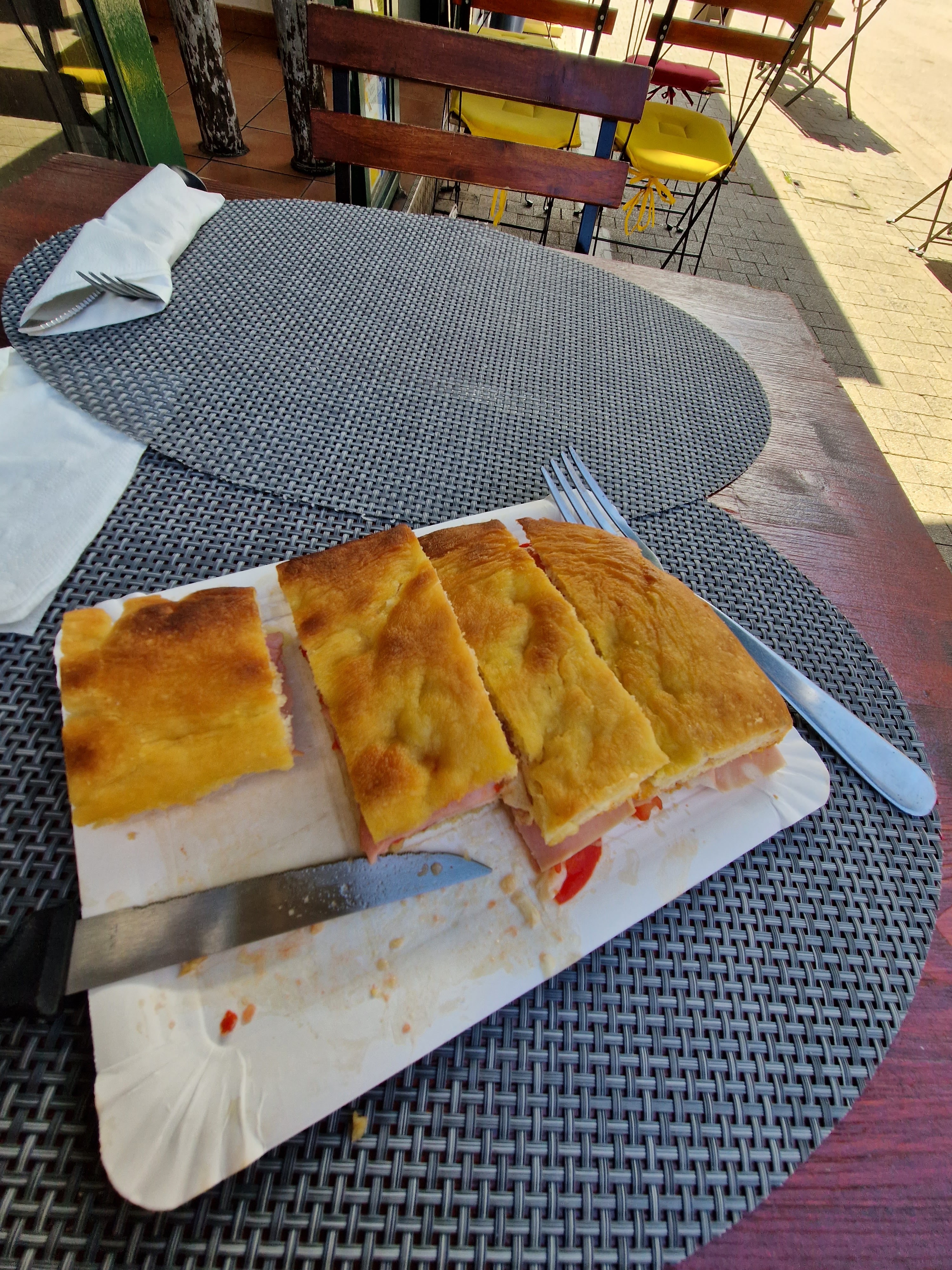 Alors je n'es rien a dire sur l'accueil qui est agréable. Parcontre quand on regarde sur le site les tarifs de la foccacias fourée on est loin de ce que j'ai payer... Jen ai pris une avec juste 3 ingrédients à savoir mortadelle mozza et tomate j'en ai eu pour 12€50... J'ai le sentiment de mettre fais avoir par rapport au tarif sur leur site et sur place... Une déception pour ma part... Pas de recommandation.
