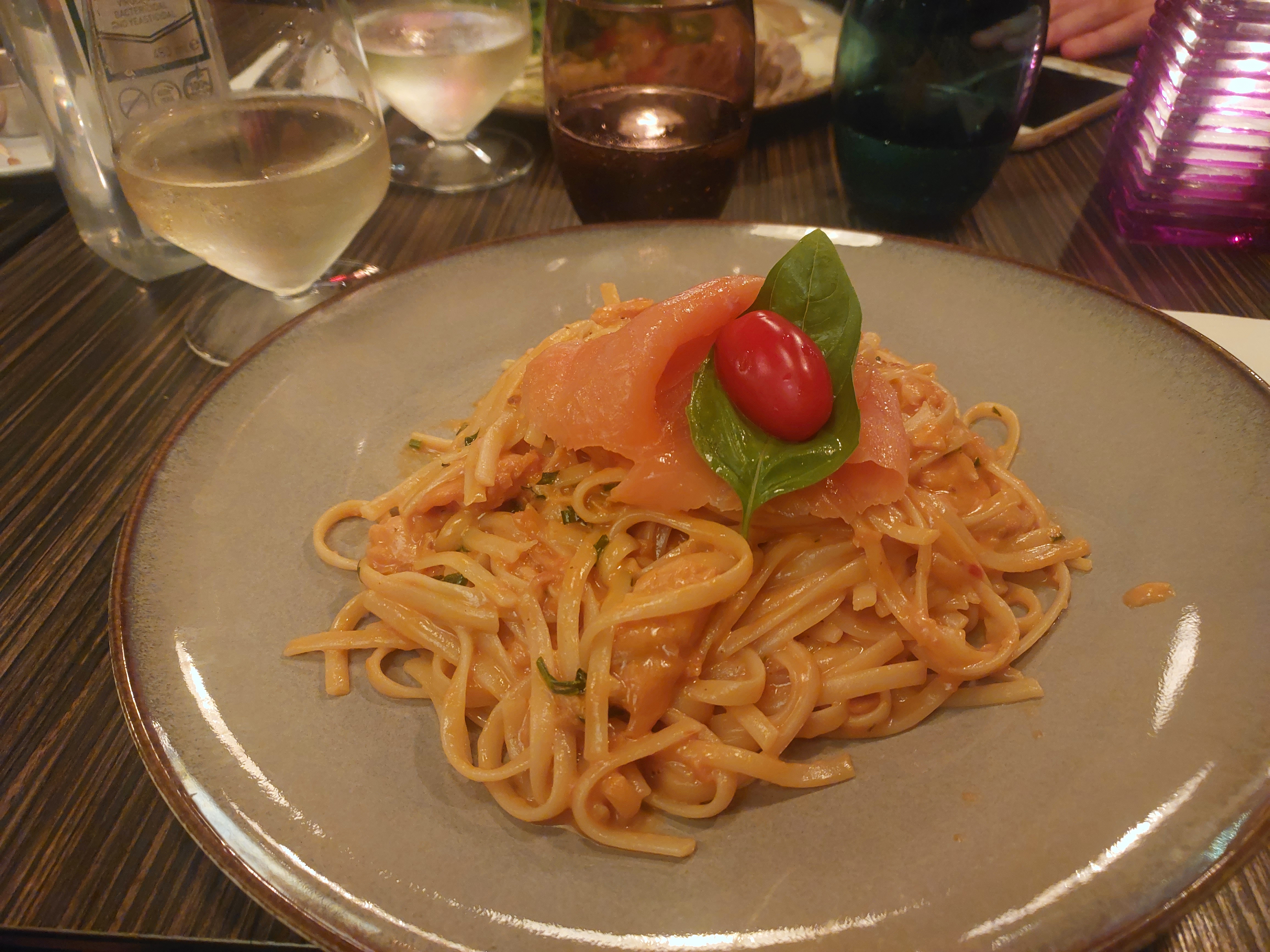 Linguine au saumon 16 euros Sauce en boite et pas de saumon juste une sauce industrielle. Pate à la Carbonara 16 euros Pas d’œuf des lardons ... Vraiment très déçu ...je ne reviendrais pas. No comment.