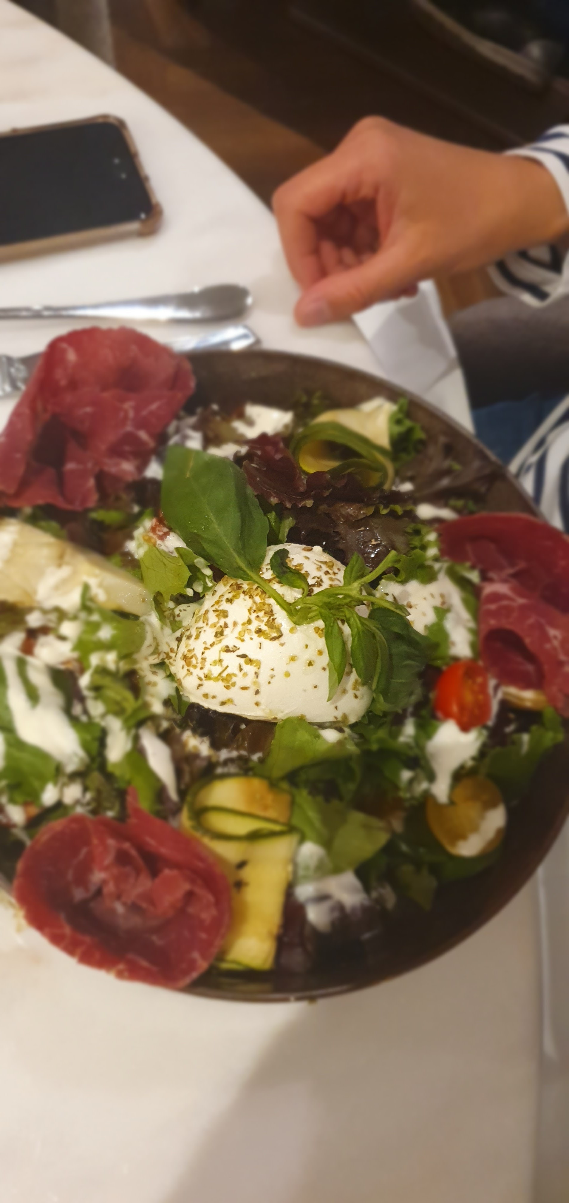 Petit resto entre amis samedi dernier avant un bowling 🎳. Sur le site, ça à l'air très classe. On s'est même demandé s'il ne fallait pas un dress code lol. Par contre on a vite déjanté quand on a vu la taille et le monde dans le restaurant. Je me demande encore comment j'ai fait pour ne pas chopper le covid même si les tables étaient quand même assez espacées. Repas très copieux et délicieux, il n'y a rien à redire la dessus, par contre c'est au niveau service que cela pêche beaucoup. Les serveuses sont débordées tellement il y a de monde. De les entendre parler italien c'est très agréable sauf que quand elles annoncent les plats on ne comprend rien et elles ne font rien pour se faire comprendre et quand elles prennent notre commande c'est limite si elles ne tapent pas du pied parce que l'on ne va pas asse vite... Et dernière chose de très gênant... le bruit. Malheureusement on ne s'entend pas parler et on se croirait dans une discothèque, donc la prochaine fois même si c'est excellent on ne reviendra pas. C'est dommage !!!