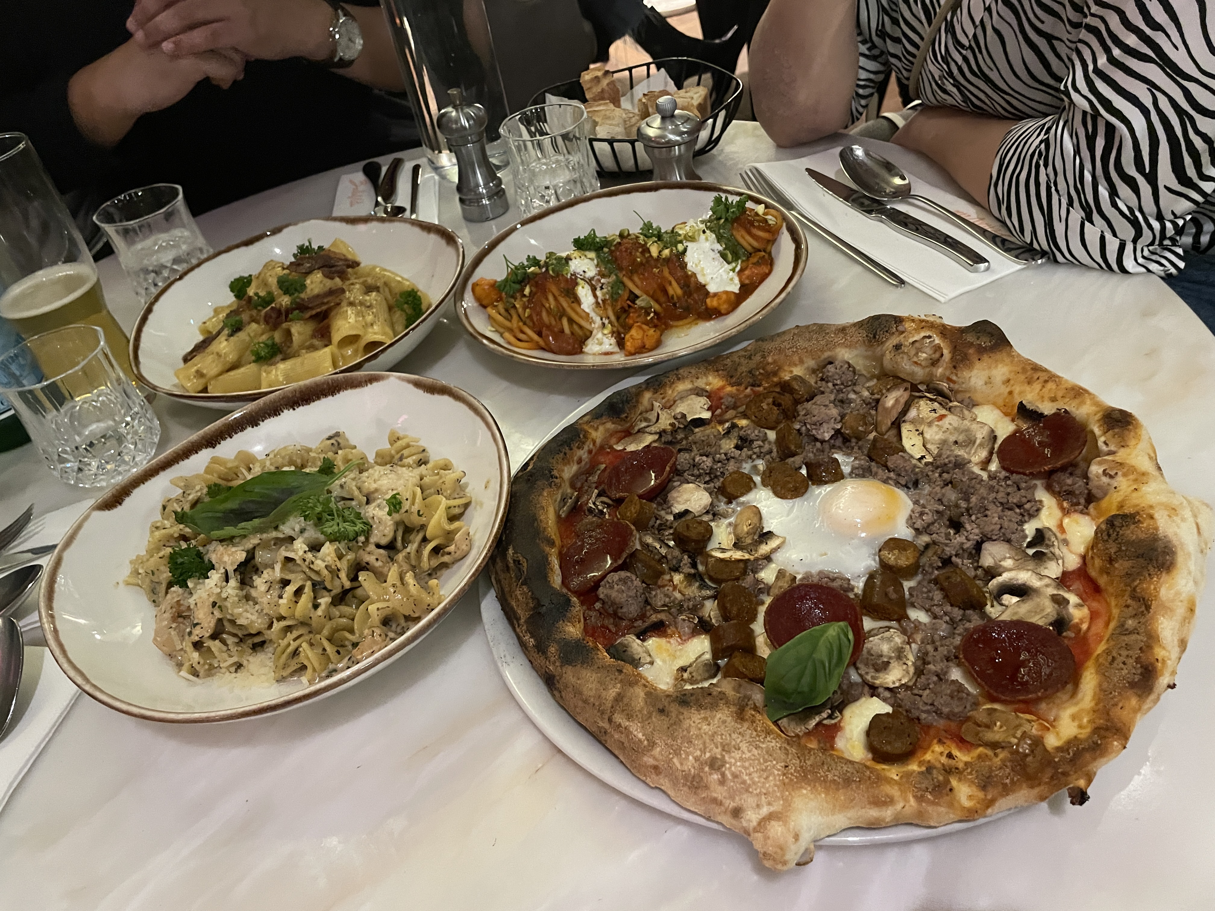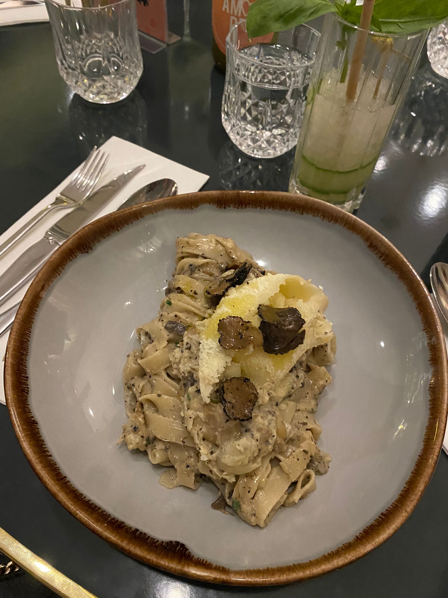 Il faut surtout penser à réserver plusieurs jours a l’avance car il y a beaucoup de monde et nous comprenons tout à fait pourquoi ! L’ambiance et la décoration est vraiment chouette. Les serveurs sont très sympathiques. Nous nous sommes régalés avec les tagliatelles flambées directement dans la meule devant nous ! Les cocktails sont incroyables. Les plats et les pizzas sont très copieuses. Bref nous avons passé un agréable moment et nous reviendrons le faire découvrir à notre entourage 👌🏻✨