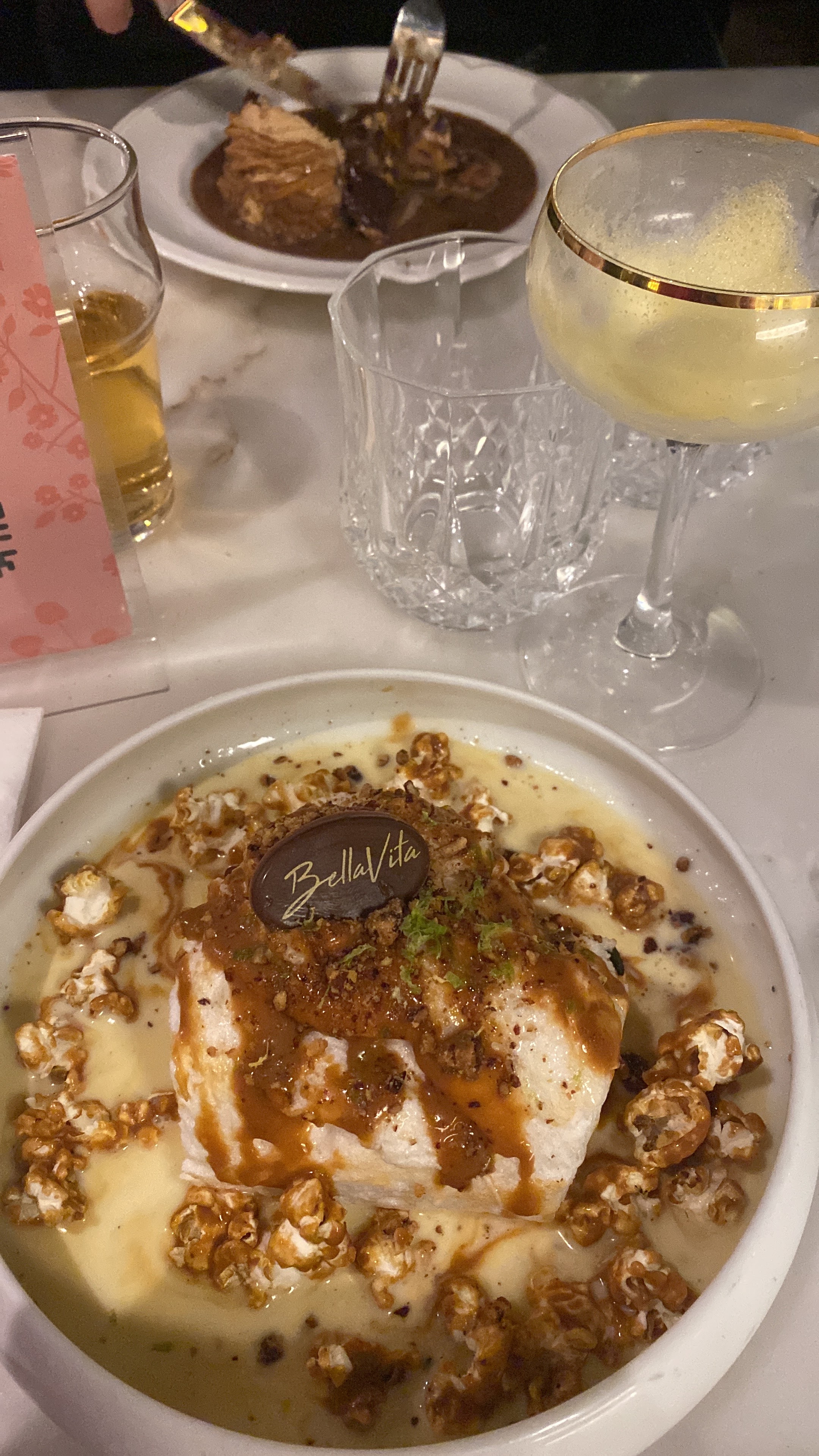 Excellent moment passé au BellaVita ! Le personnel, serveur comme serveuses, sont aux petit soins, à peine arrivé ont est accueillie. Mention spéciale à notre serveur en costard gris (avec mes amies ont a oublié de demander le nom 😅) et a Alberto pour l'accueil qu'on a eu de leurs part avec beaucoup d'Amore 🎉 Très bonne idée d'avoir fait du plat de tagliatelle à la truffe un show, faire fondre le Grana Padano avec l'alcool, ramené les pâtes tout juste cuite et les mélanger au fromage et mettre très bien présenté dans une assiette, perfecto et pour conclure elle sont à tomber par terre tellement elles sont bonnes 😍!! La Burrata des Pouilles est délicieuse ! Bien crémeuse et avec les tomates cerise + la crème un régale. Les raviolis d'aubergines très bonnes aussi et la présentation au top. Les cocktails qui sont proposés beau et bon ! Et pour finir en dessert, le BellaVita show, une tuerie l'ambiance rien a dire comme si c'était mon anniversaire ! Je suis venue sur la recommandation d'une amie et je n'es pas été déçu ! Je recommande vraiment, parcontre il vaut mieux réserver car c'est un restaurant très fréquenté. Grazie Mille Bella Vita, et à bientôt !!