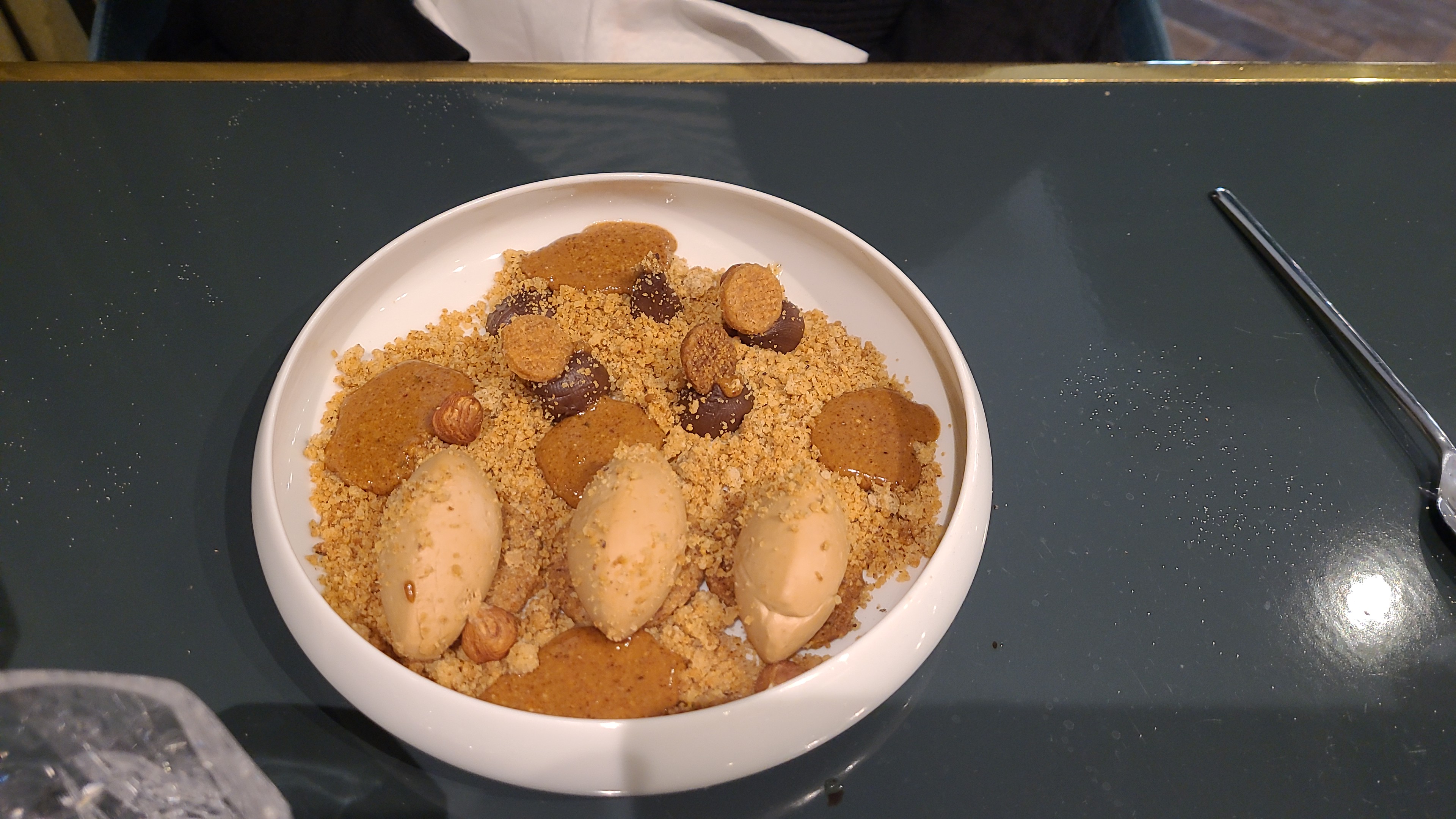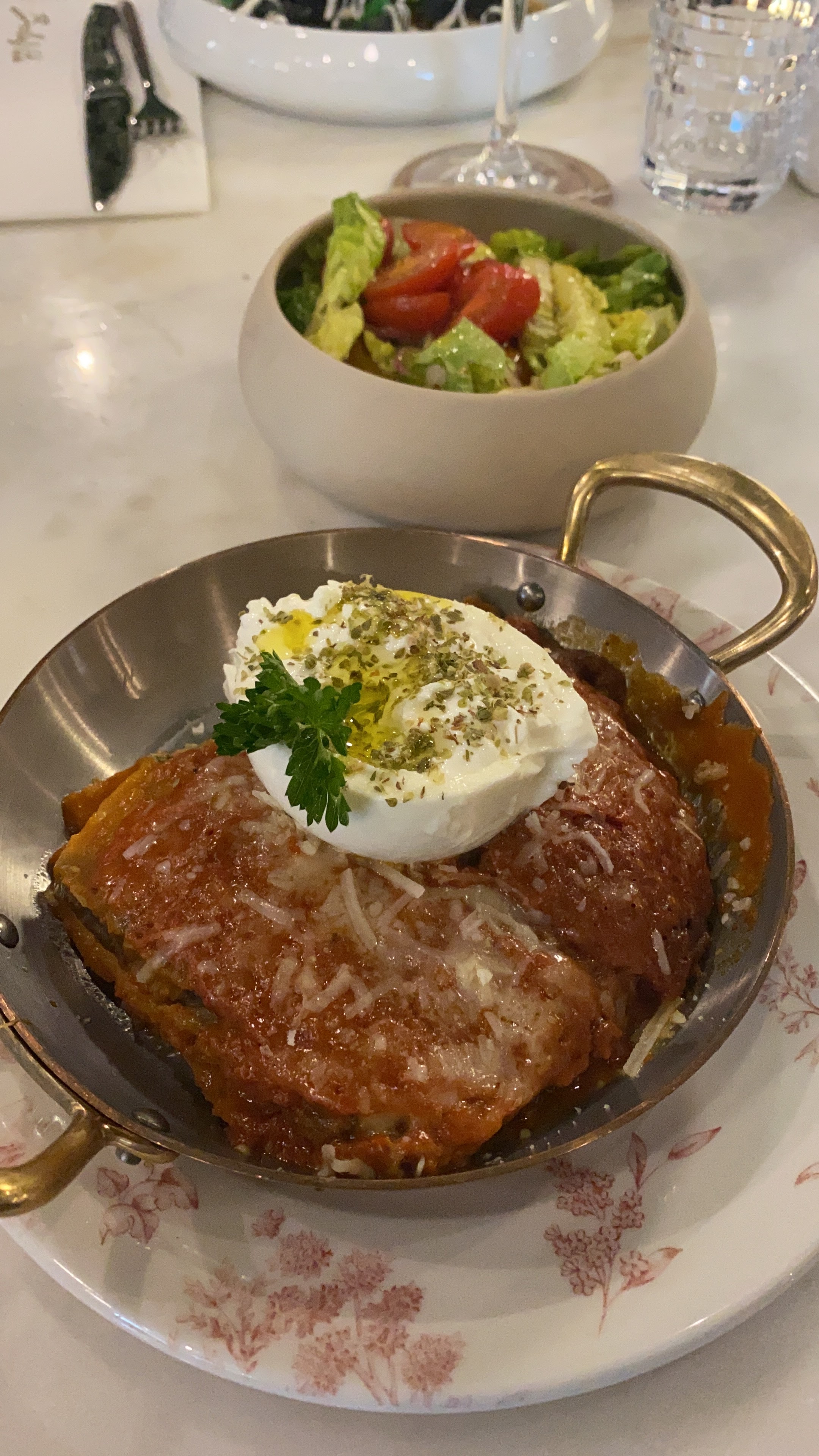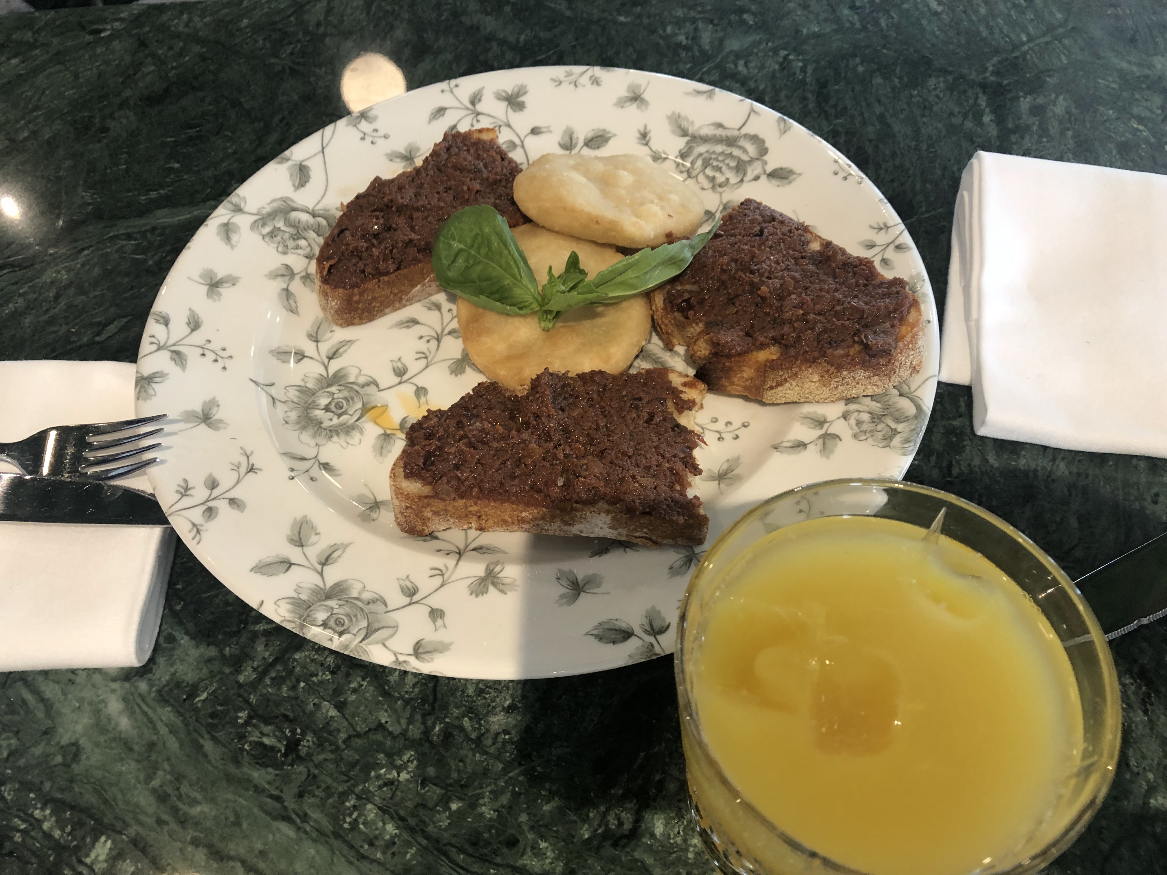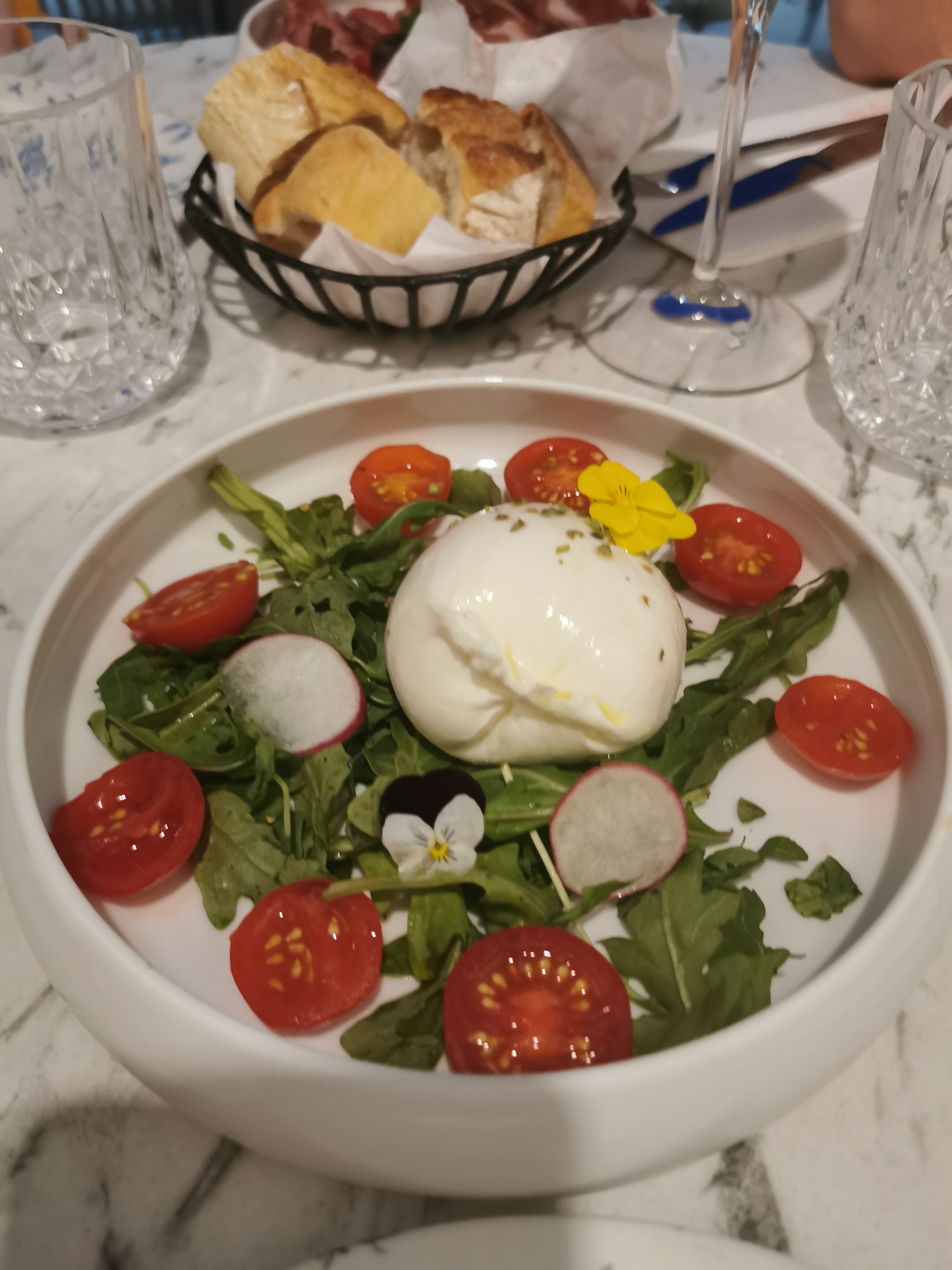 J'y suis allé pour la première fois avec des copines, un samedi midi. Il y a avais du monde sans bruit, le restaurant est calme, chic. Il est très très beau à l'intérieur. J'aime le côté italien du début à la fin, la carte est italienne-francaise, les serveurs parlent francais avec un fort accent italien, on se sent vraiment voyagé. La cuisine est excellente, le rosé italien est aussi très bon.
