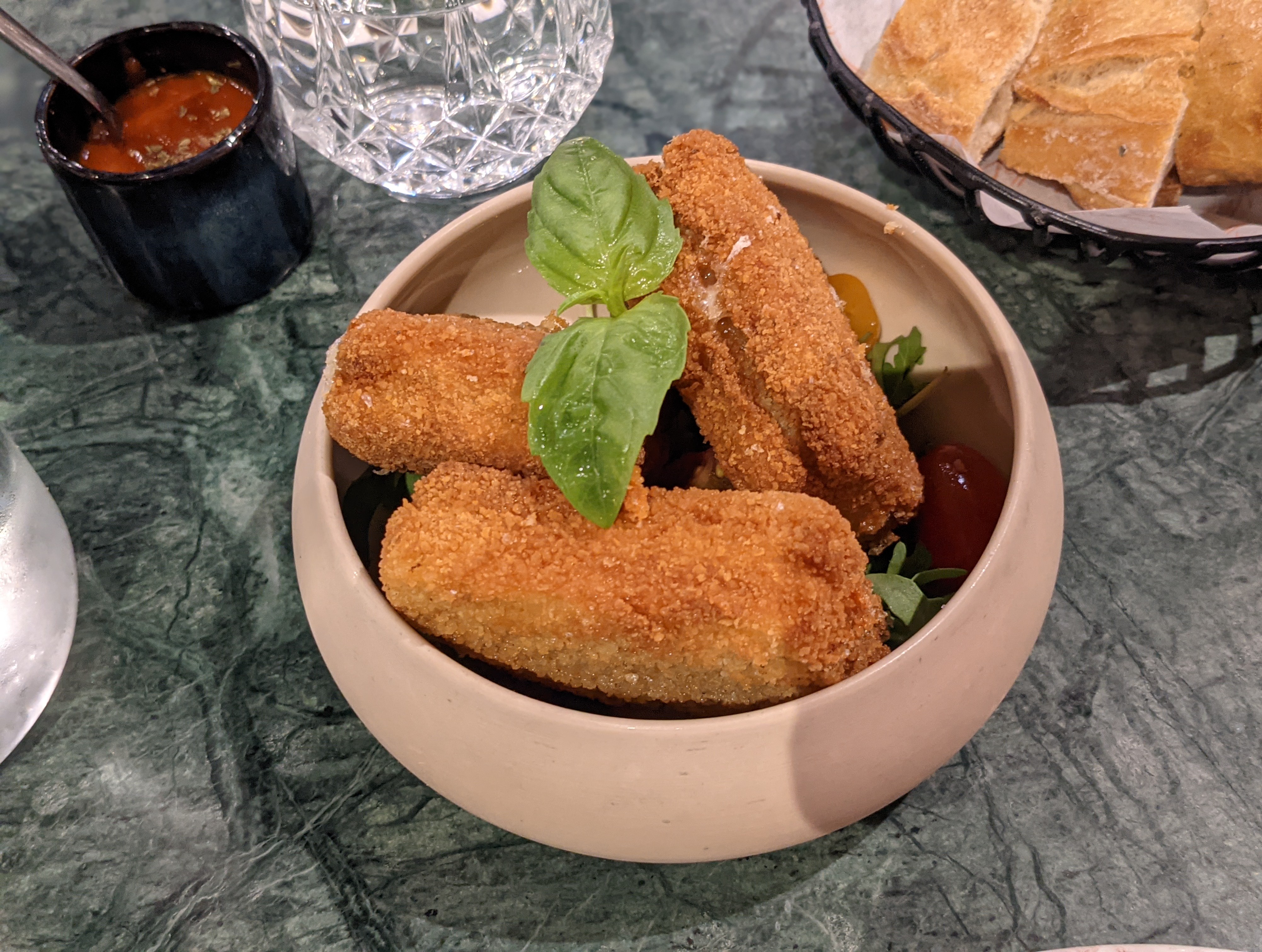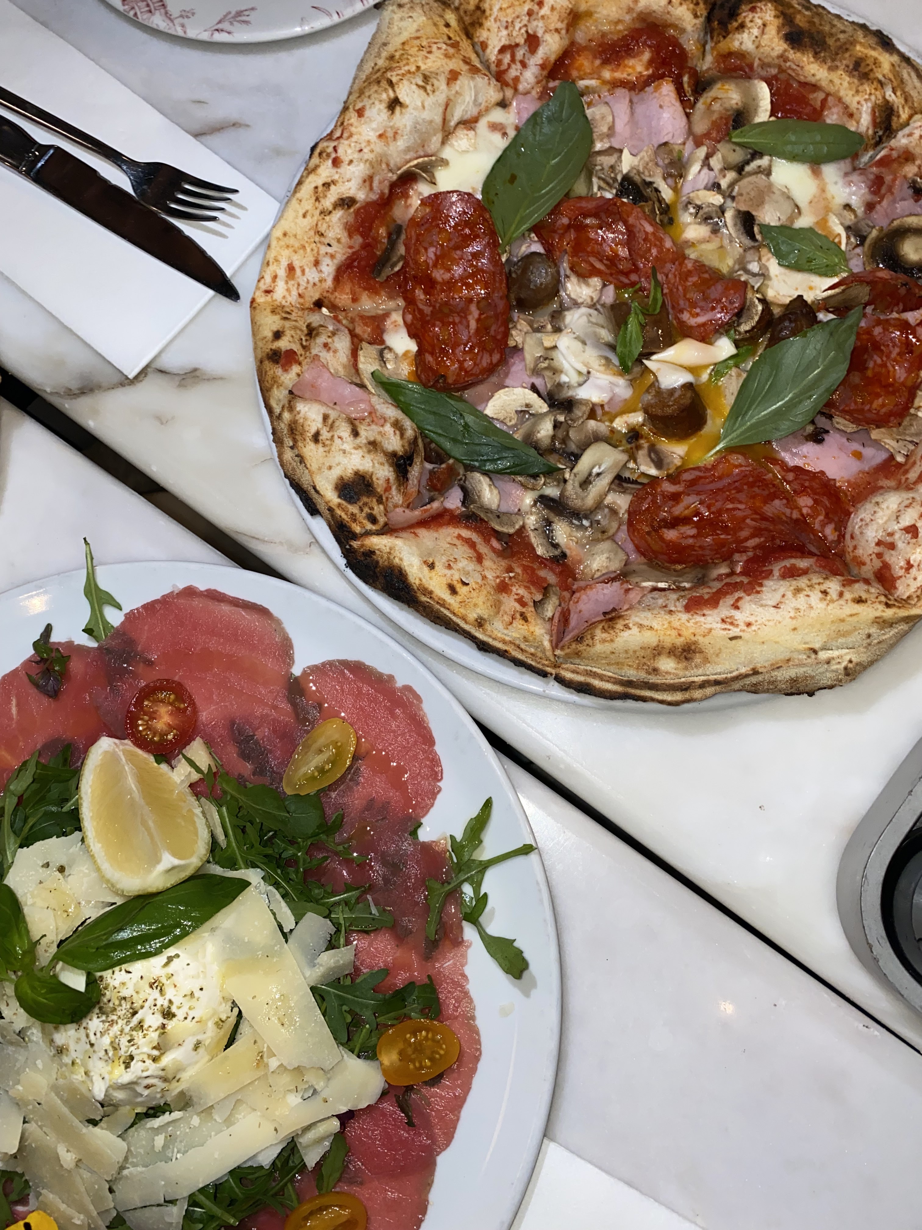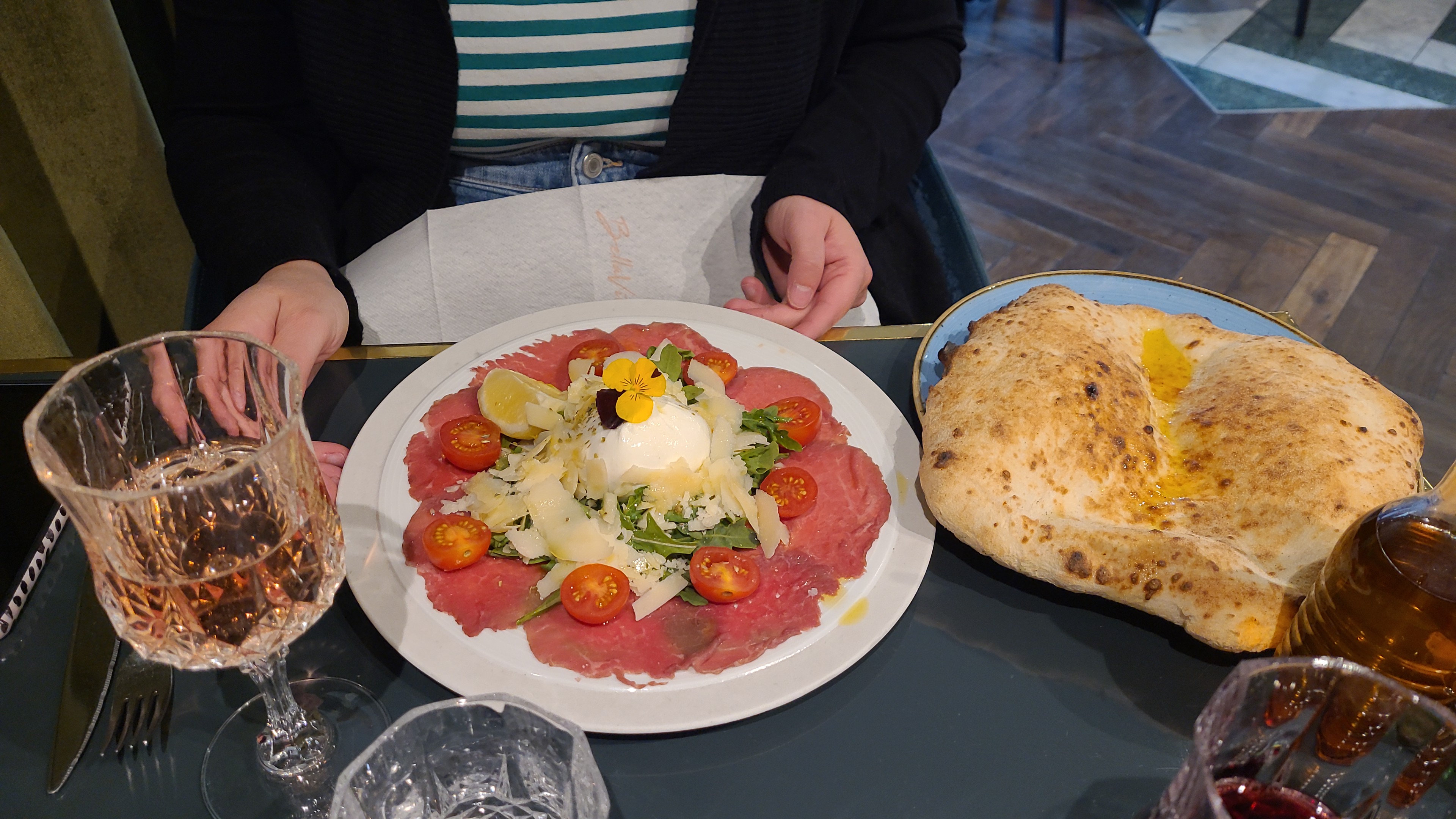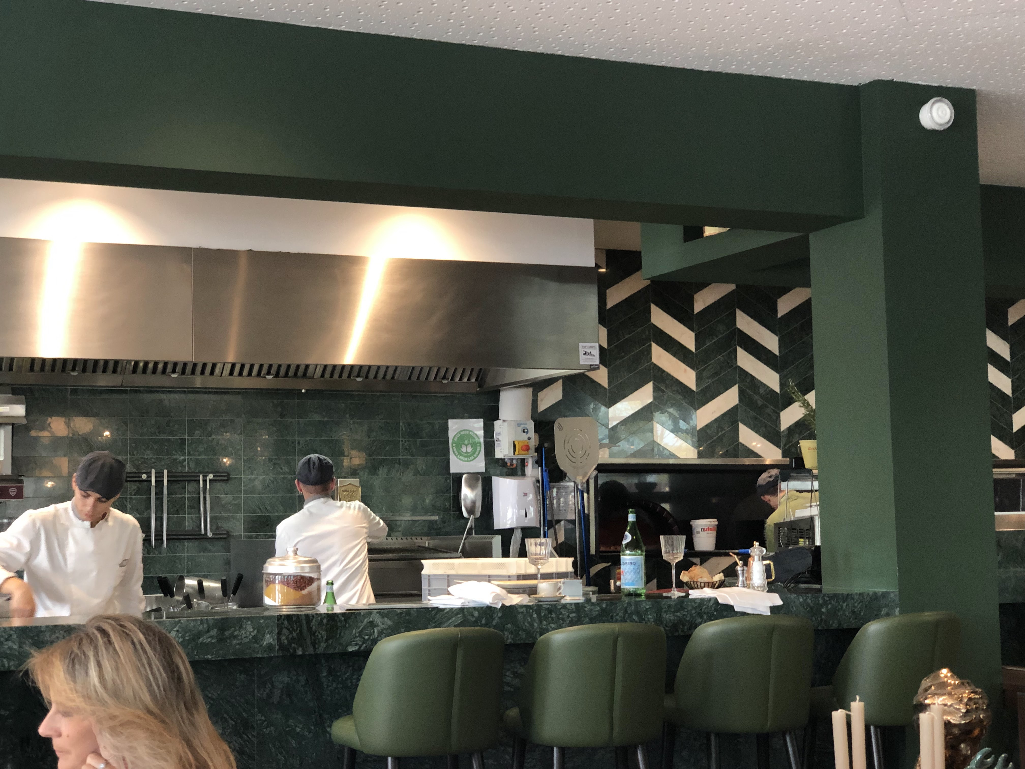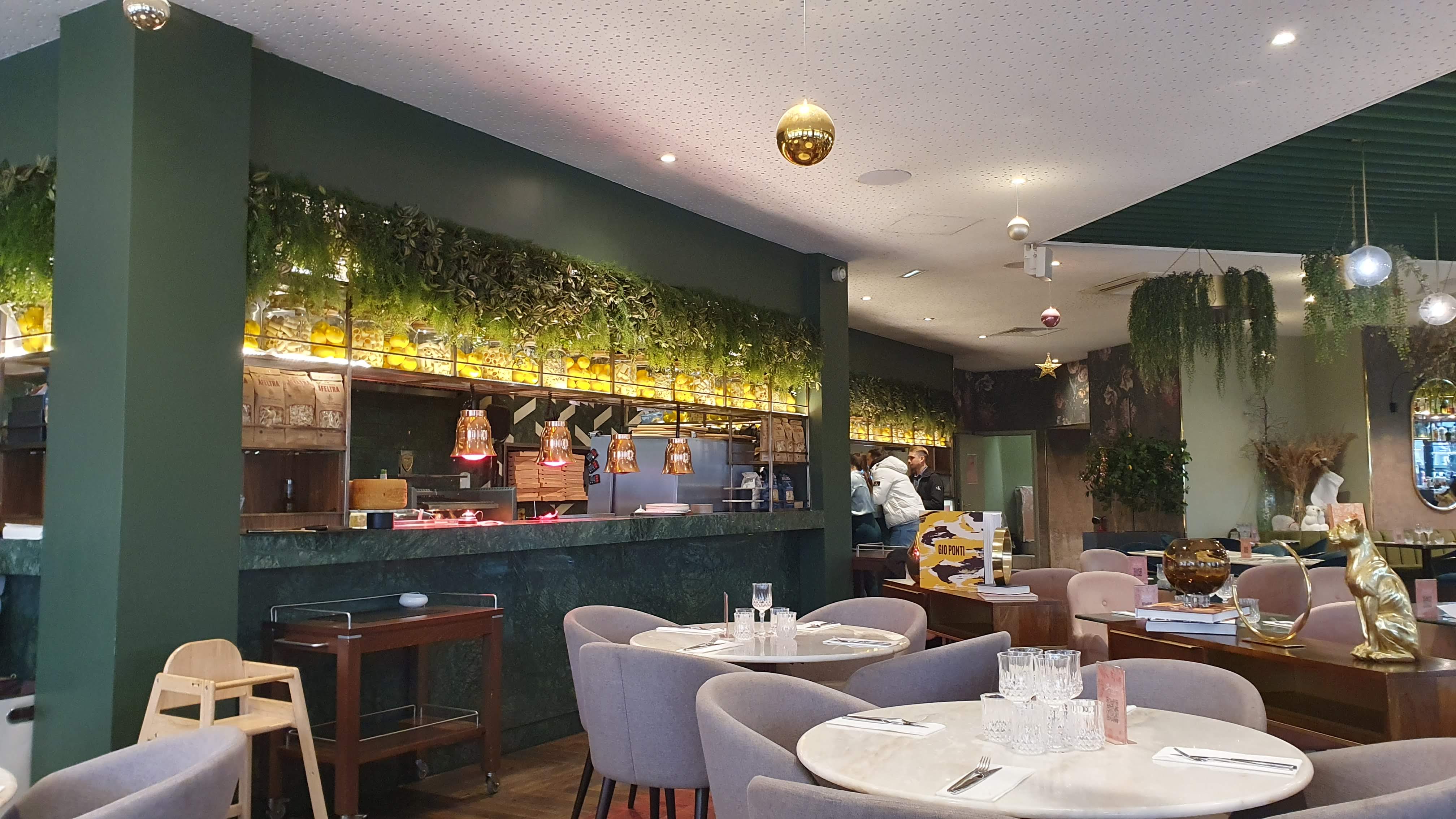 Mesures sanitaires respectées: personnel masqué, distanciation et gel hydro sur toutes les tables. Restau au style art déco et une cuisine italienne à tomber par terre. Vivement recommandé pour soirée entre amis ou en couple.