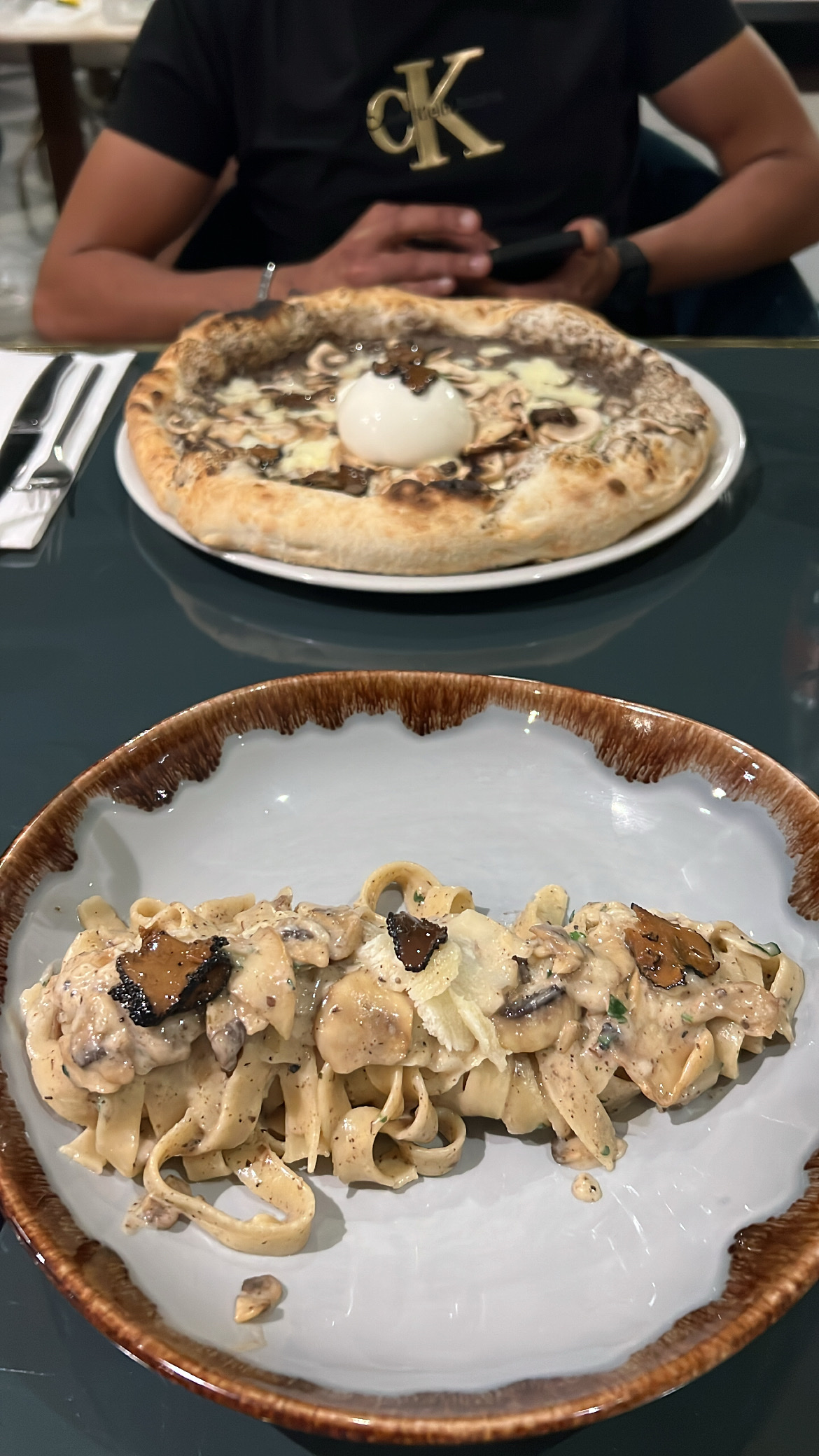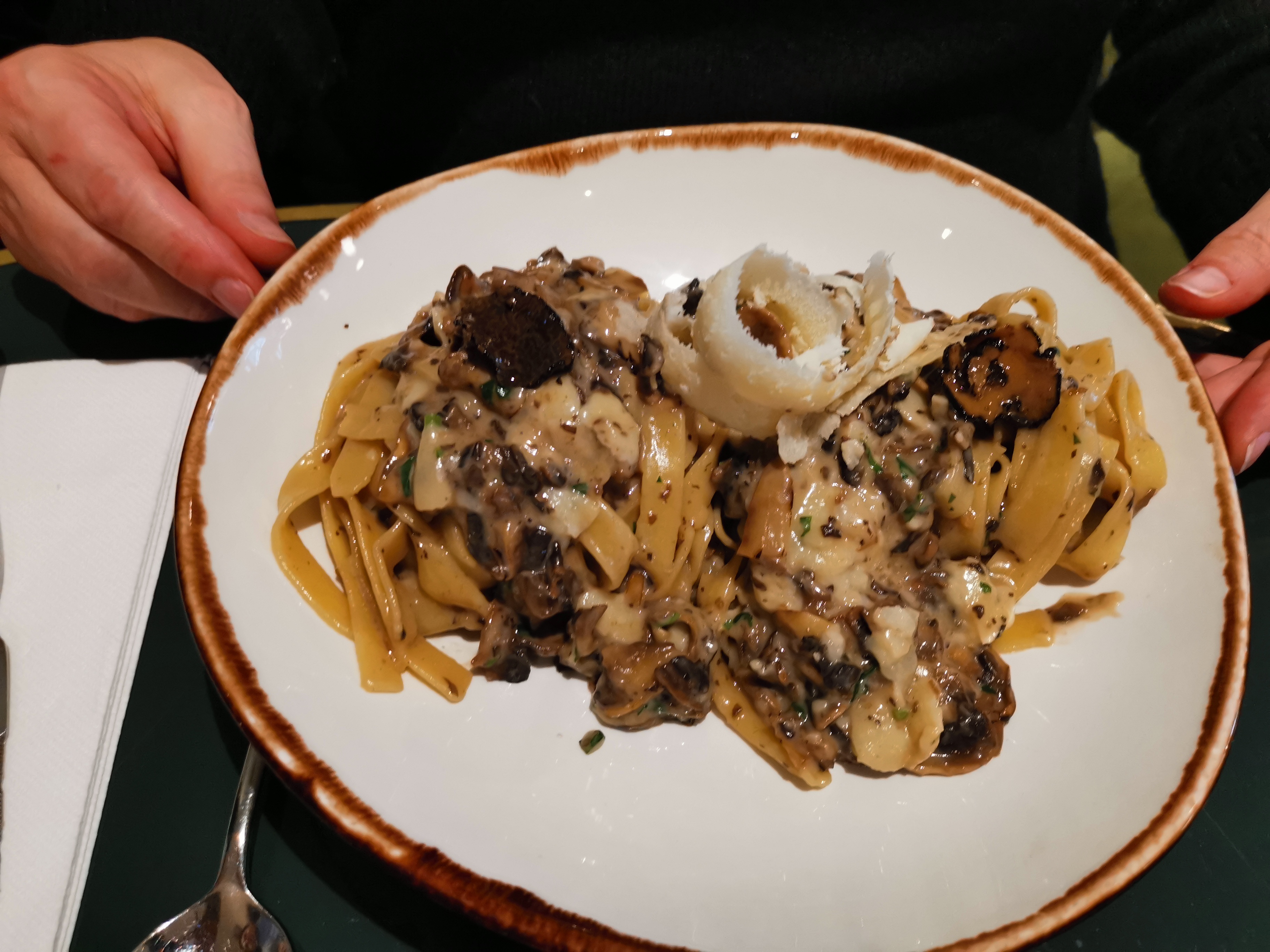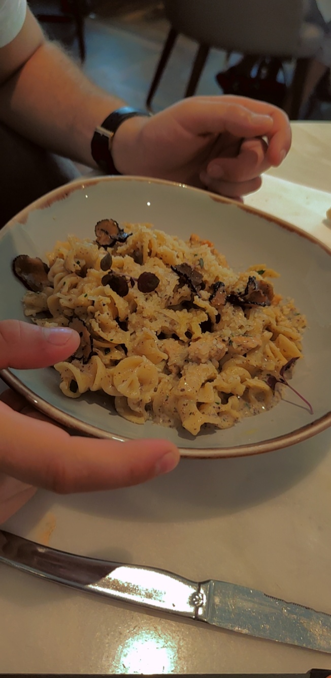 Excellent ! Personnels sympathiques qui te font voyager en Italie. Pâtes flambées à la truffe excellentes!!
