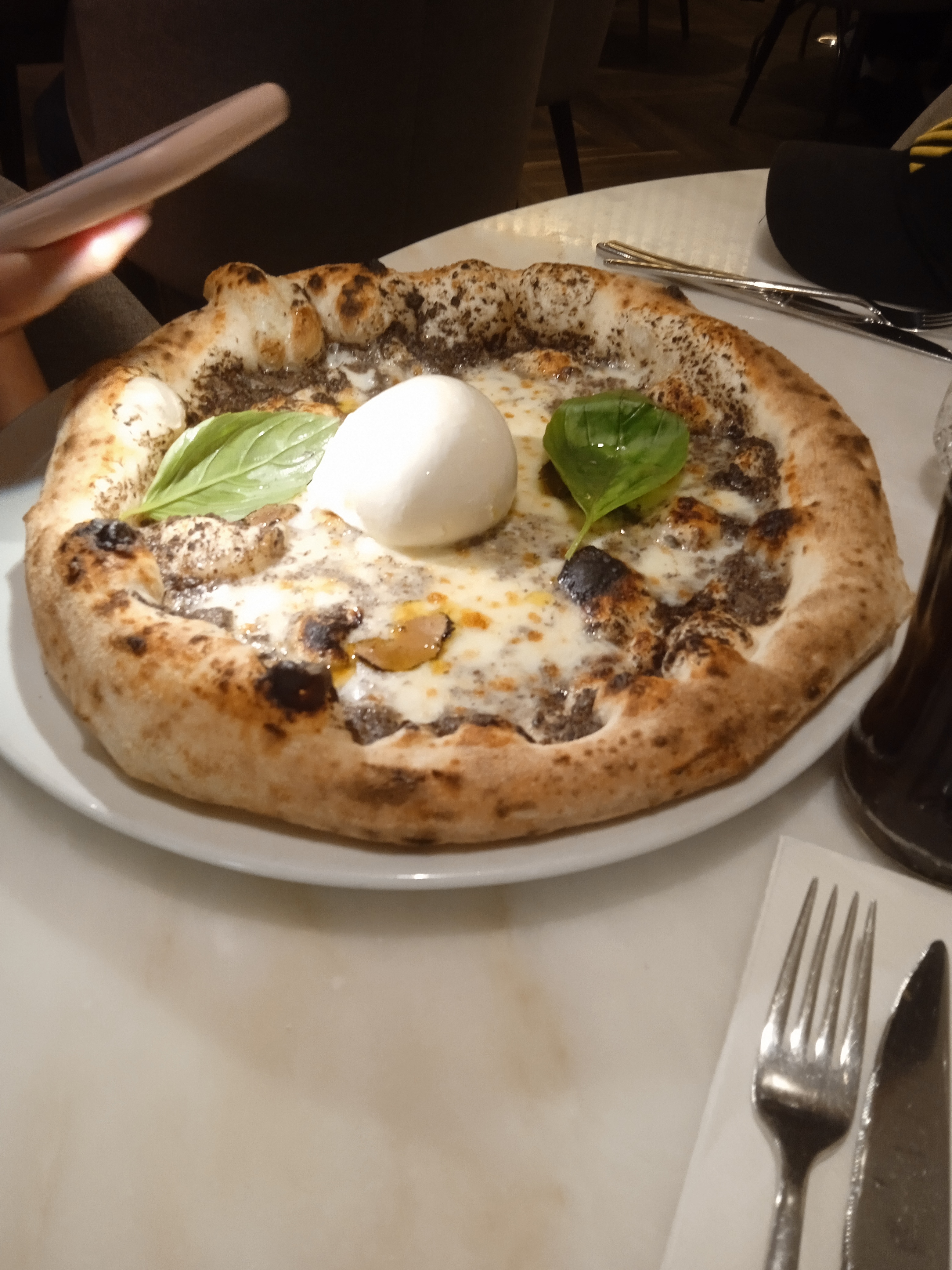 Pizza truffe et burrata originale. Mille feuilles léger et croustillant. Ambiance jeune et musicale. Je reviendrai. Attention toutefois au prix des vins