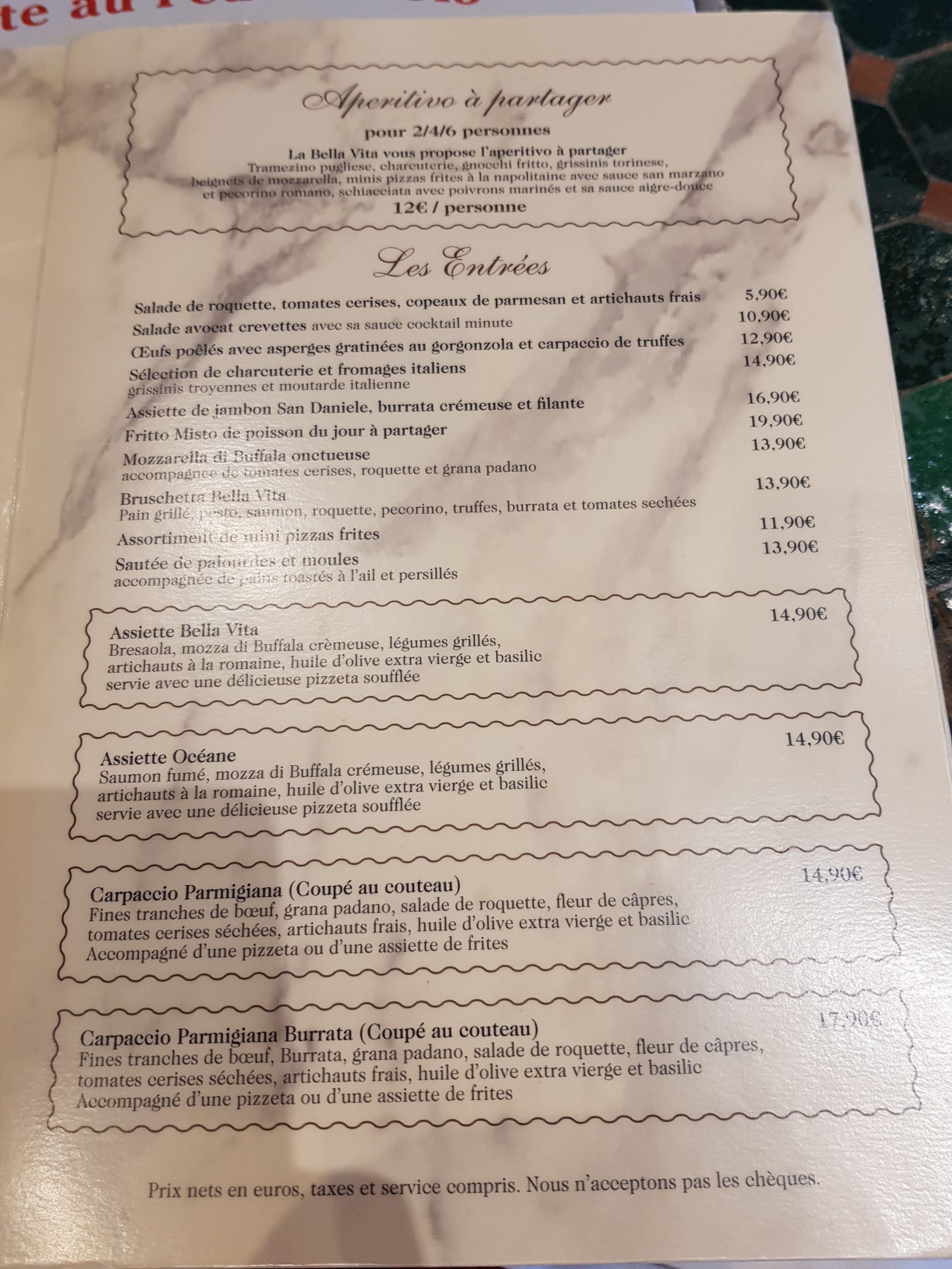Bonjour, on m’avait parlé de ce restaurant et j’ai décidé d’y manger. Je ne sais pour le reste de la carte mais les spaghettis sont à éviter. Mal cuites dures avec une sauces bon marché je regrette d’avoir pris ce dernier. Je n’ai même pas insisté et personne par mis le service n’a remarqué que je n’avais pas fini mon assiette. Mal de ventre toute la nuit, je ne suis pas prêt d’y retourner. @bella vita : ce plat vois déshonore et n’est même pas à la hauteur des spaghettis que je cuisinais lorsque j’étais étudiant.