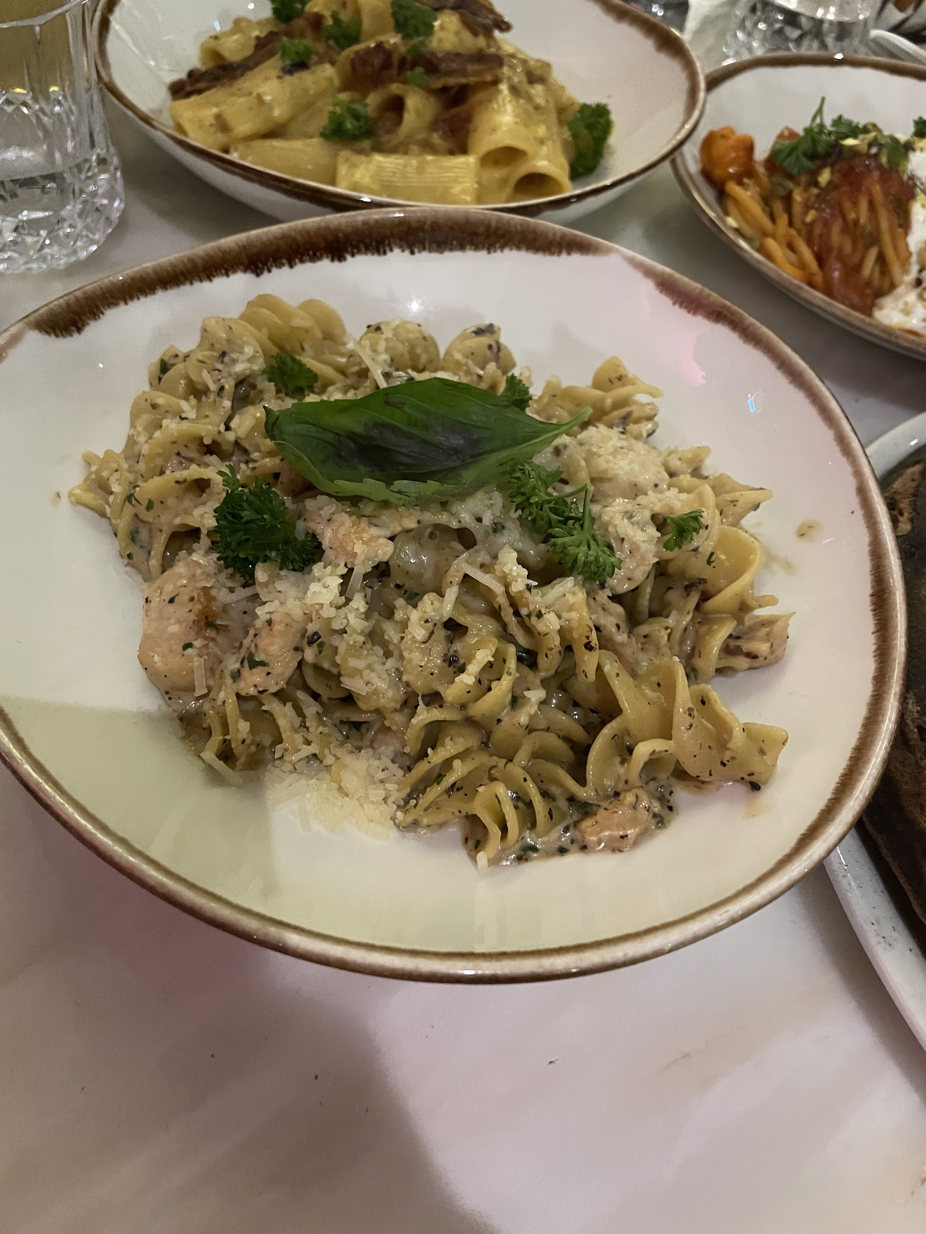 Restaurant italien sophistiqué, cosy, avec grande terrasse extérieure. Très peu d'attente, sans réservation. La carte est variée, les Plats sont bons, le poulet est halal. Animations en salle lors d'anniversaire ! Prix raisonnables. Je recommande.
