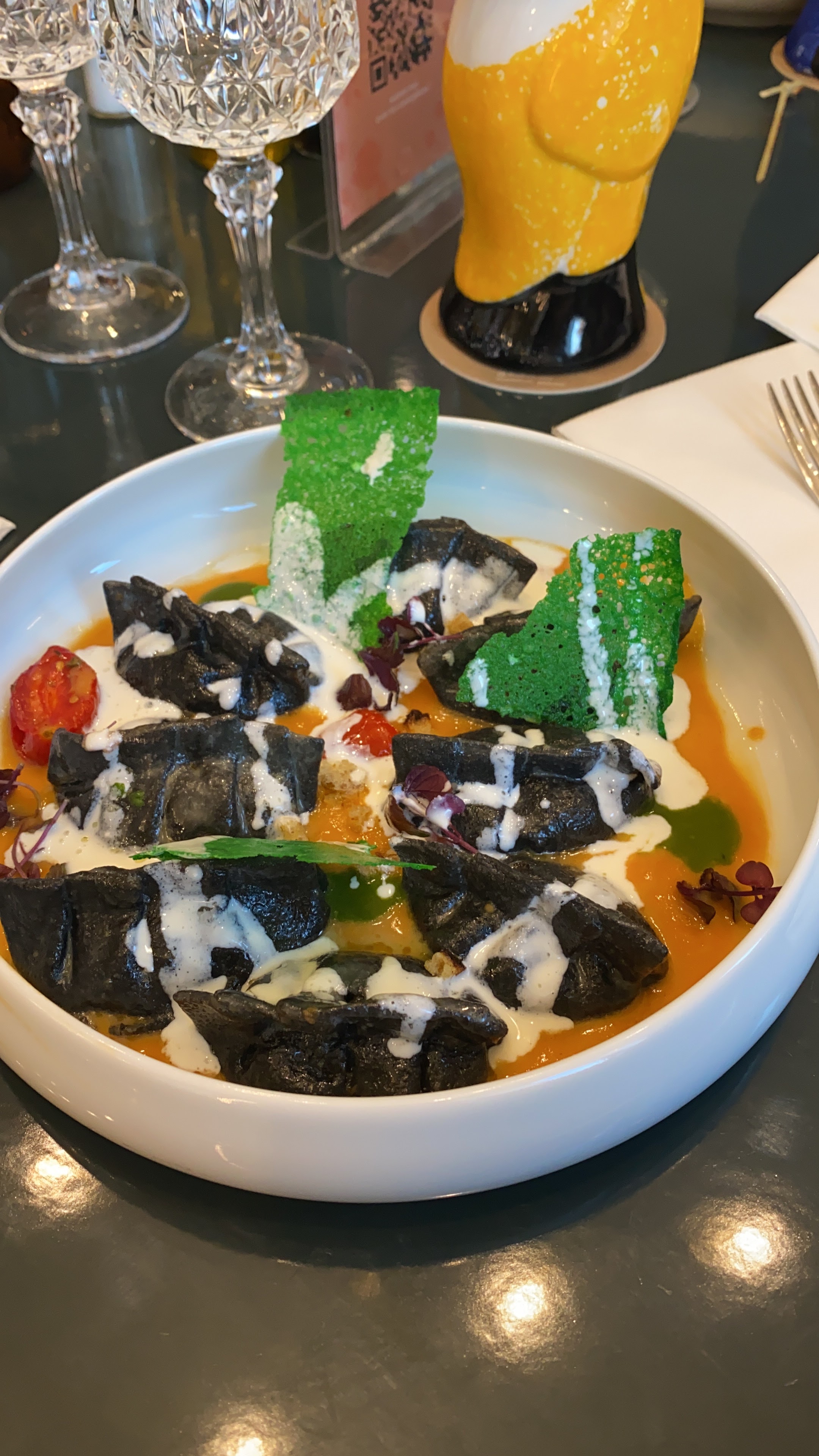 J’y ai dîner hier soir, en famille, je demande si les cocktails sont fais maison, la serveuse me répond oui. Je tente du coup. Comment vous dire, prenez une seringues d’insuline avec vous. Les cocktails sont fait à base de jus de fruit lidl. A 10€ rien que ça. Rien n’est fait maison si ce n’est verser du jus dans un micro verre. J’ai pris un tatakki de thon en croûte de pistache. Pas l’ombre d’une pistache. Peut etre etaient elle imaginaire, Si j'avais mangé mon éponge de cuisine je n’aurai pas pu faire de distinction. Mon mari a commandé des pasta poulet truffe, j’ai pensé qu'ils c’était trompé de plats. Delà truffe toujours imaginaire. On m’à dit que le poulet et le bœuf est halal. J’ai un fort doute dorénavant. Pas de tracabilite. Je ne recommande pas ce restaurant. Seul le cadre est sympas. Une note à 85€ qui ́’était pas imaginaire.