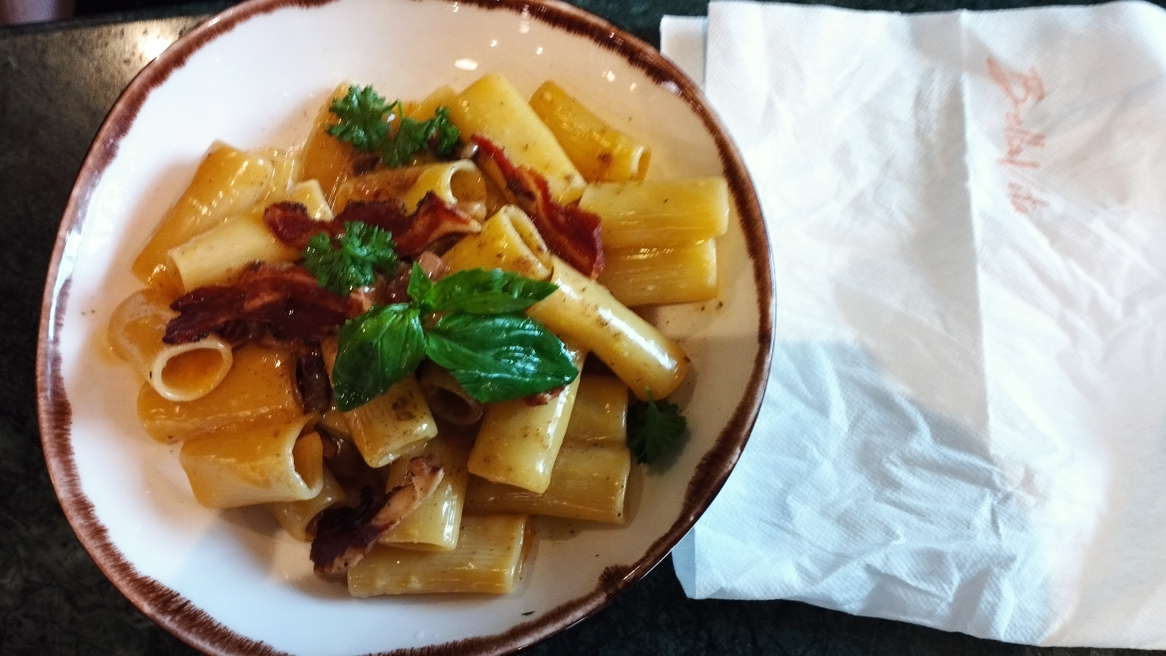 Top, vraiment un chouette endroit où on se sent bien, cadre chic, personnel sympathique et avec l'accent qui nous renvoie en vacances, portion généreuses, quelque soit le plat (ils ne cherchent pas à économiser sur 3 bouts de parmesan) Très bon rapport qualité prix. Il y a juste le cadre extérieur qui ne correspond pas, mais c'est vite oublié une fois à l'intérieur Allez y les yeux fermés